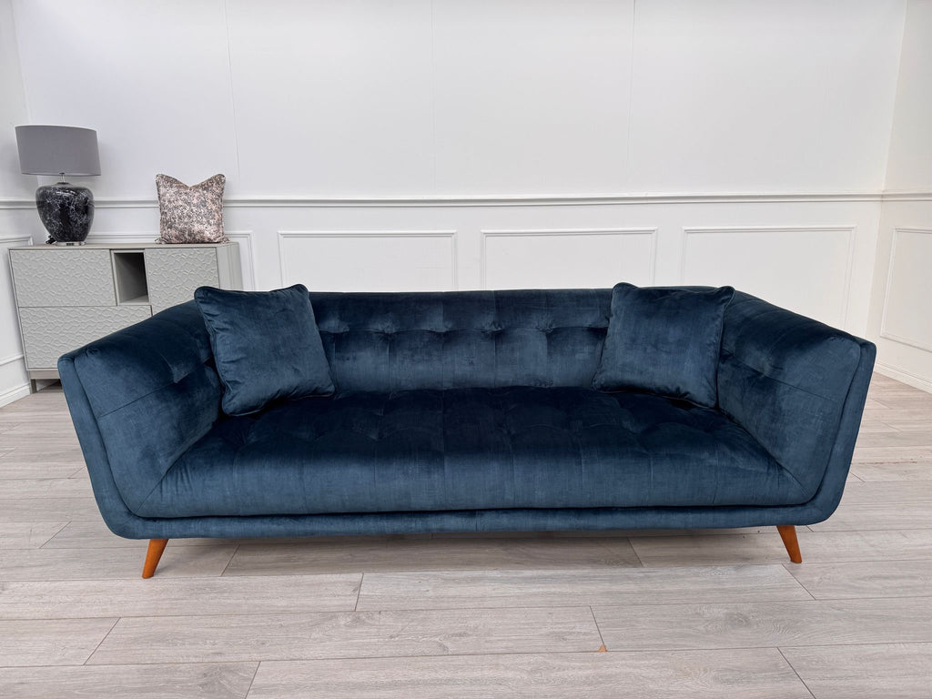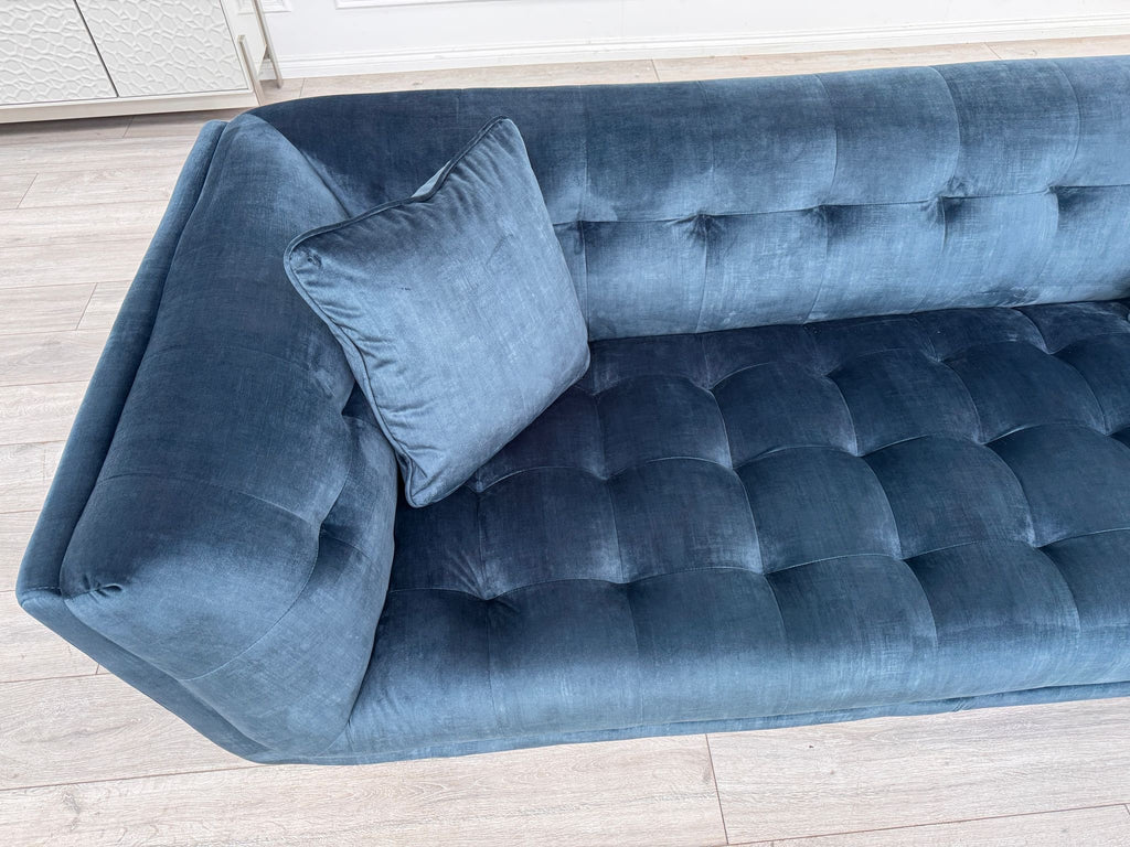 FURNITURE VILLAGE Rene Airforce Blue Velvet Large 3 Seater Sofa