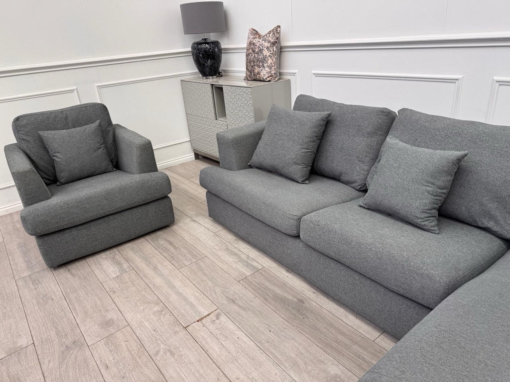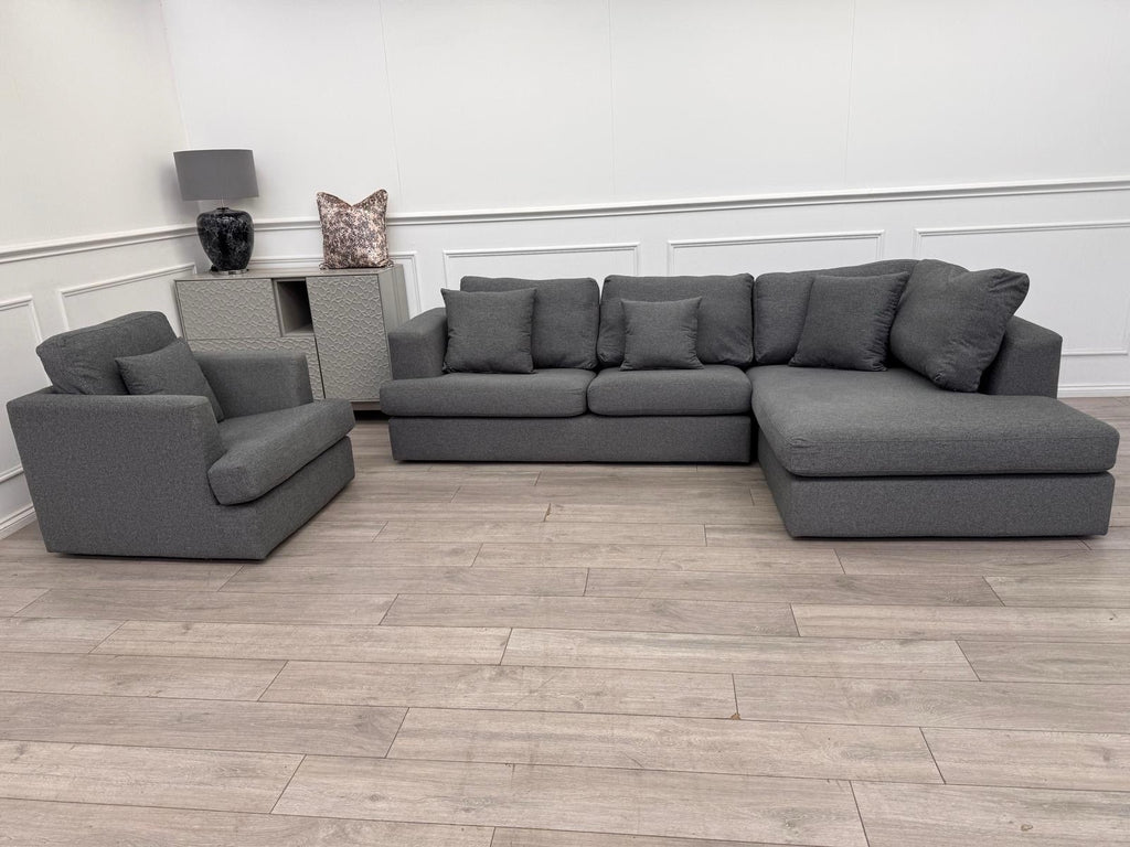 DFS Grey Fabric Corner Sofa And Armchair Sofa Set