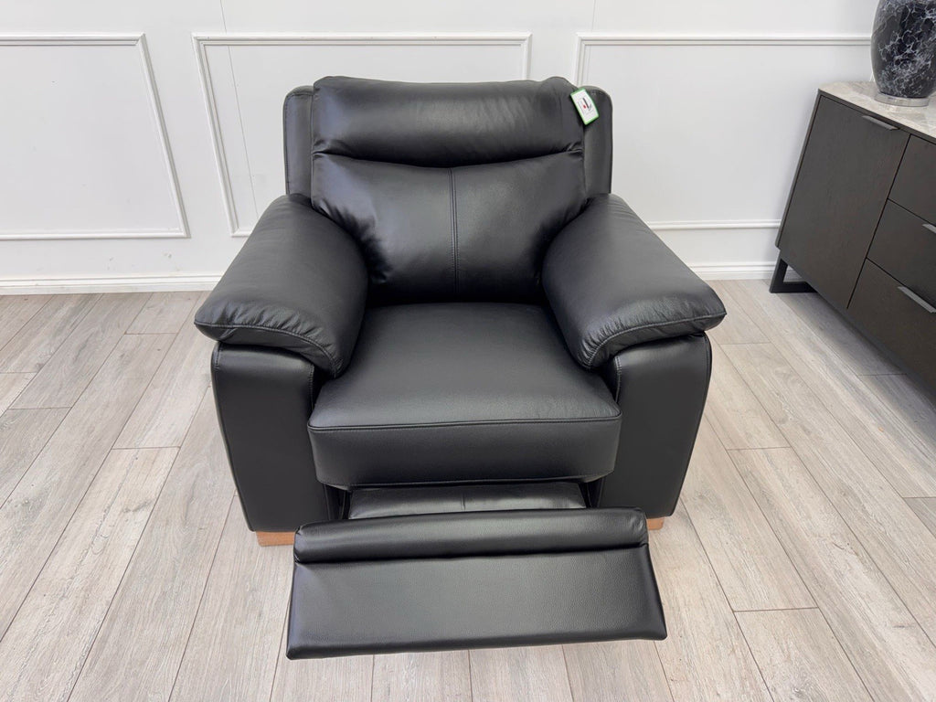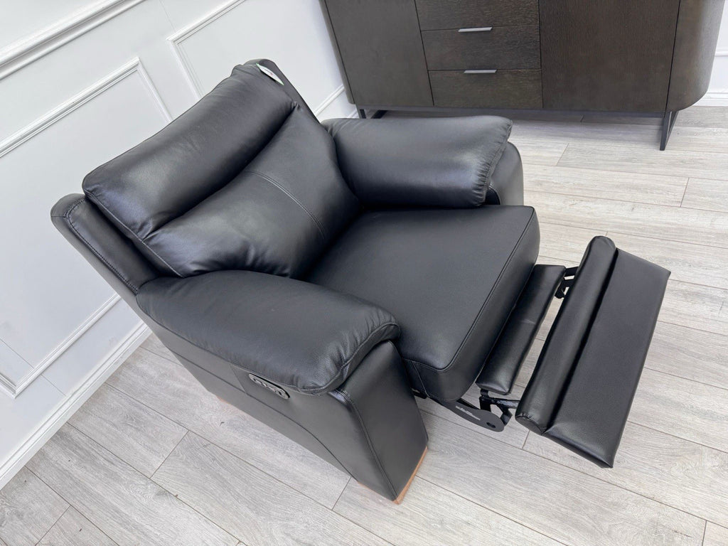 DFS Laiken Black Genuine Leather Armchair Electric Power Recliner