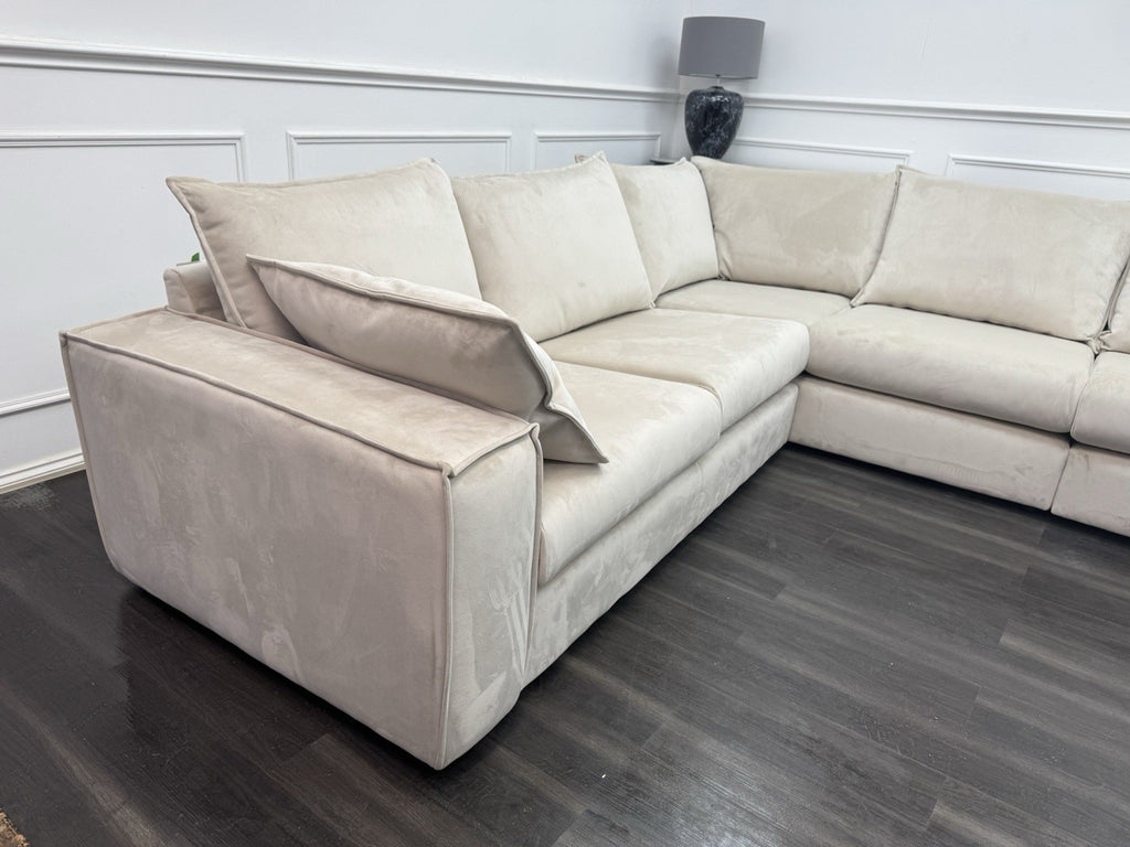 DFS Large Cream Velvet Corner Sofa Left Hand Facing (Fast Delivery)