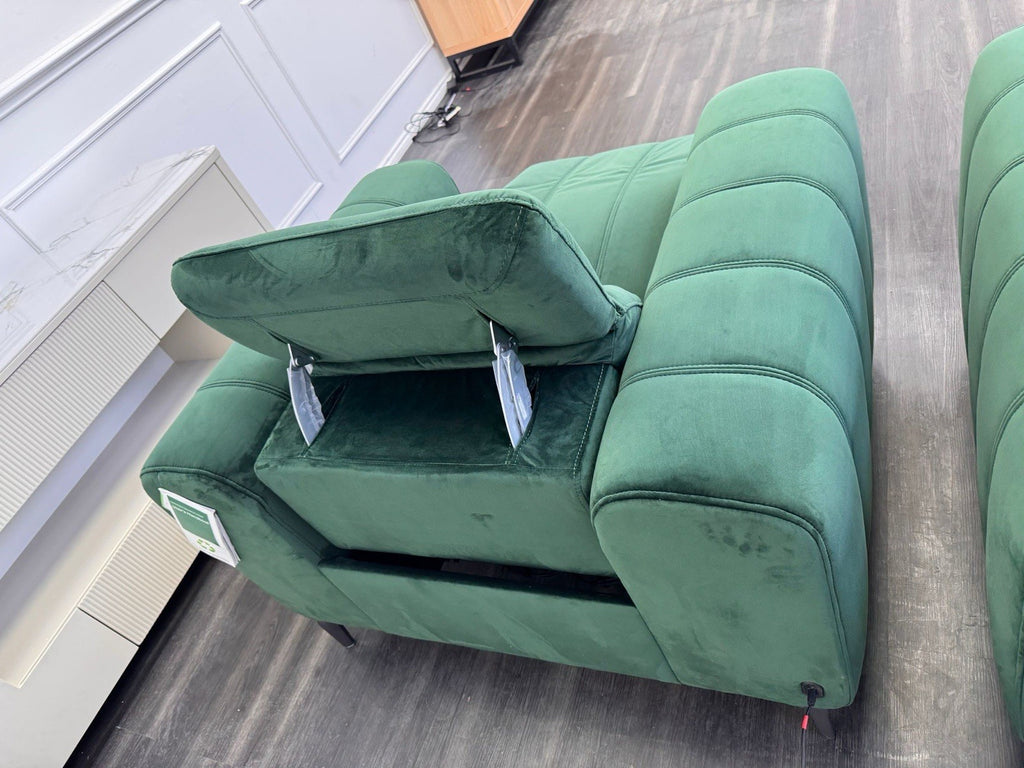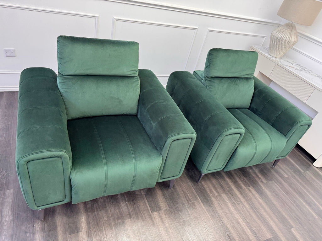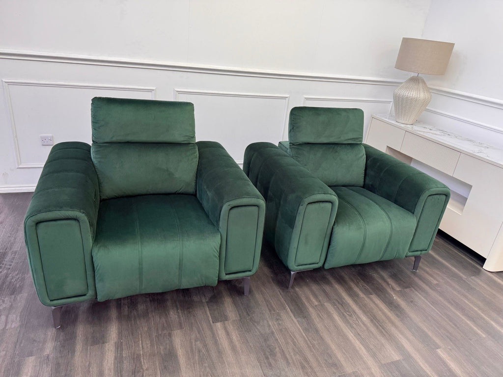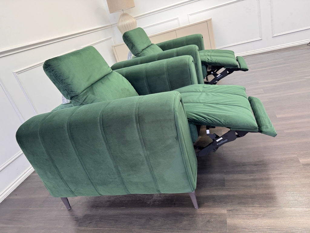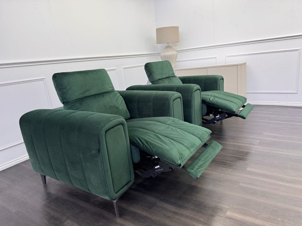 DFS Torren Power Recliner Pair Of Armchairs Green Velvet Power Headrest