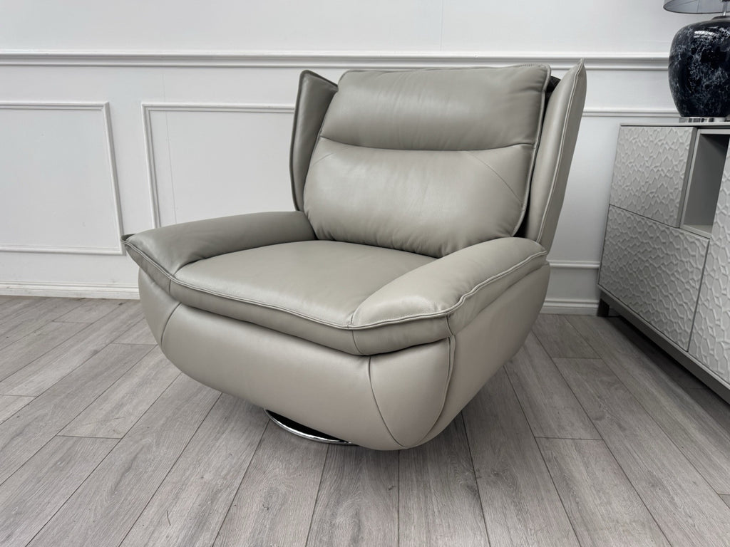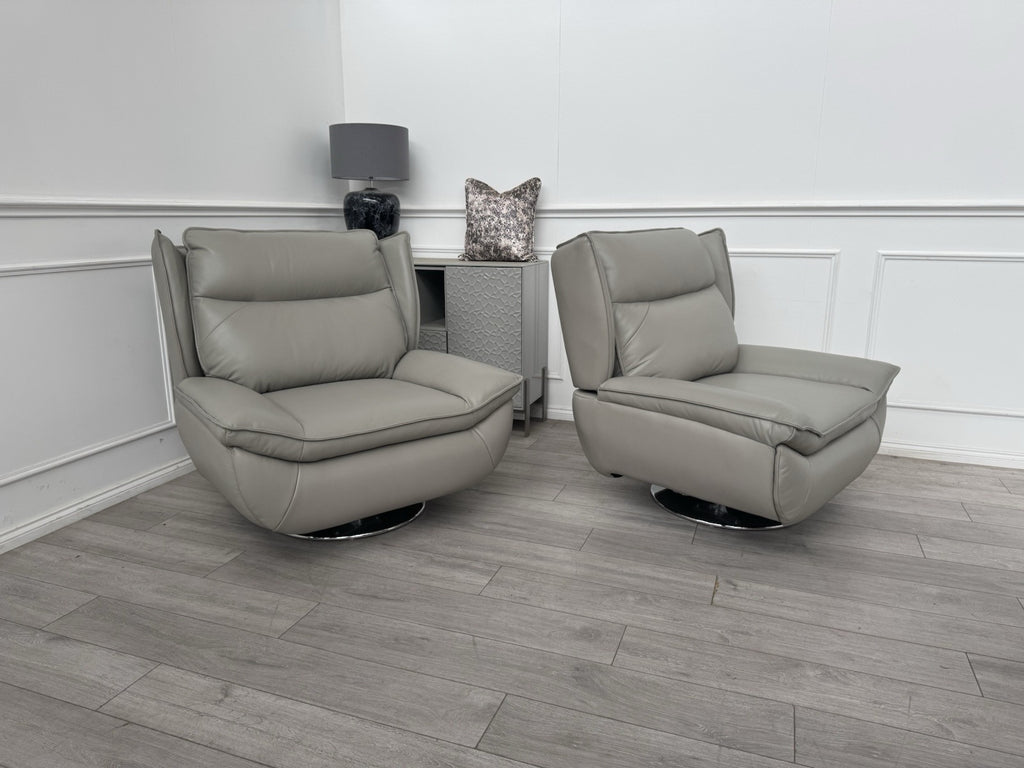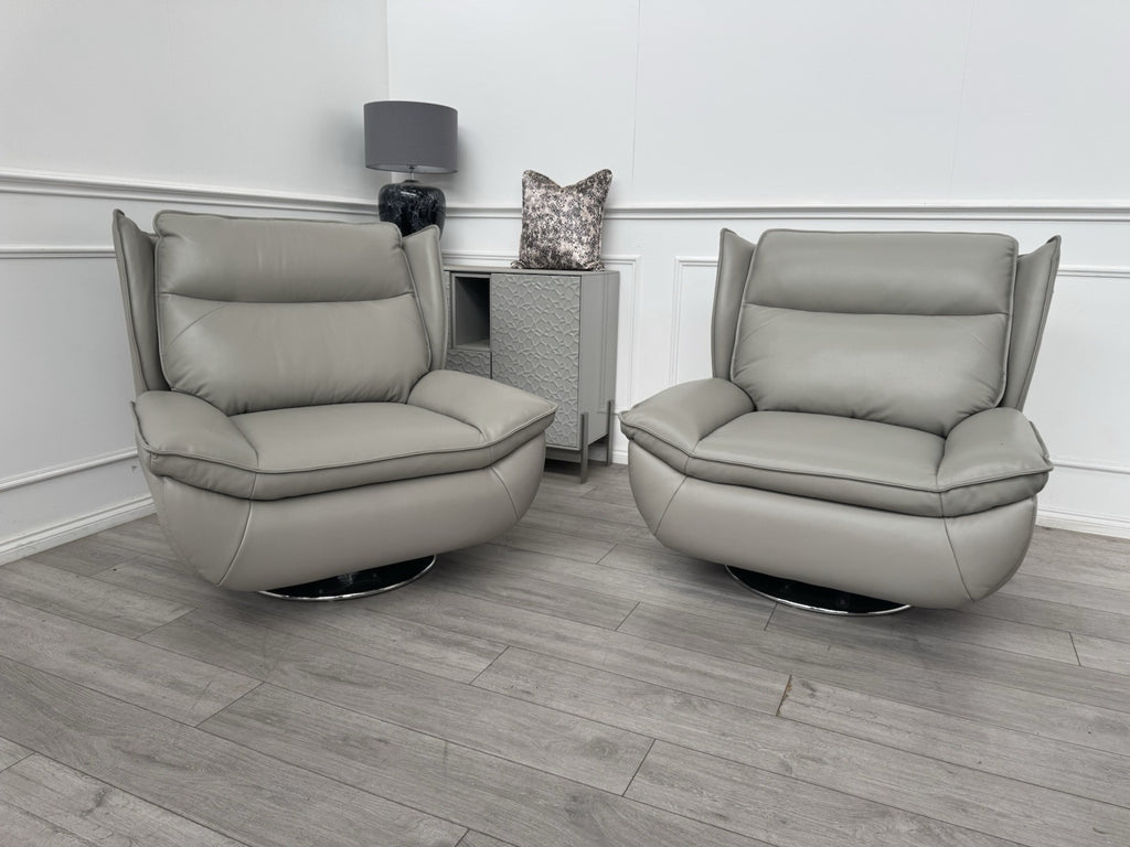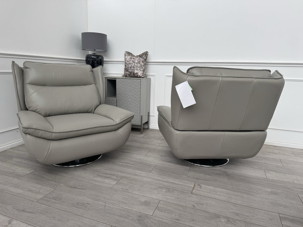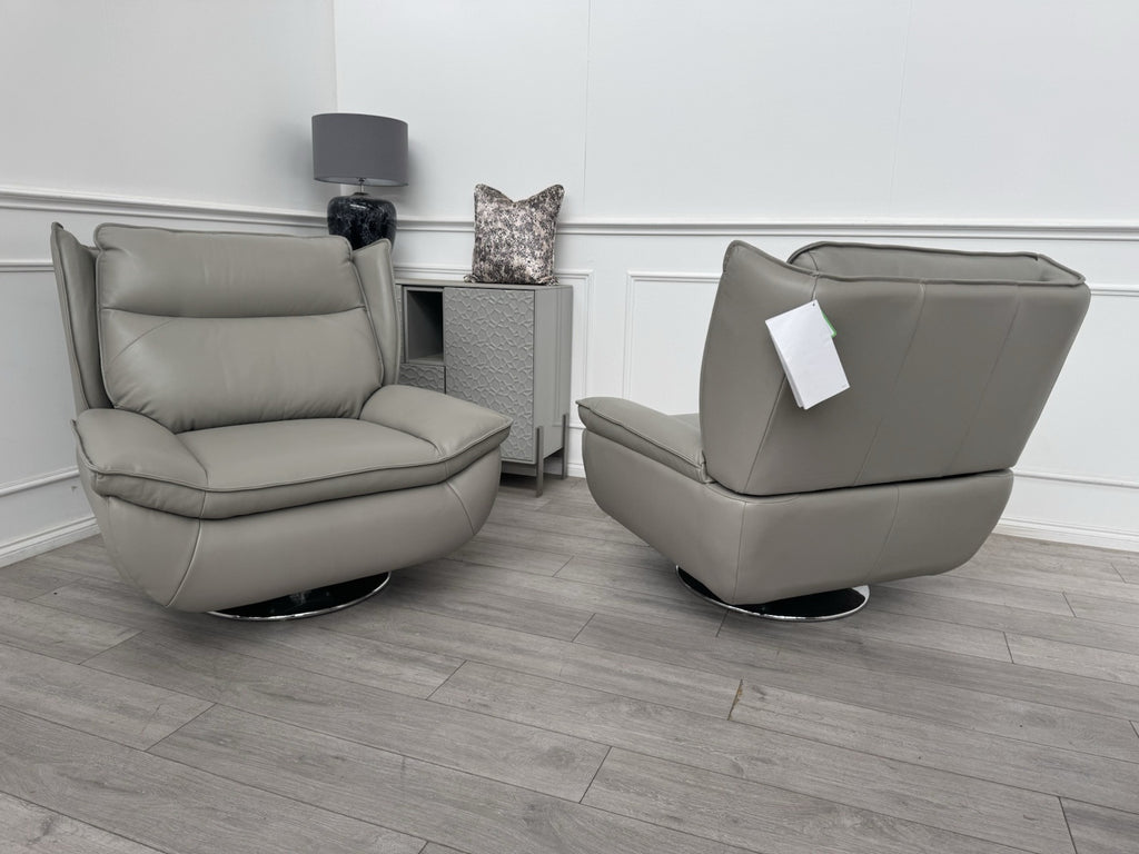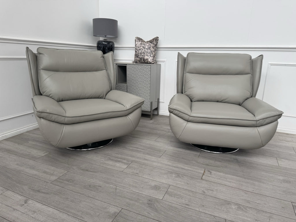 Furniture Village 2x Vinny Grey Leather Swivel Armchair