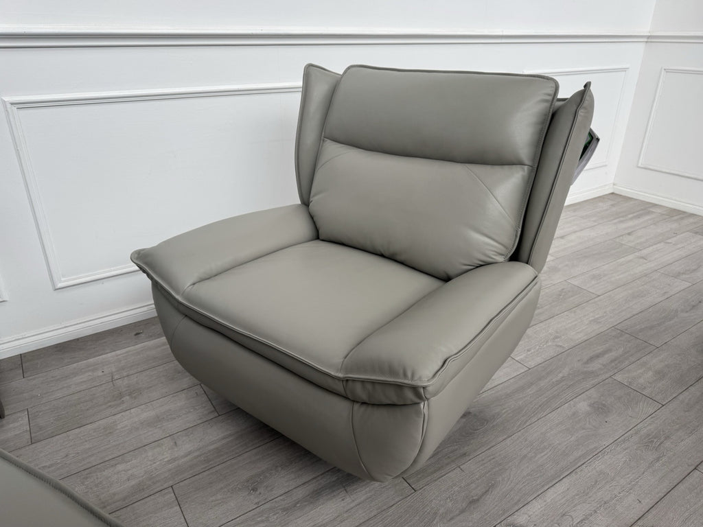 Relax in style with the Furniture Village Vinny Grey Leather Swivel Armchair. This luxurious armchair features a high back design, providing ample support and a cosy feel. The swivel function allows you to adjust your position with ease, while the electric recliner feature ensures you can find your perfect level of comfort.
