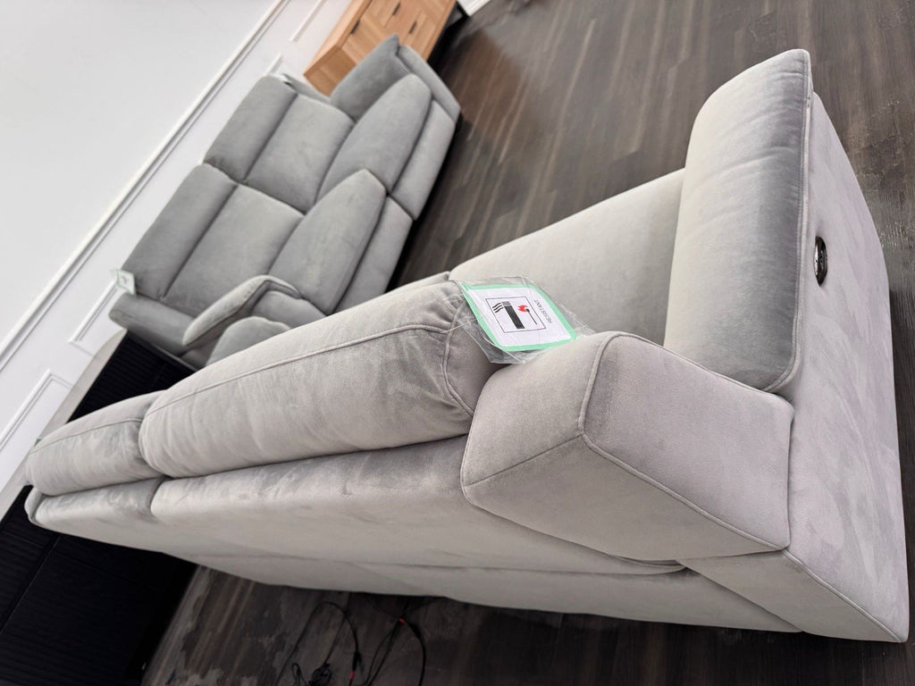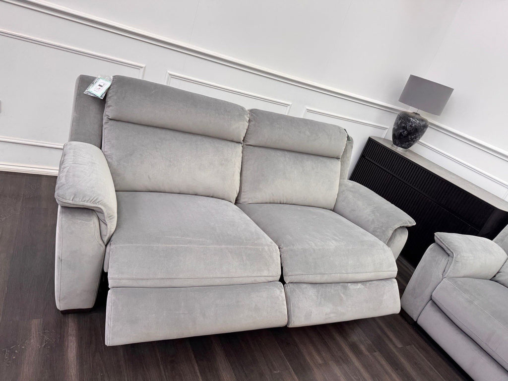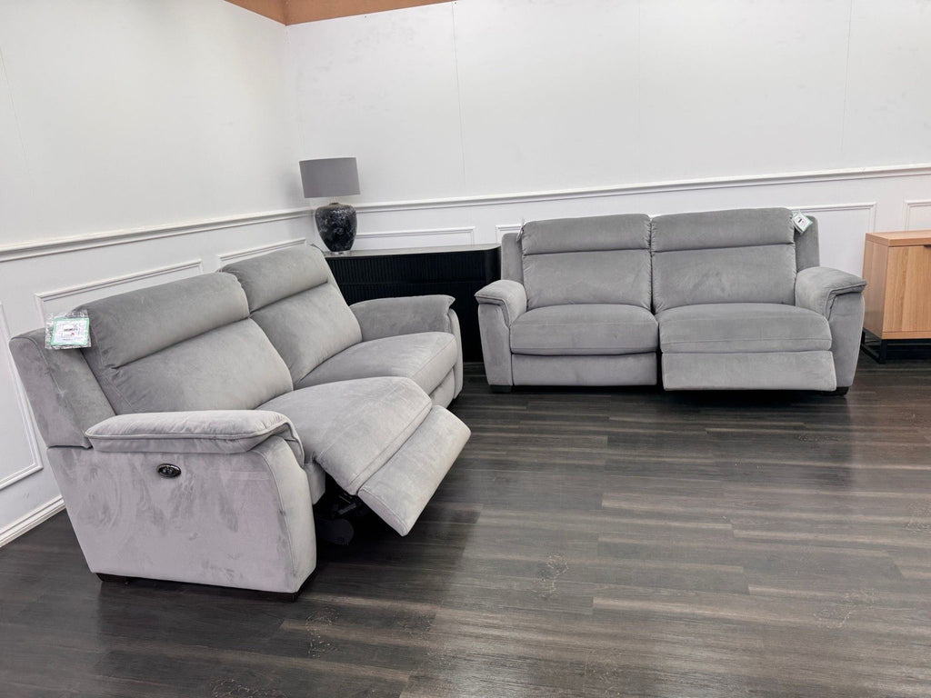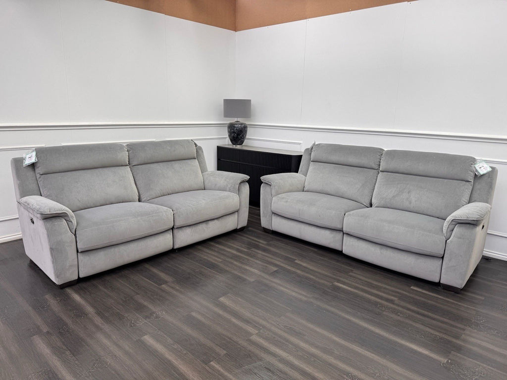 Furniture Village 3+3 Seater Sofa Set Power Recliner Grey Velvet