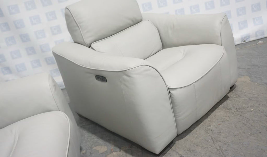 Furniture Village 3 Seater Sofa & Armchair Set Power Recliners Grey Leather