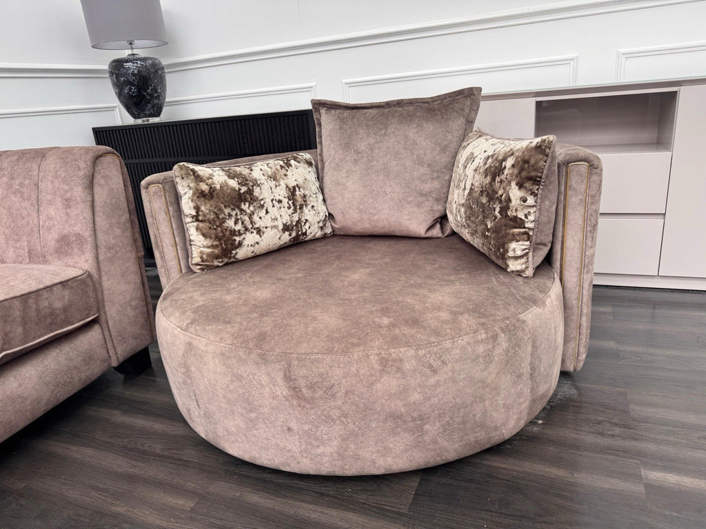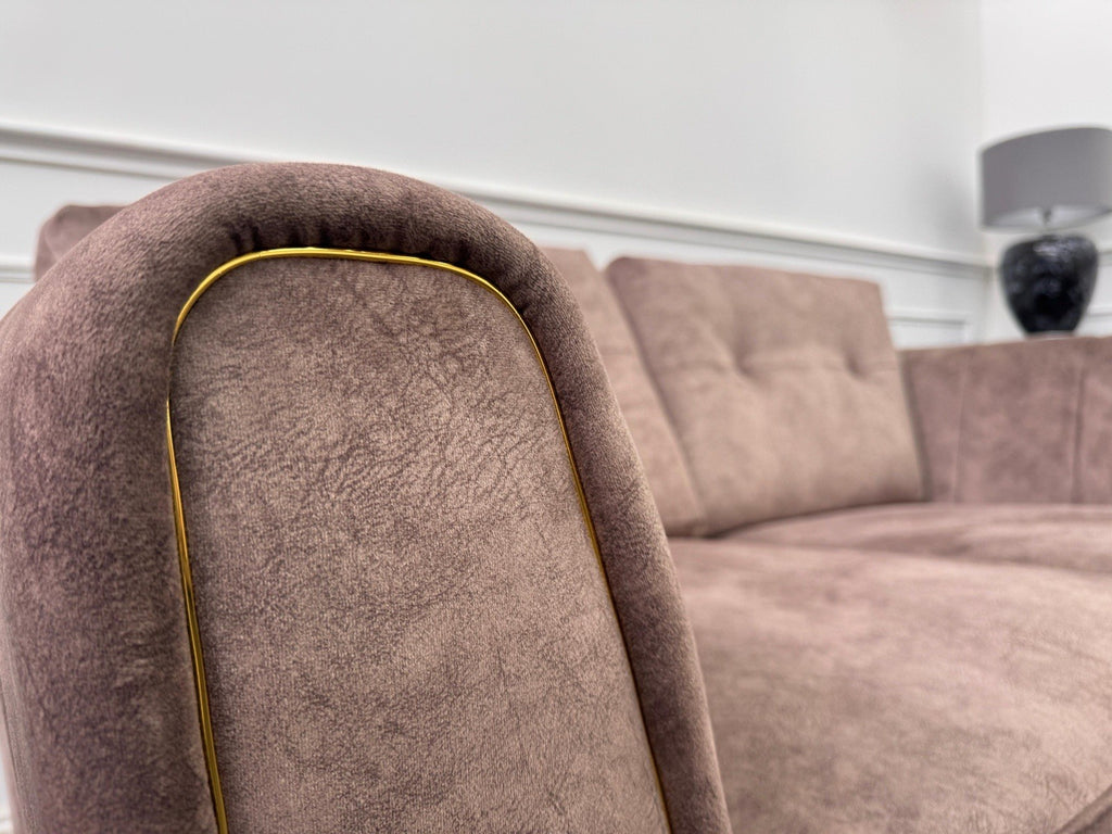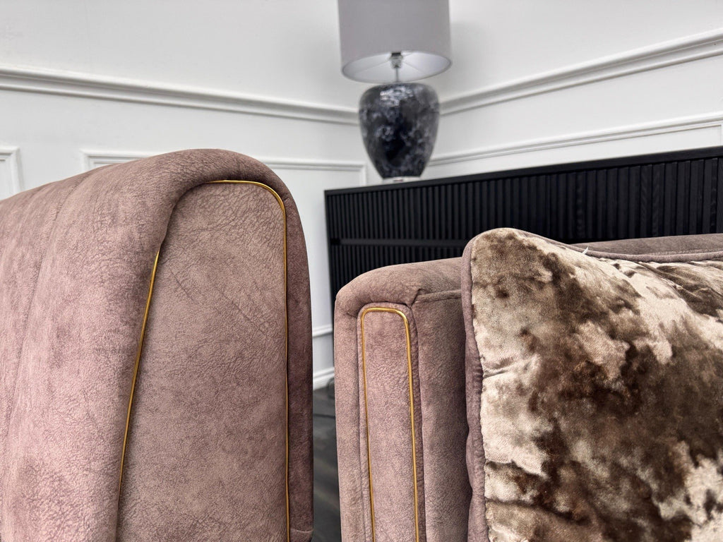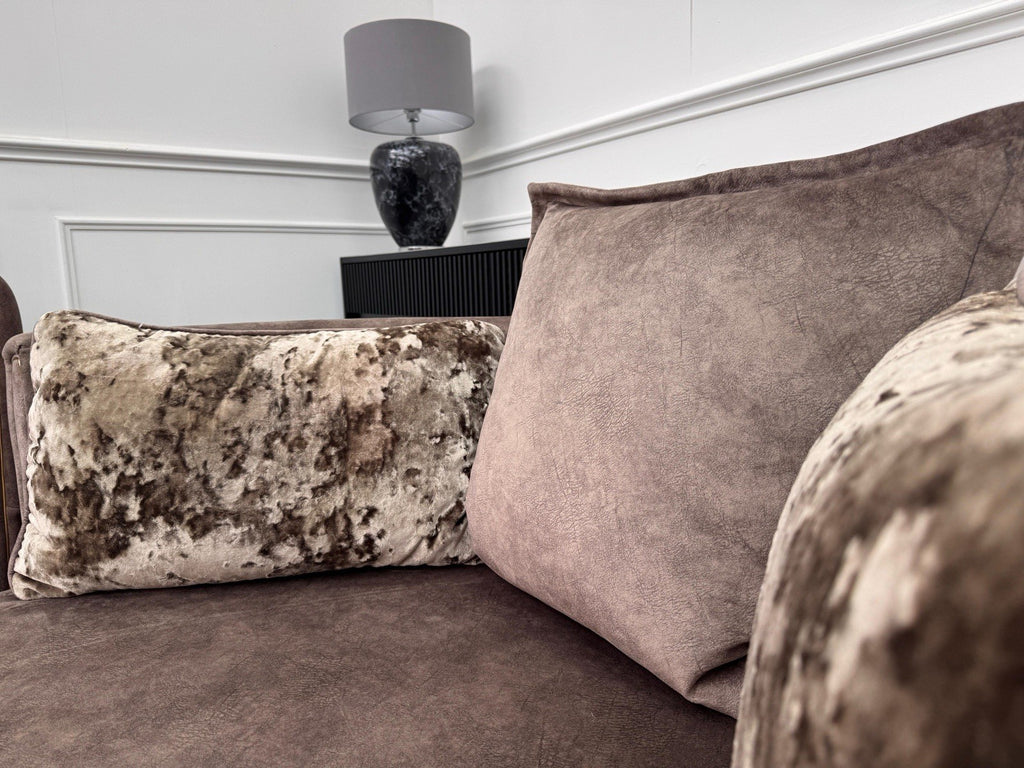 FURNITURE VILLAGE ARIANA 2+cuddle chair Sofa Set Classic Back Dapple Chocolate Gold insert