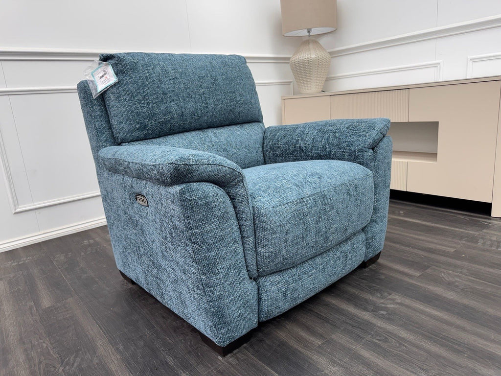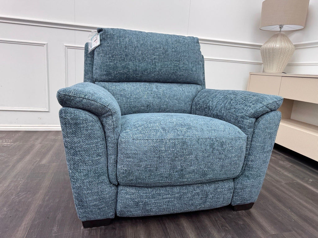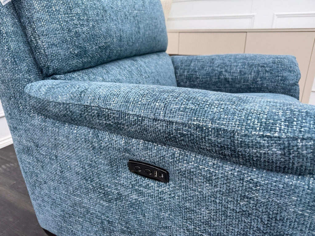 Furniture Village Armchair Power Recliner Blue Woven Fabric