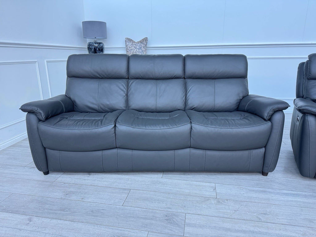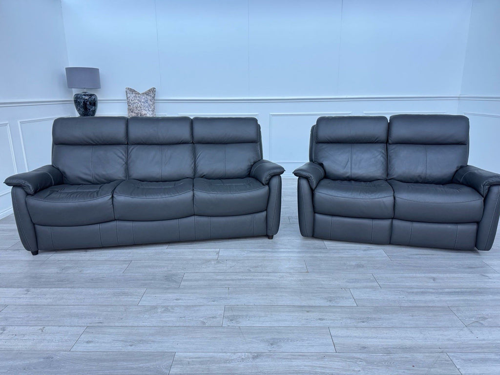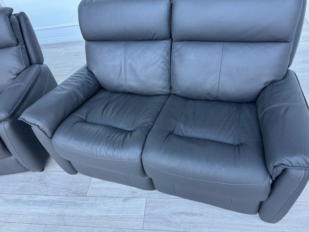 Furniture Village Charcoal Grey Static 3 + Power Recliner 2 Seater Sofa Set