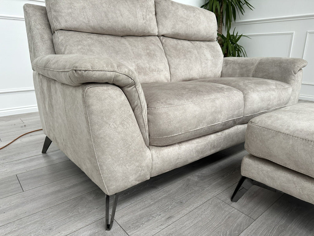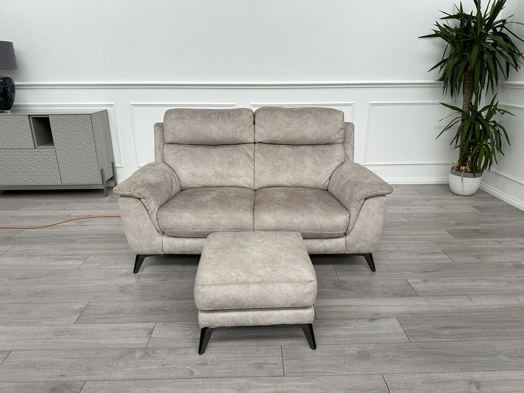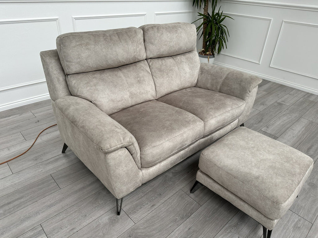 FURNITURE VILLAGE Contempo 2 Seater Sofa Champagne/Cream Soft Fabric + Footstool RRP £1590