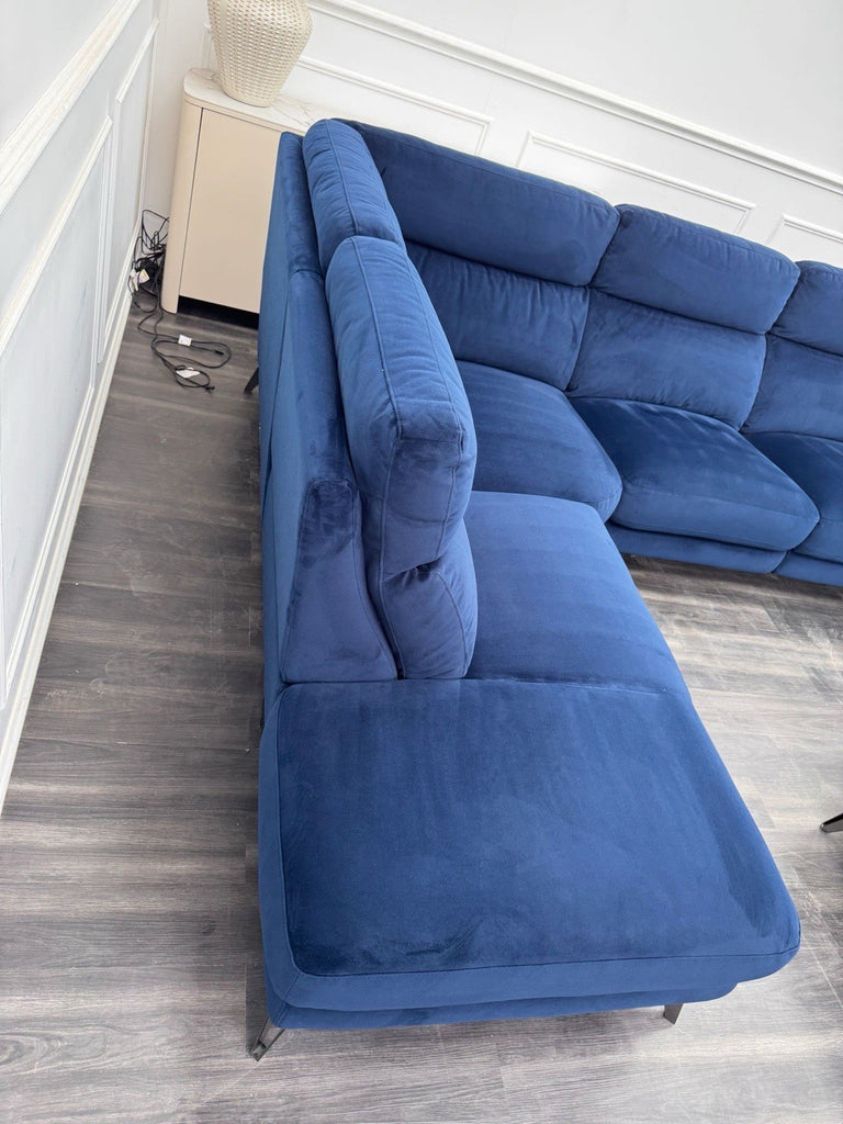 Furniture Village Contempo Power Recliner Corner Sofa In Navy Blue Velvet
