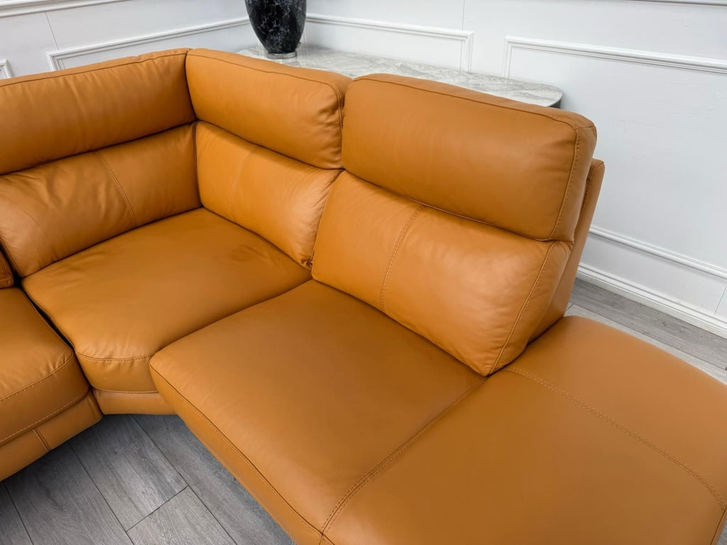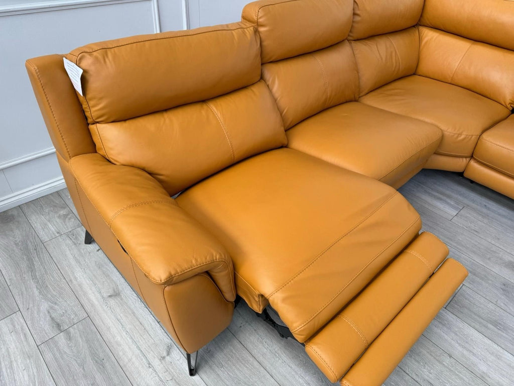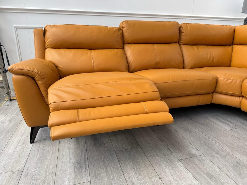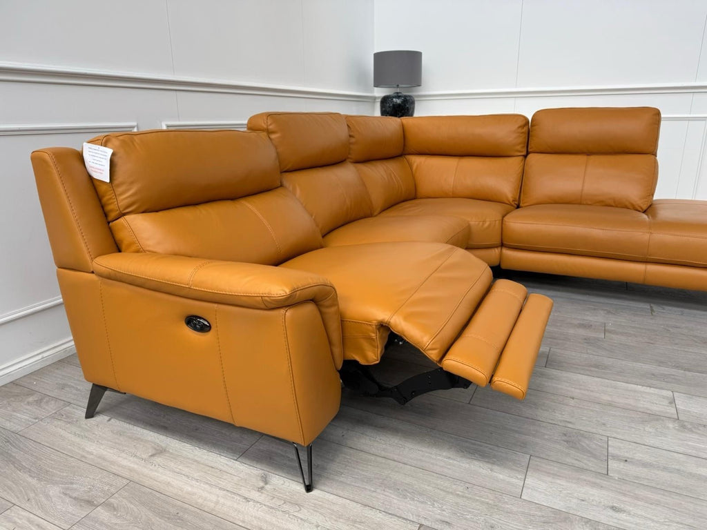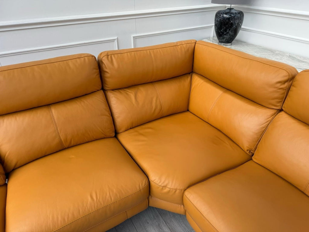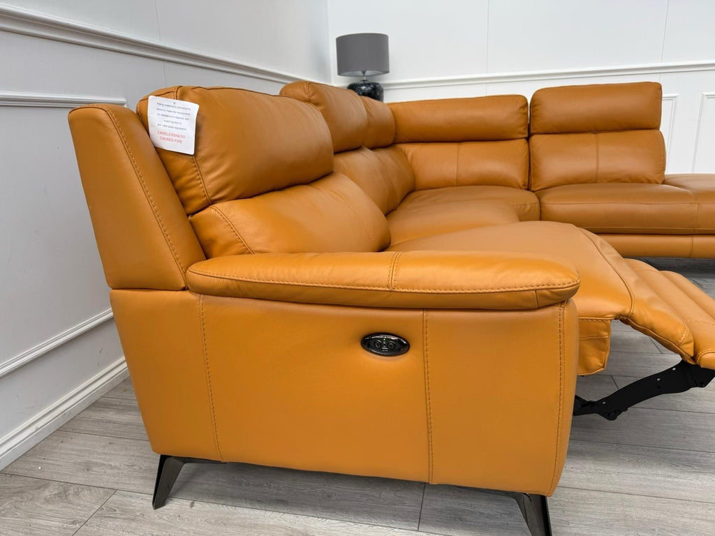 Furniture Village Contempo Power Recliner Corner Sofa In Orange/Tan Leather