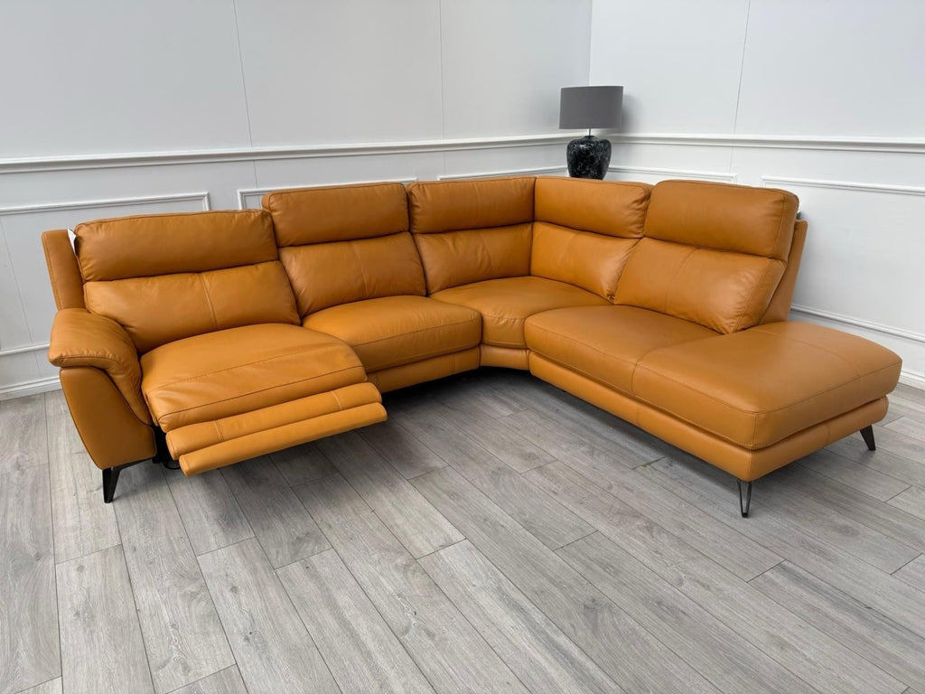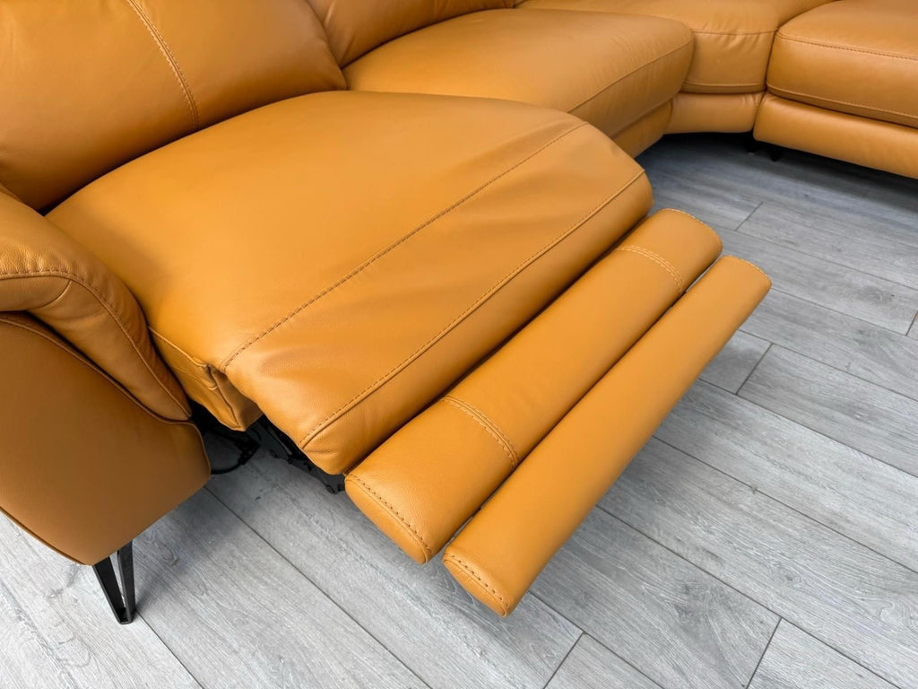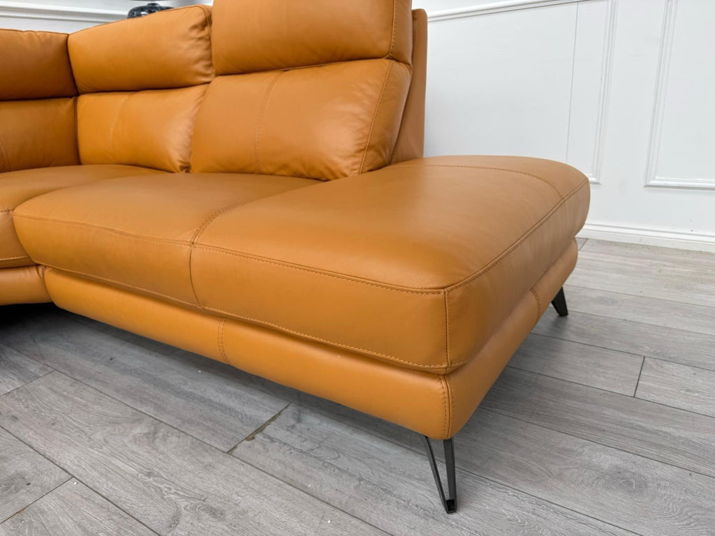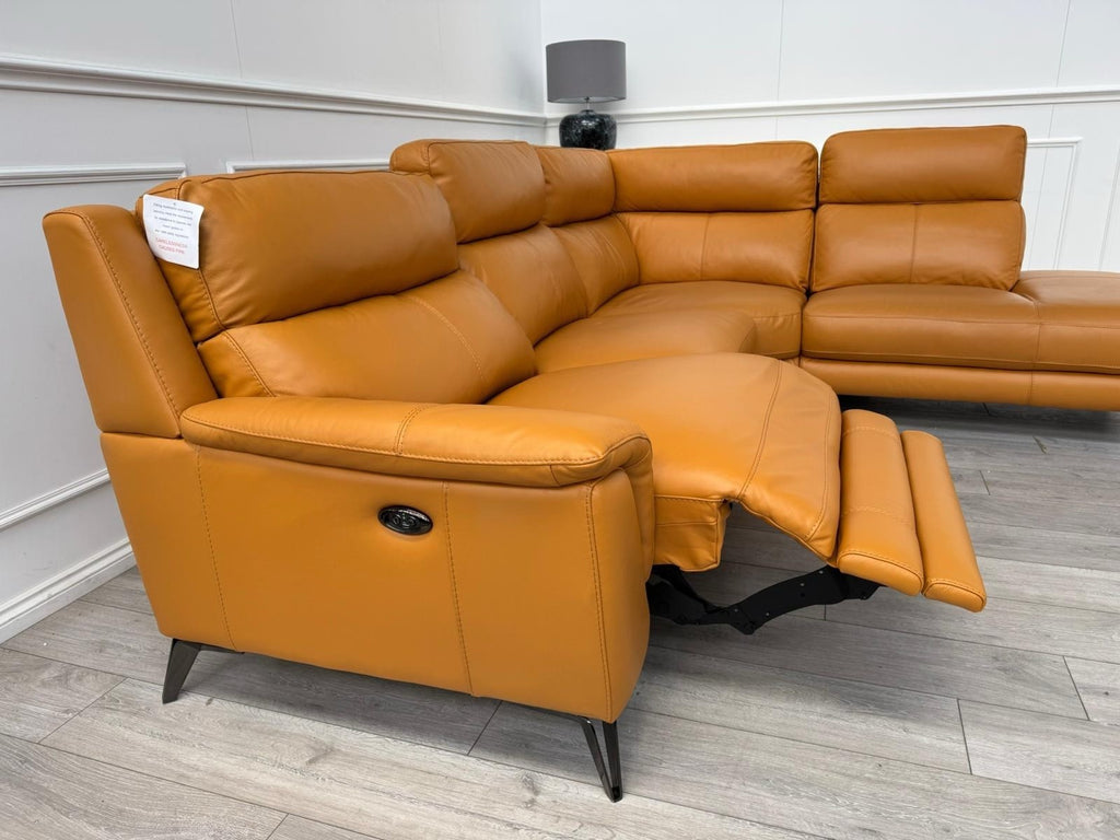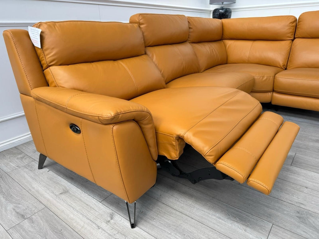 Furniture Village Contempo Power Recliner Corner Sofa In Orange/Tan Leather