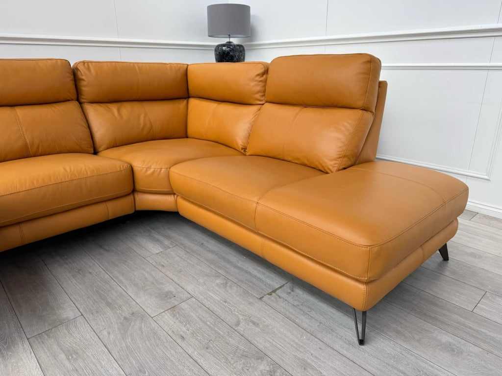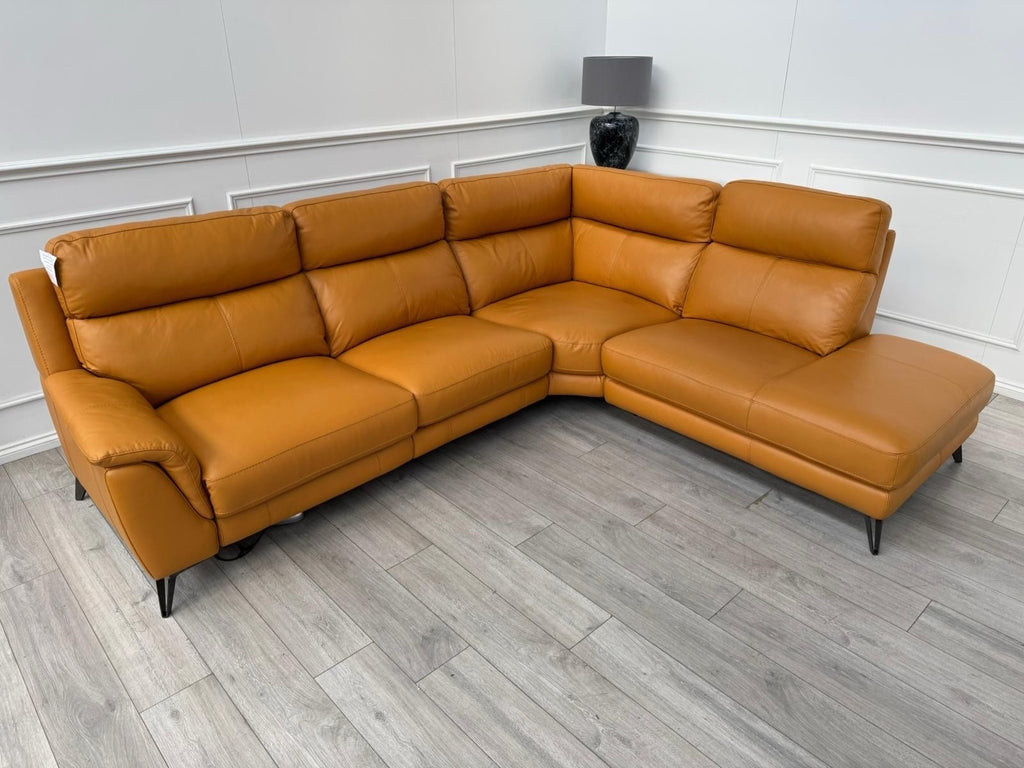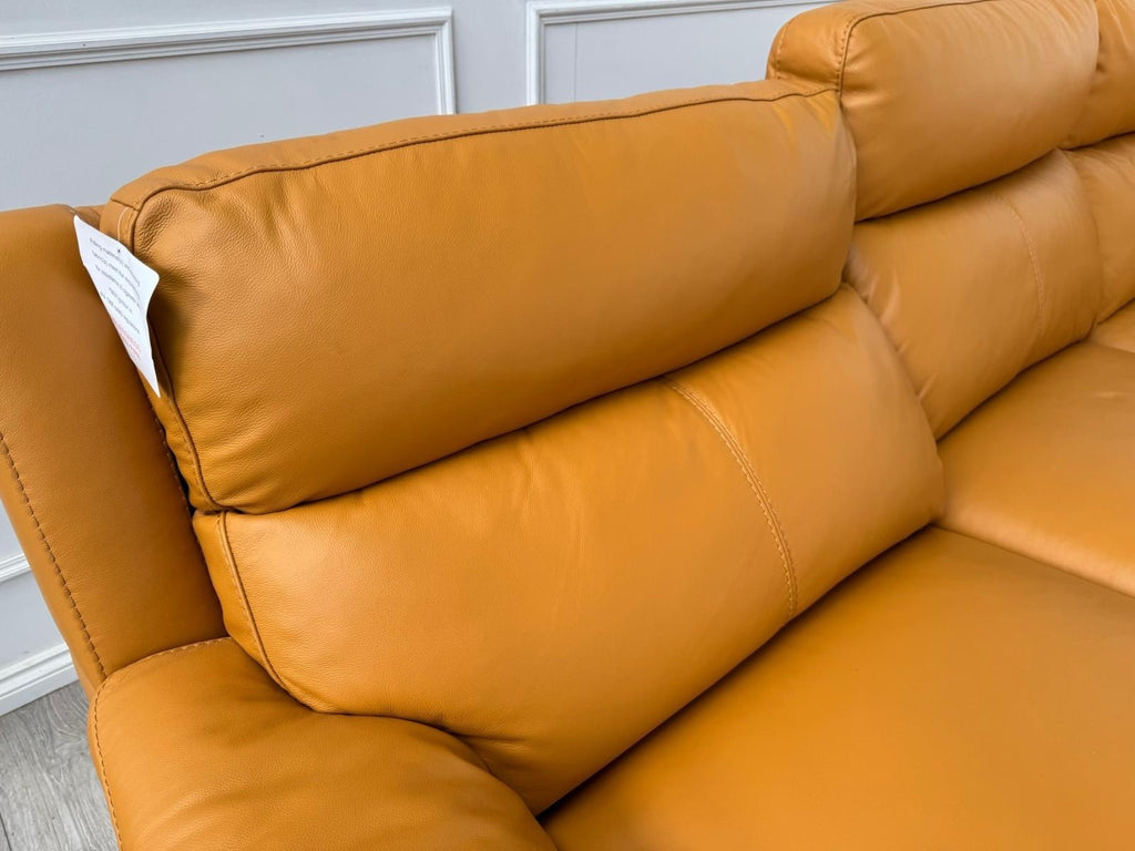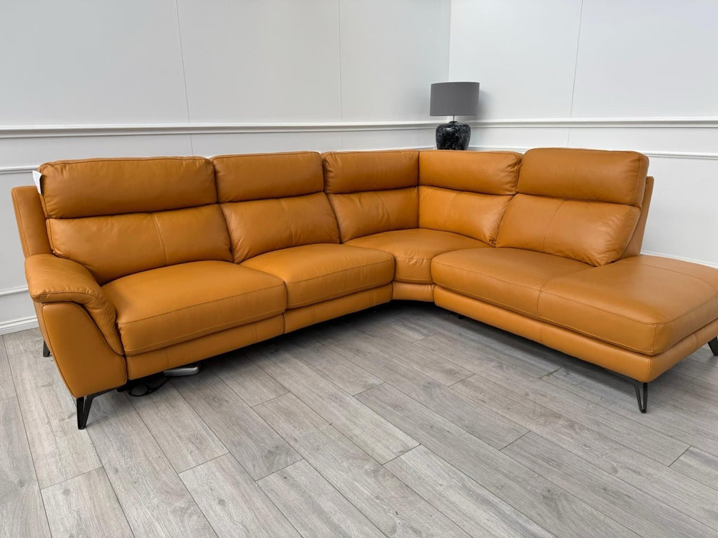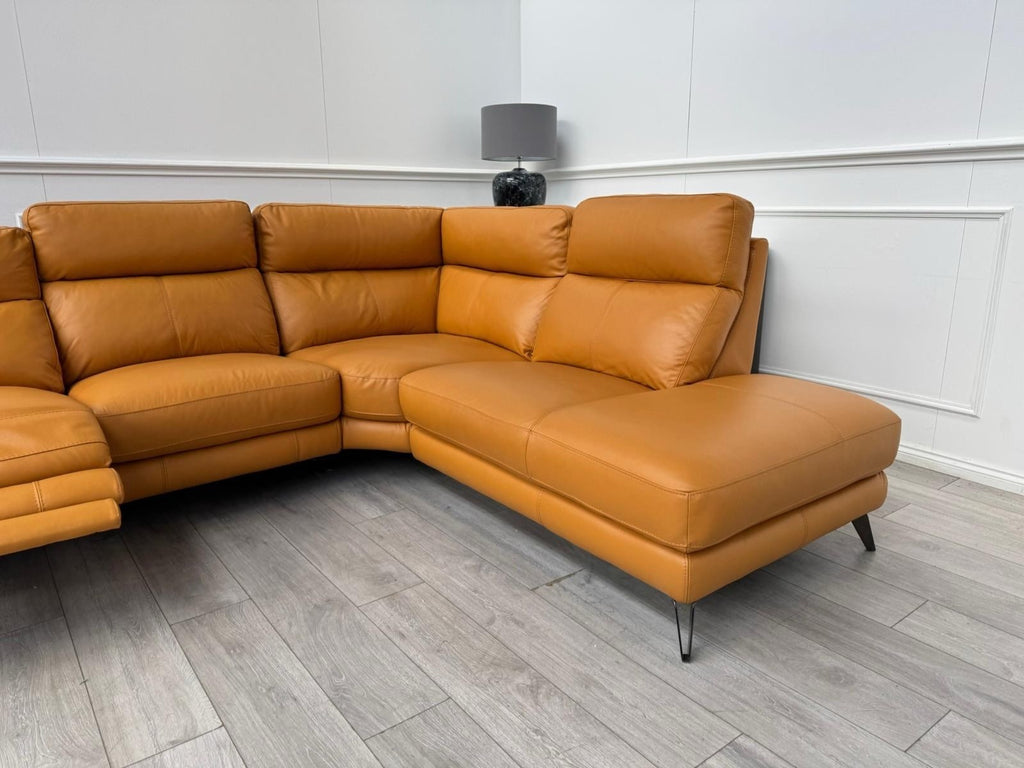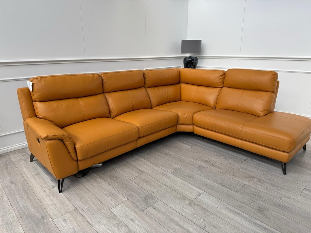 Furniture Village Contempo Power Recliner Corner Sofa In Orange/Tan Leather