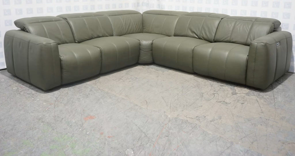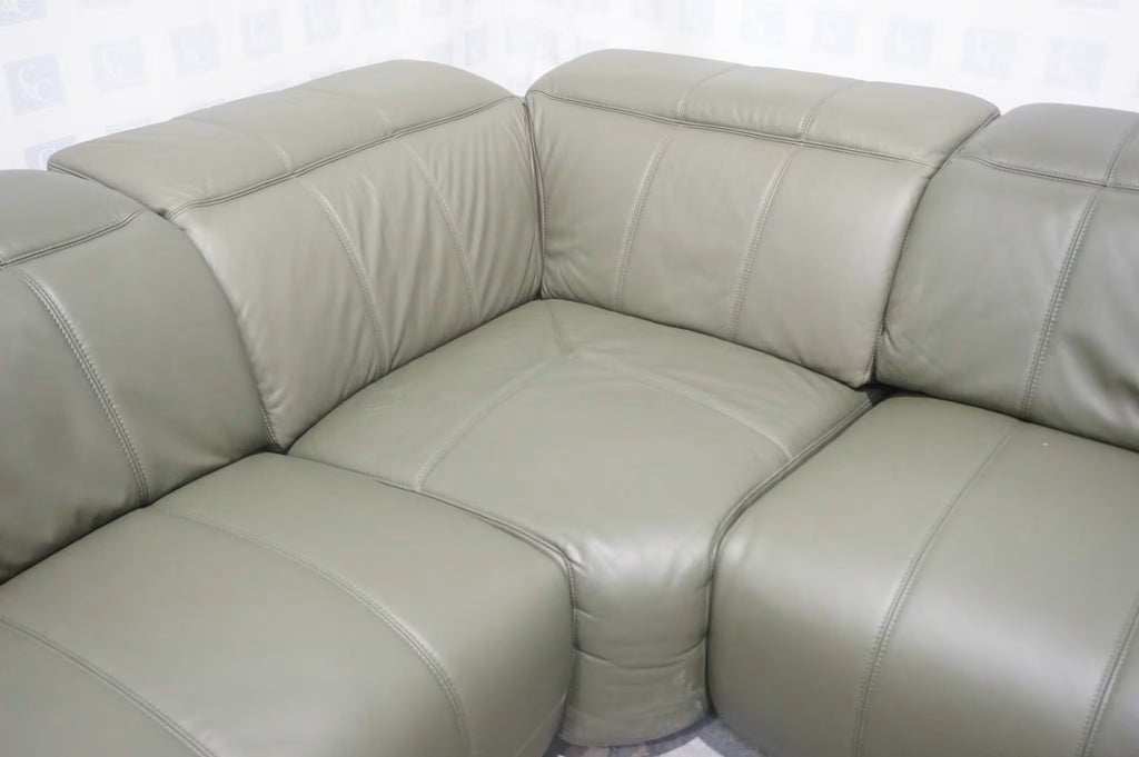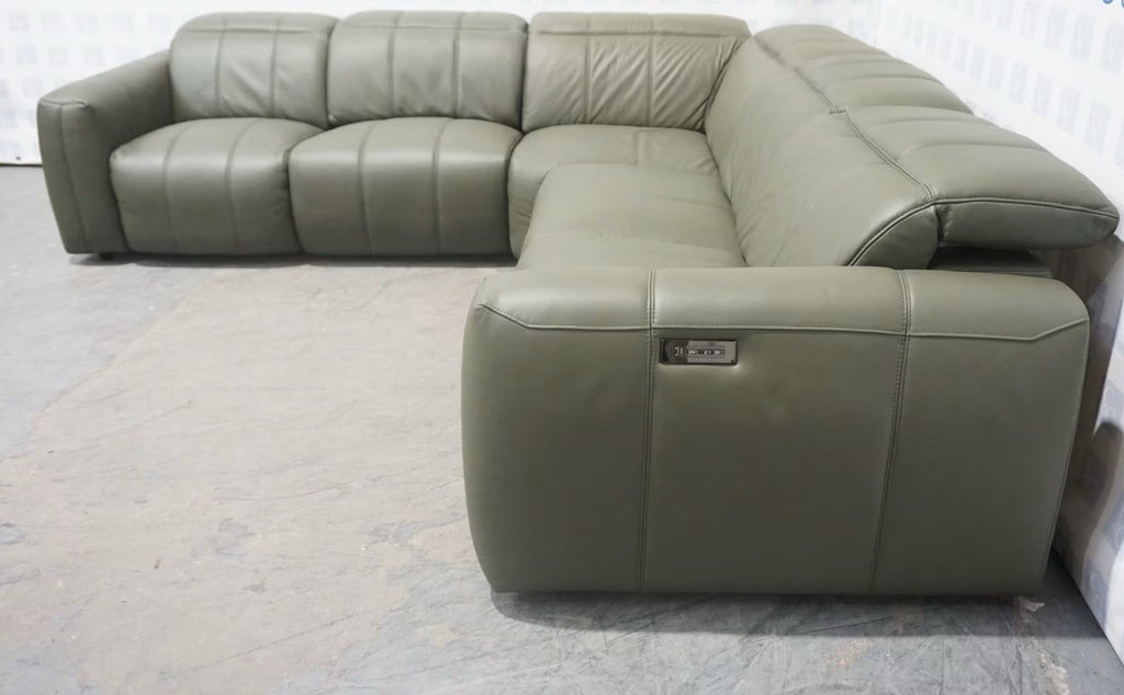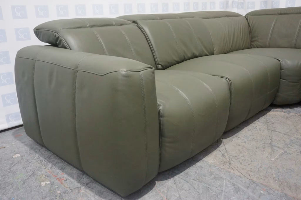 Furniture Village Corner Sofa 1 Seat Power Recliner & Headrests Green Leather