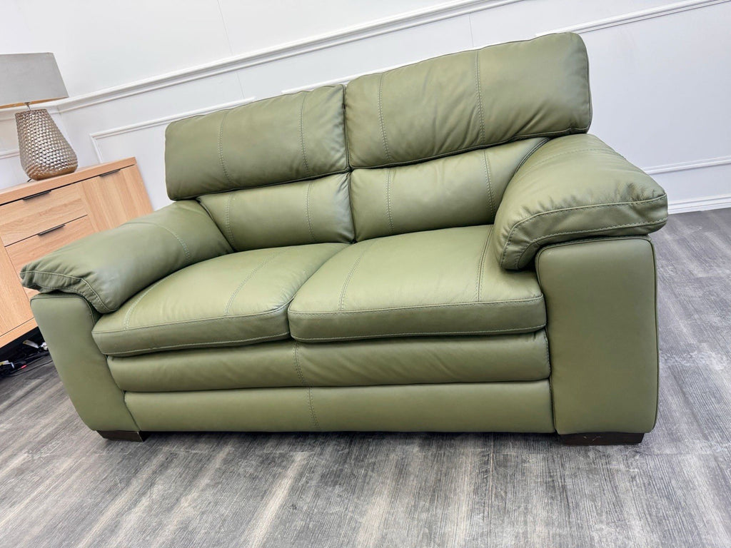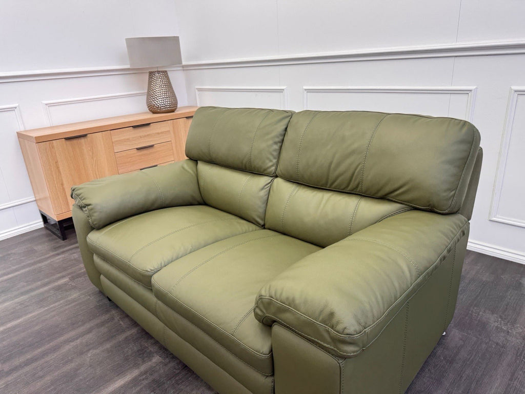Furniture Village Cozee 2 Seater Sofa in Army Green Pure Leather