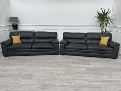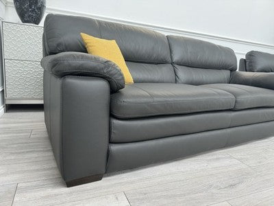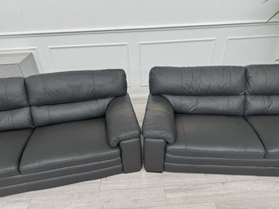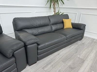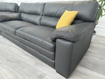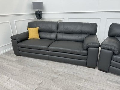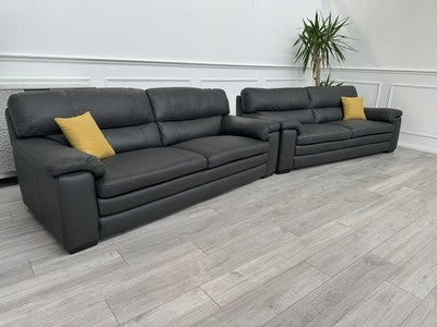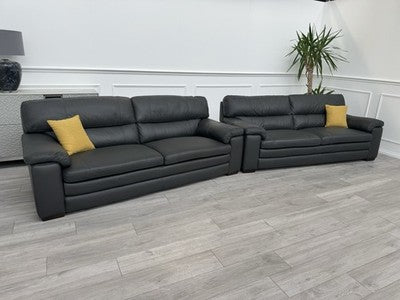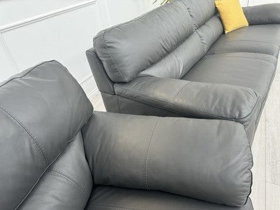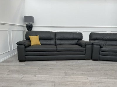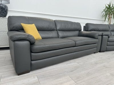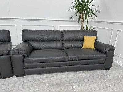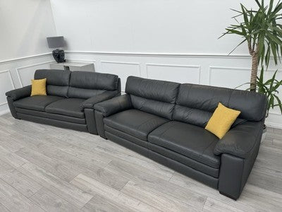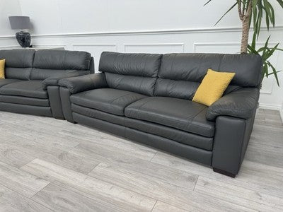 Furniture Village Cozee Dark Grey Pure Premium Leather 3+3 Seater Sofa Set