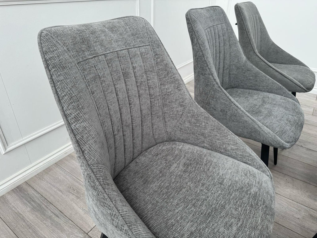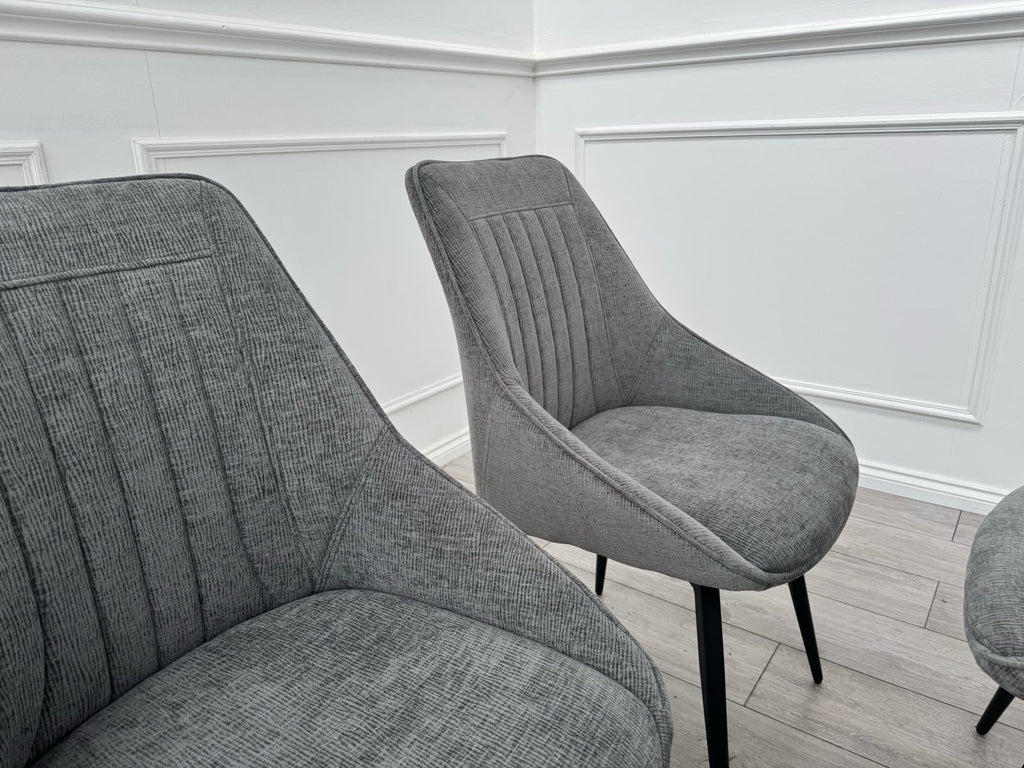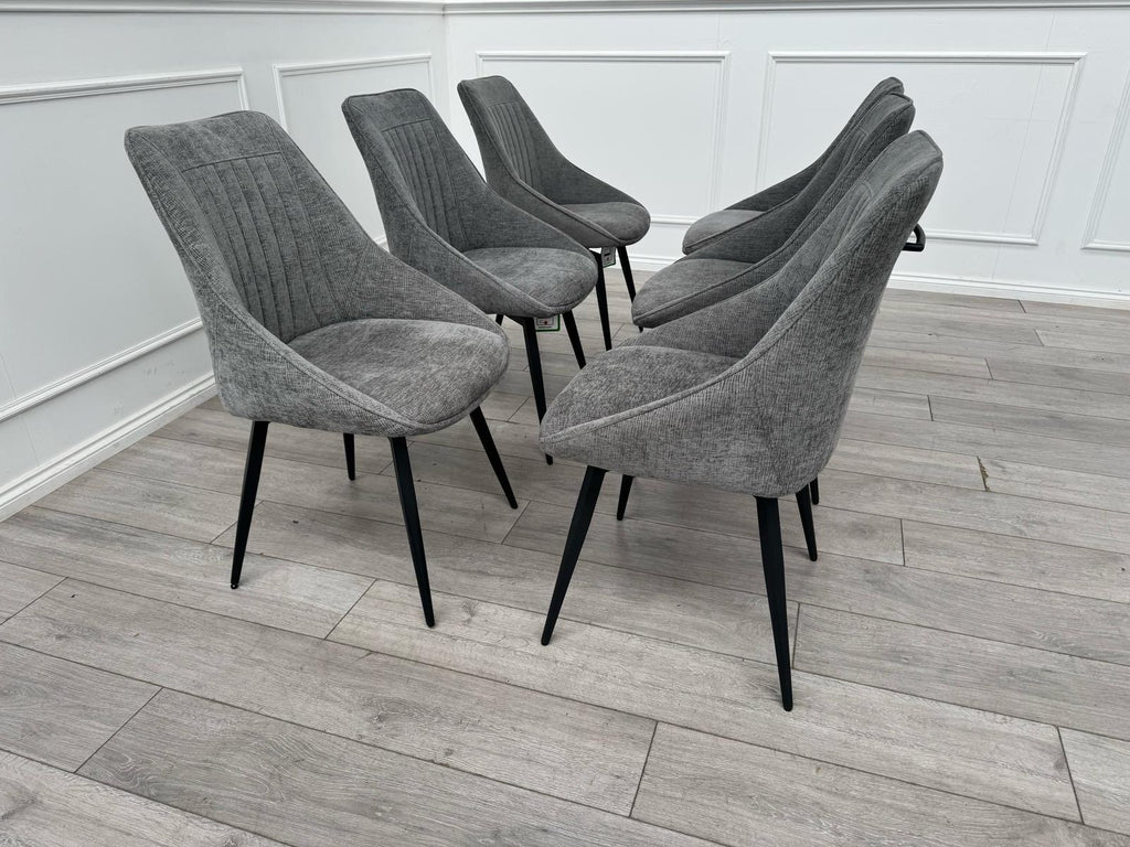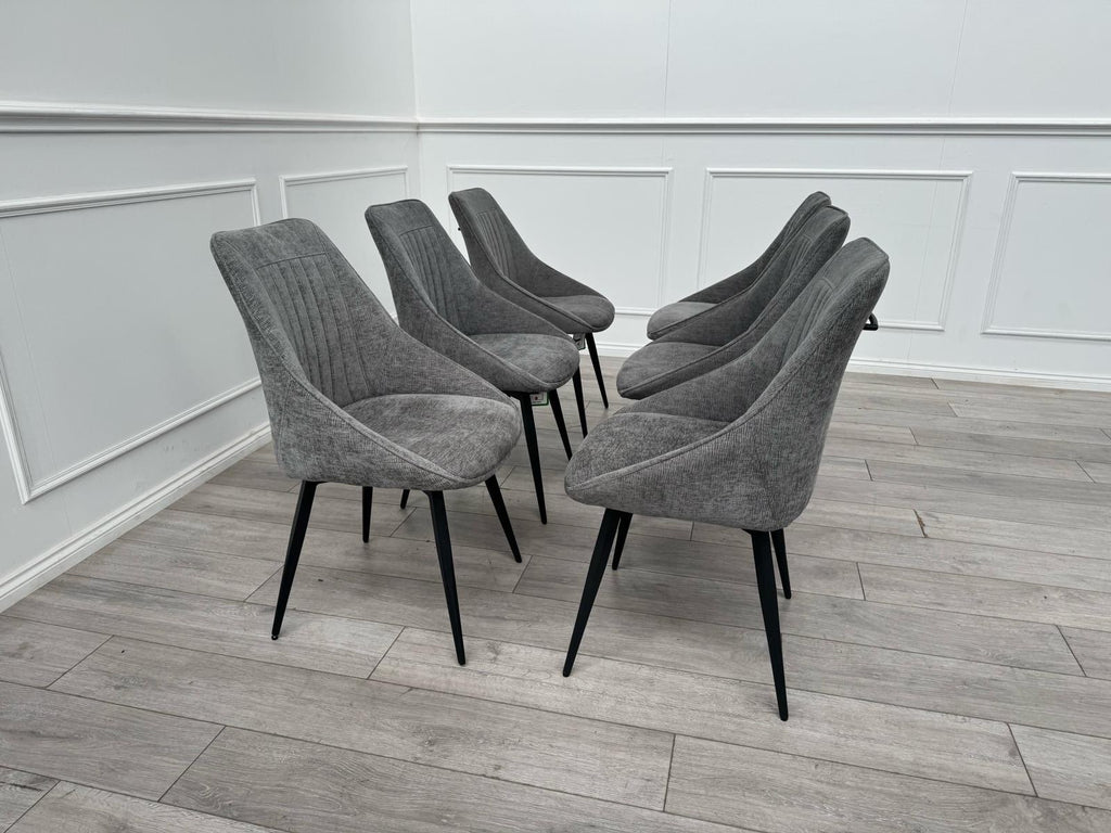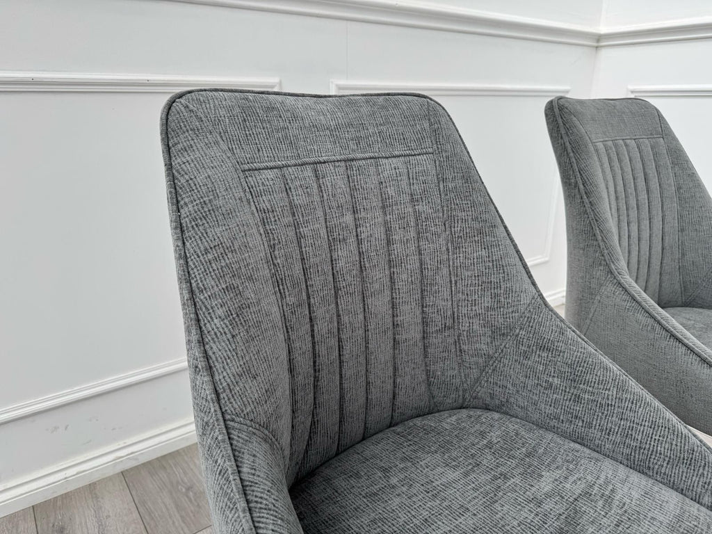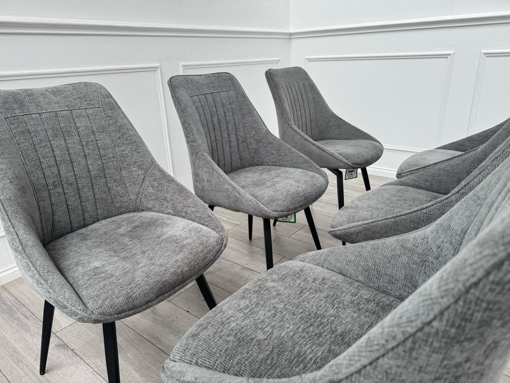 Furniture Village Crete Set Of 6 Swivel Dining Chairs Grey Fabric (Delivery)