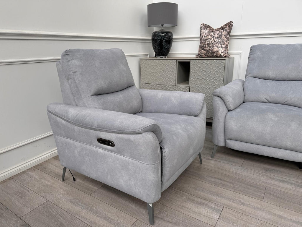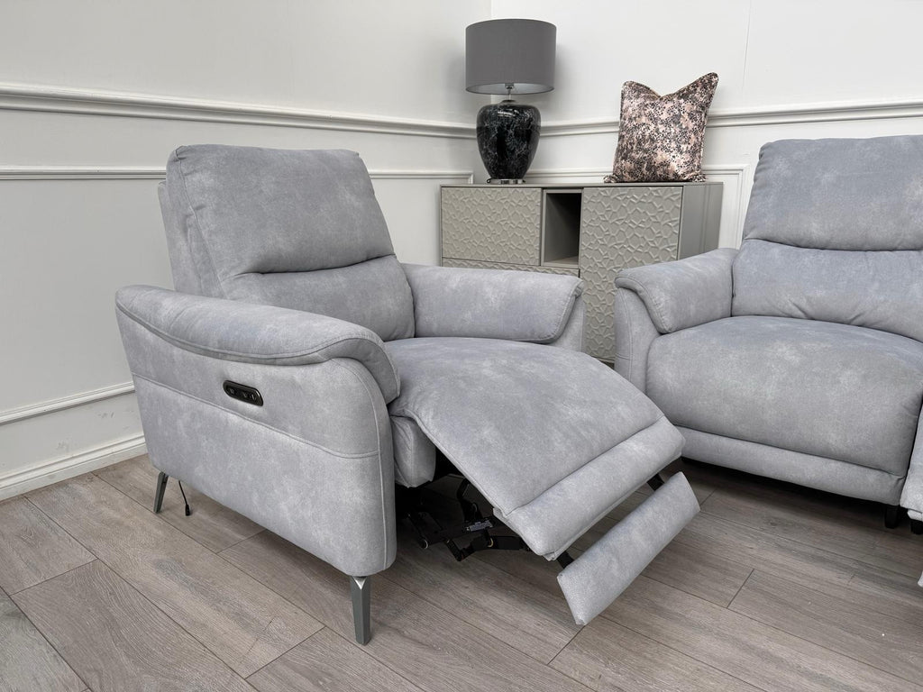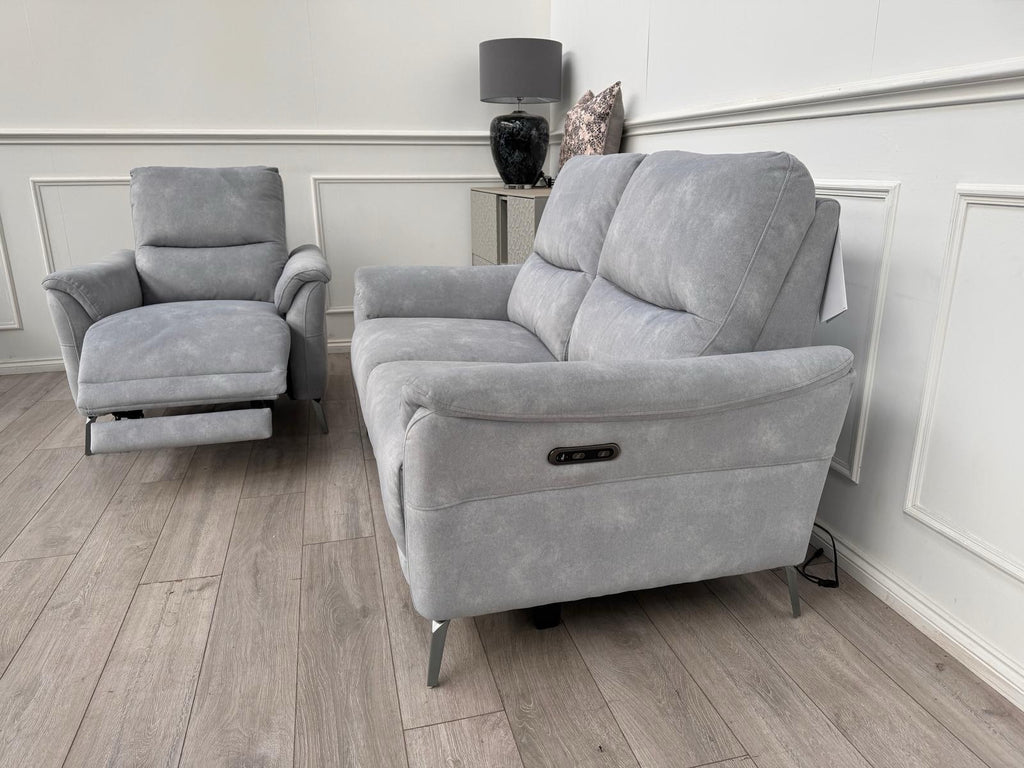 Furniture Village Daytona 2 Seater & Armchair Power Recliner Set Dexter Smoke