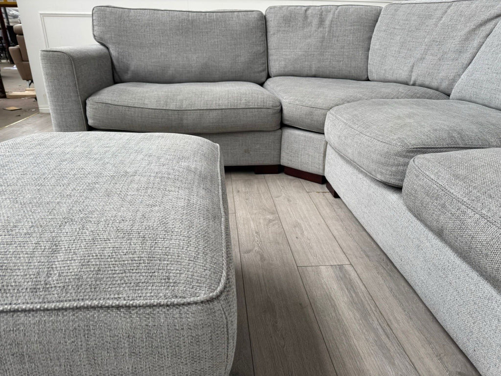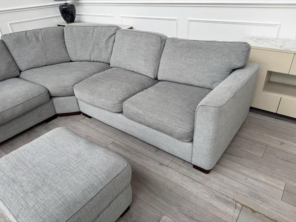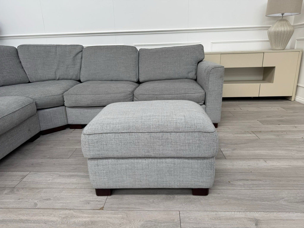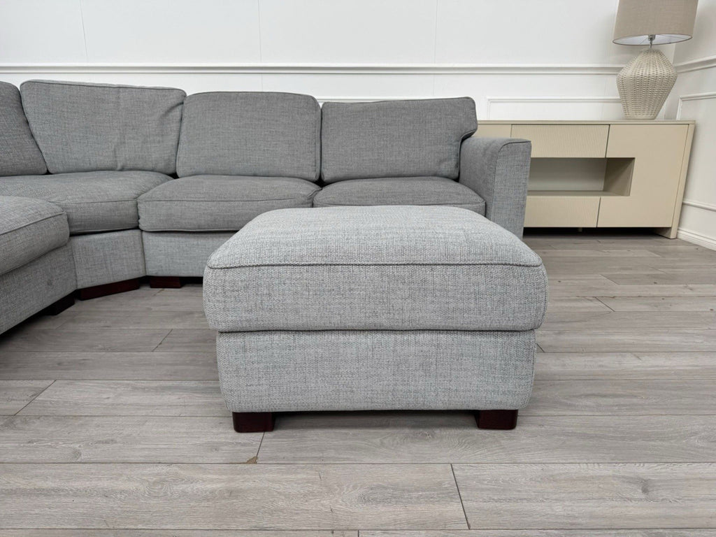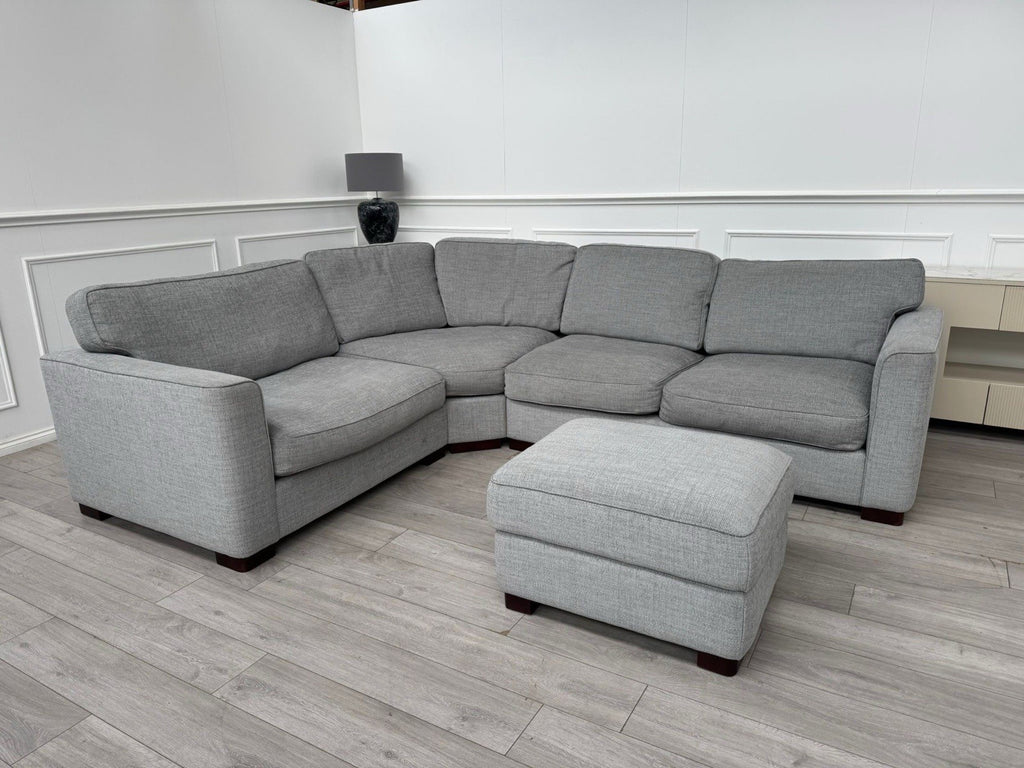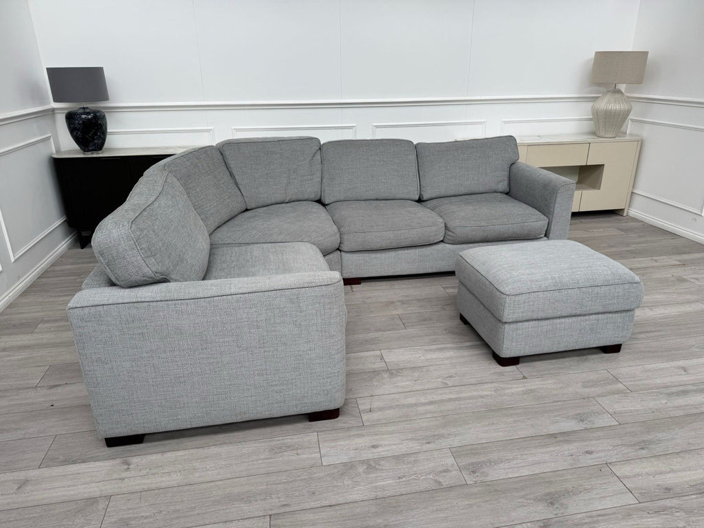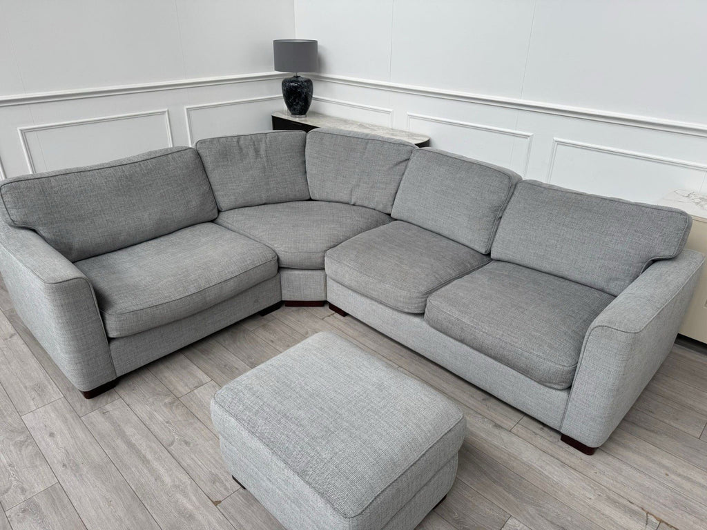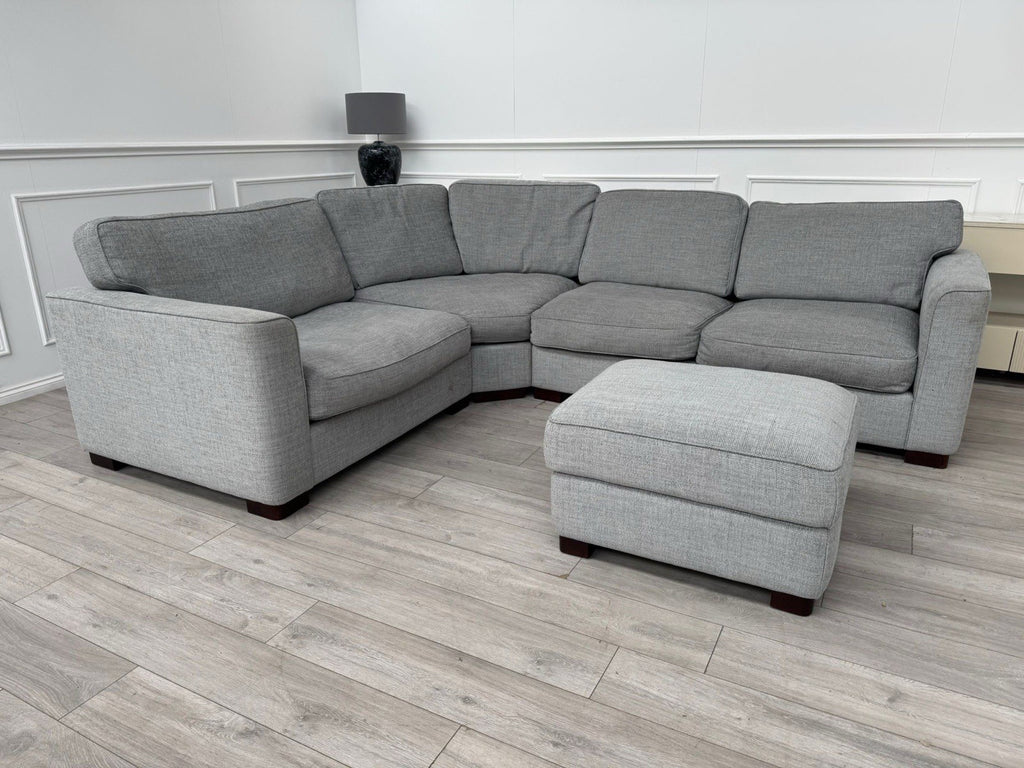 FURNITURE VILLAGE Elora Curved Corner Sofa Grey Fabric + Storage Footstool