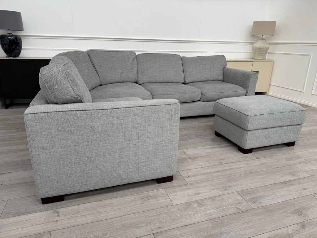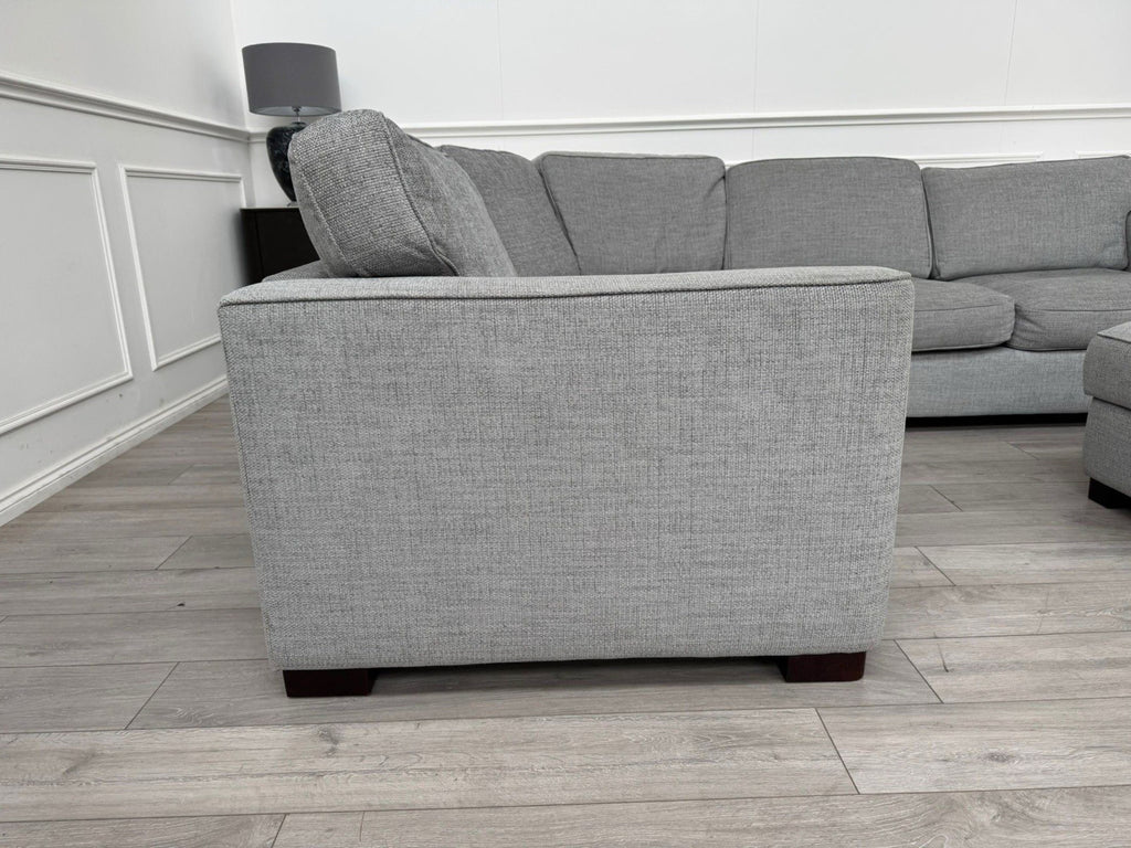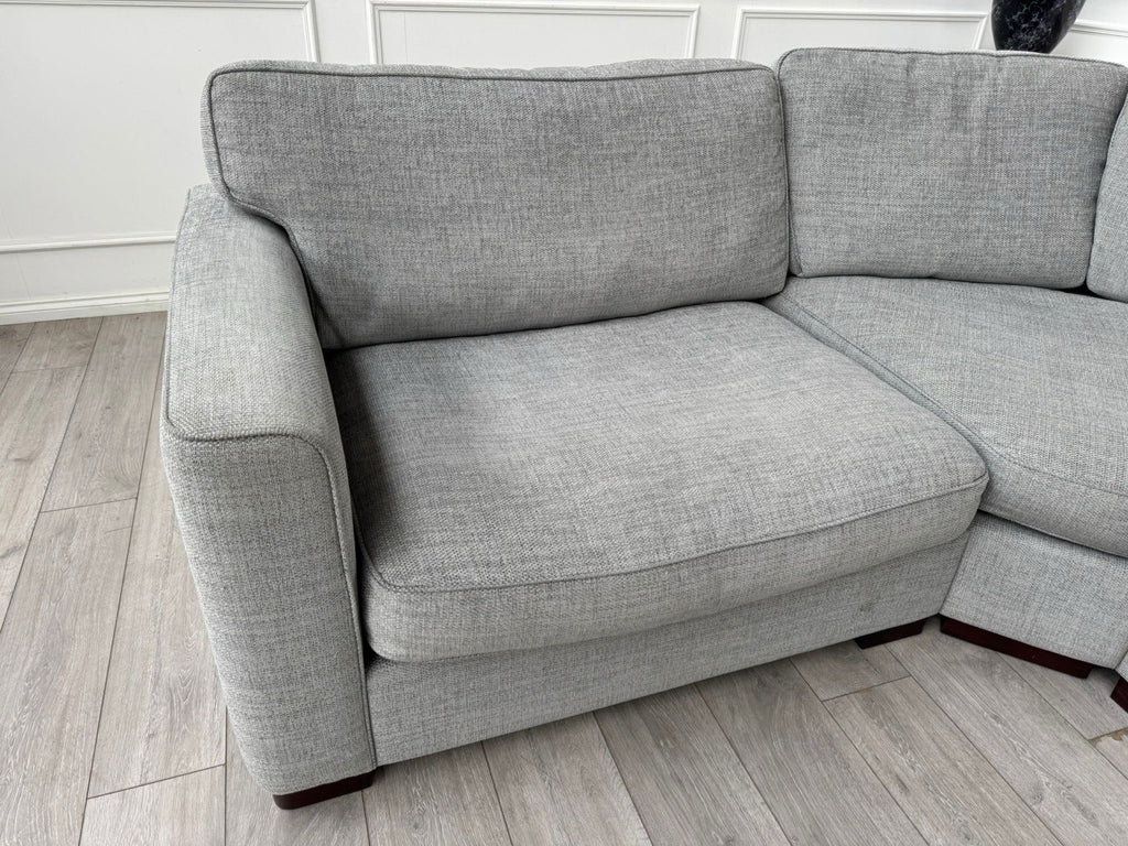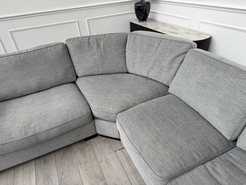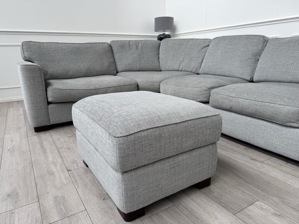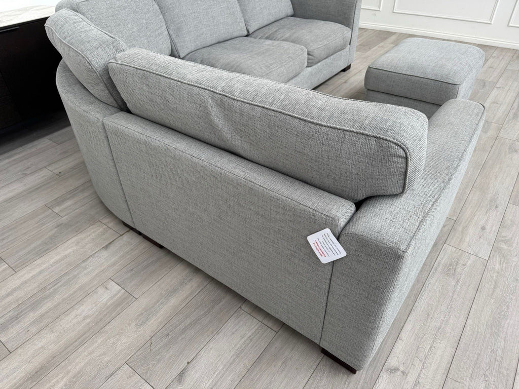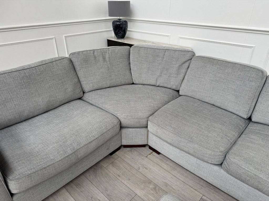 FURNITURE VILLAGE Elora Curved Corner Sofa Grey Fabric + Storage Footstool