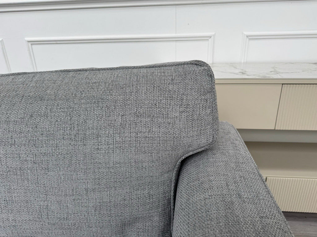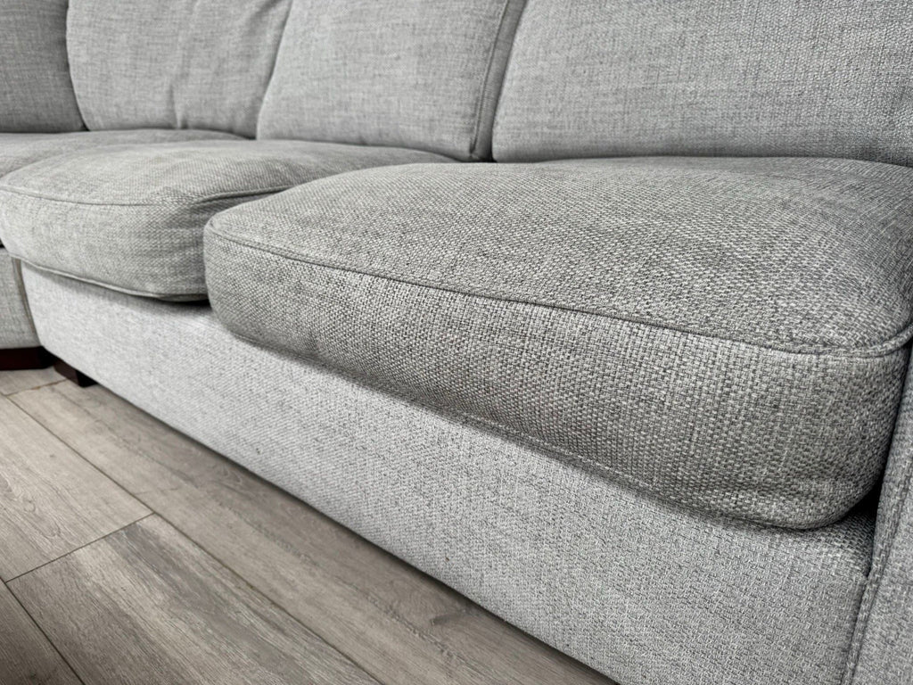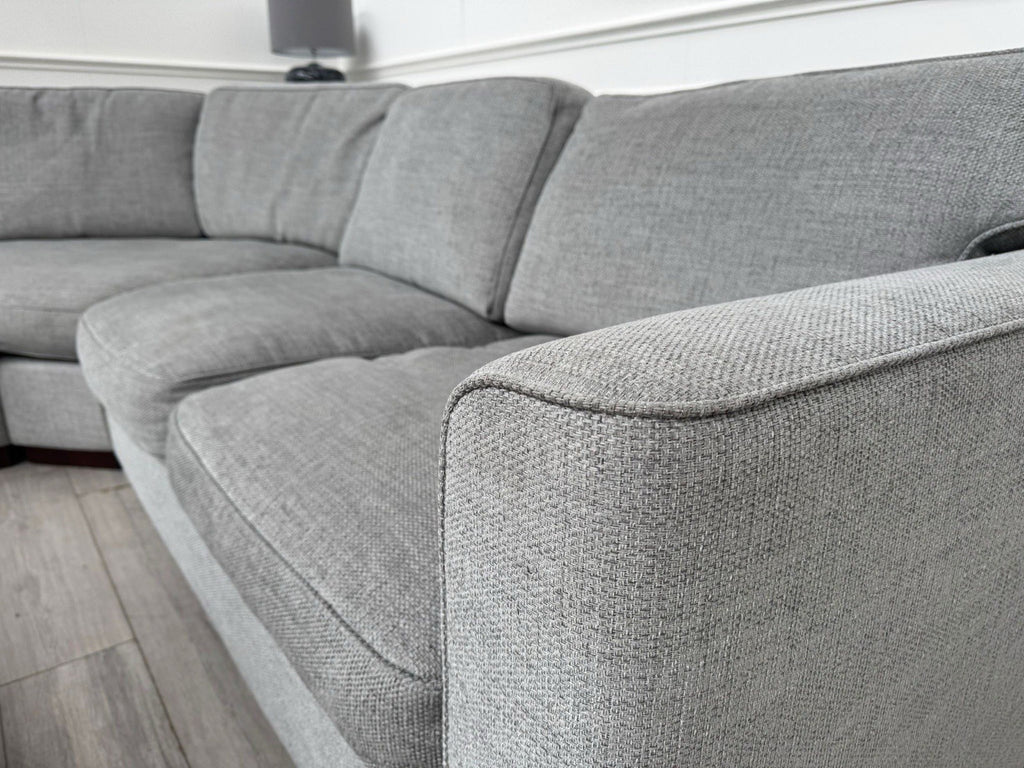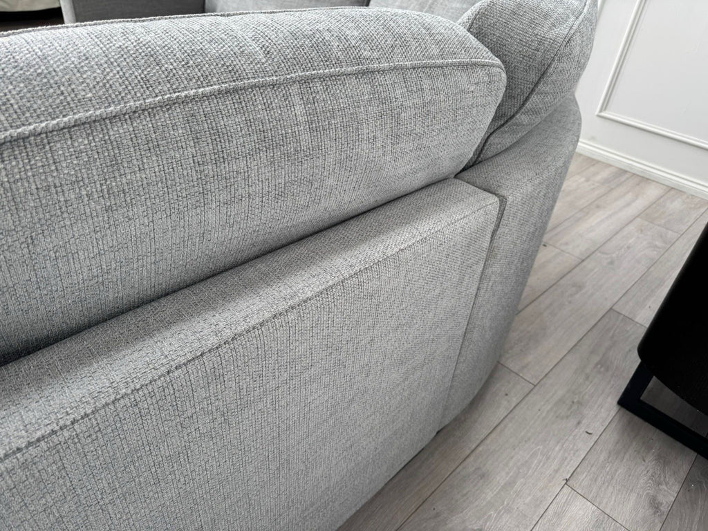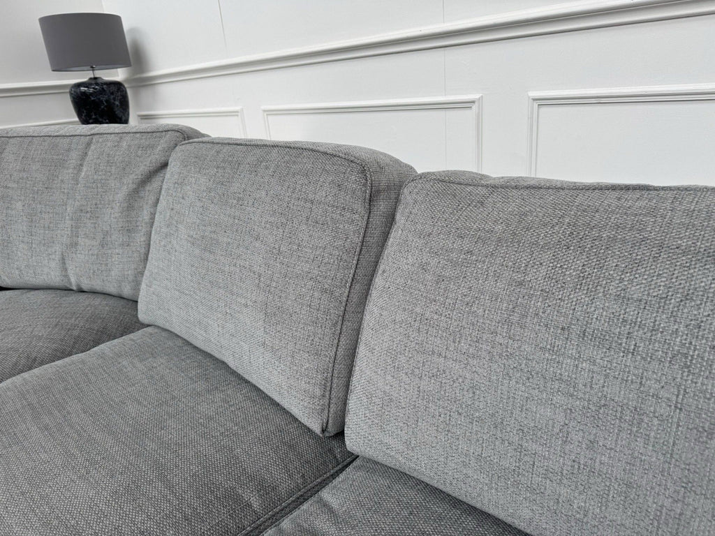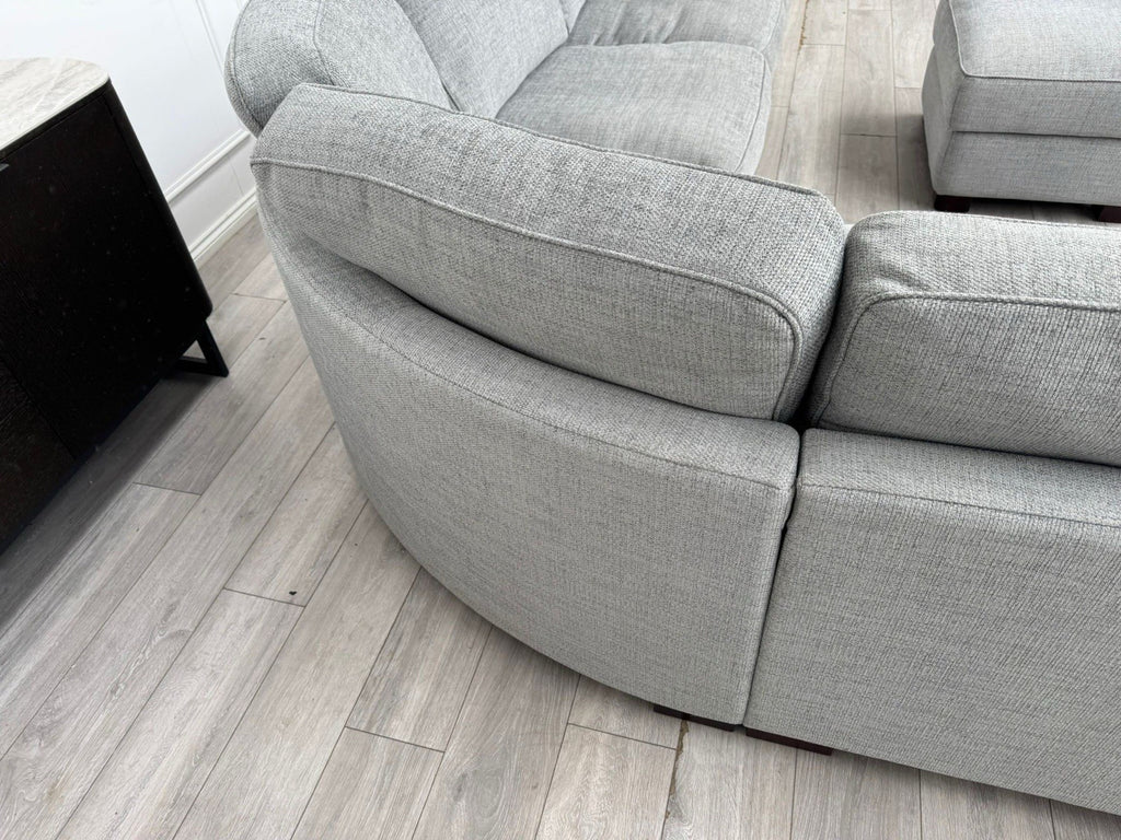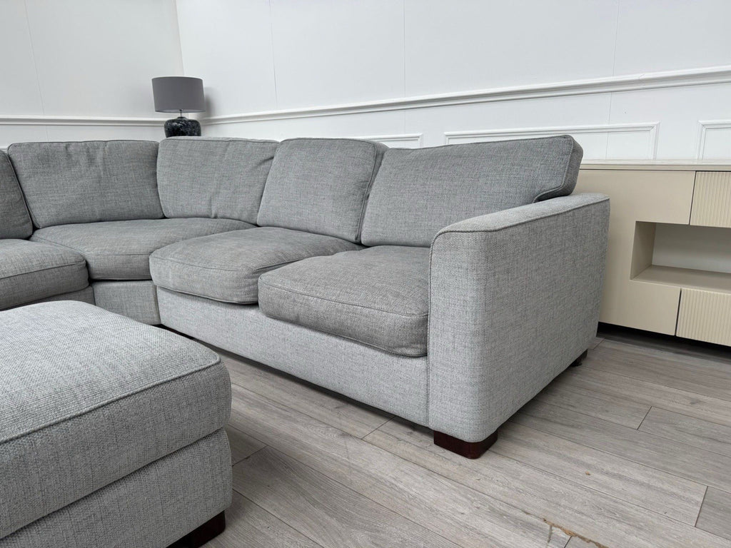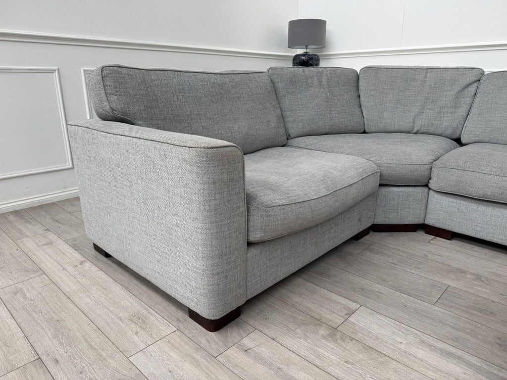 FURNITURE VILLAGE Elora Curved Corner Sofa Grey Fabric + Storage Footstool