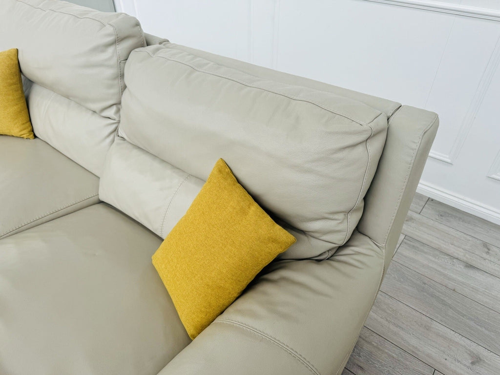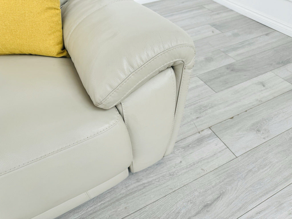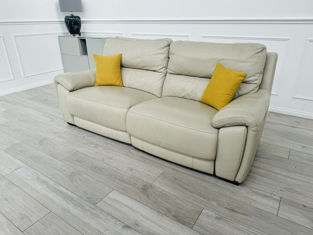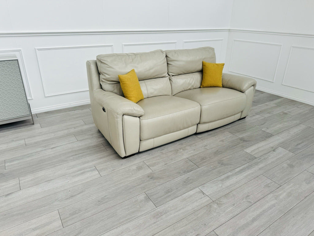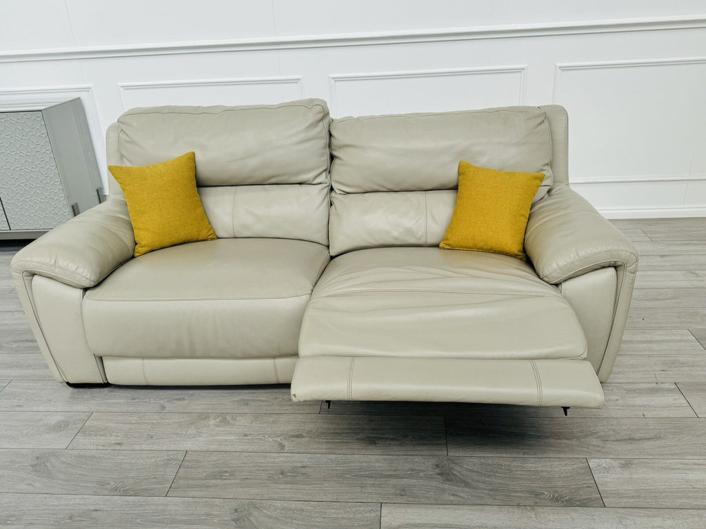 Furniture Village Feather Grey Leather Power Recliner 3 Seater Sofa