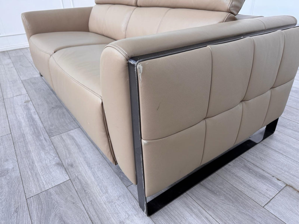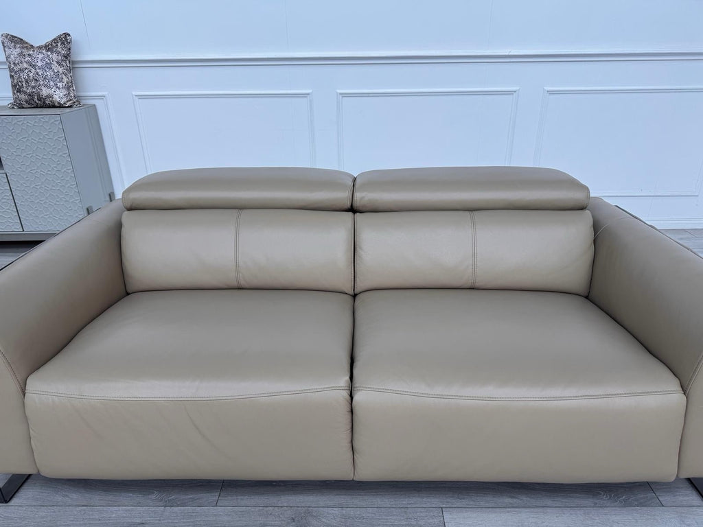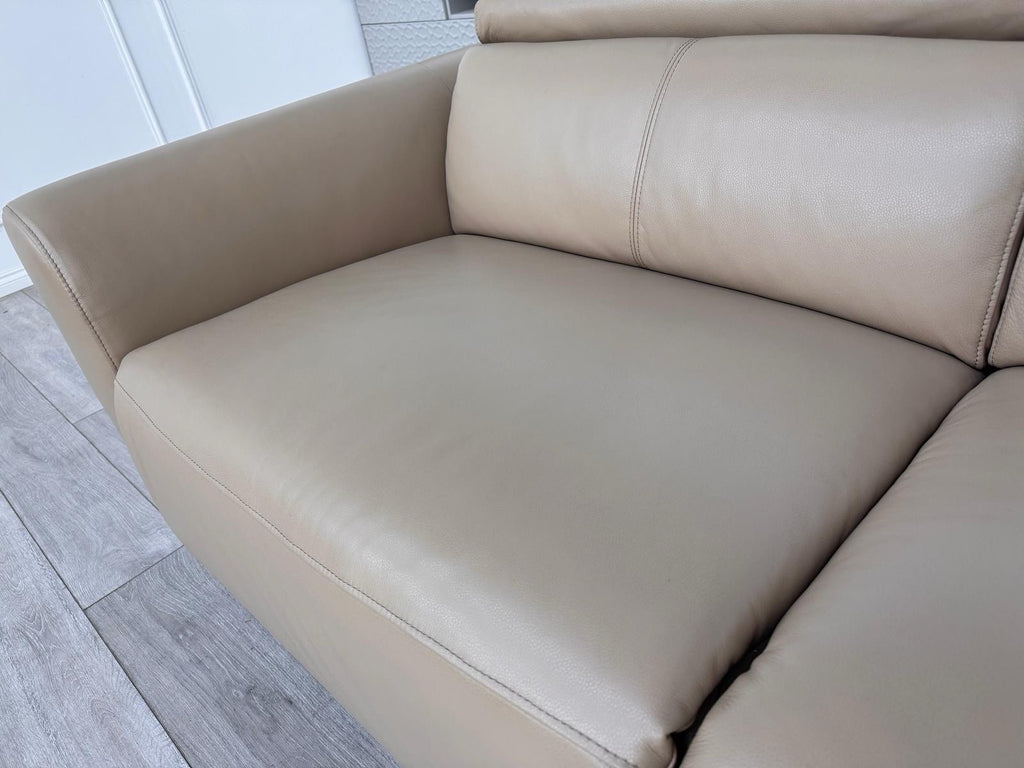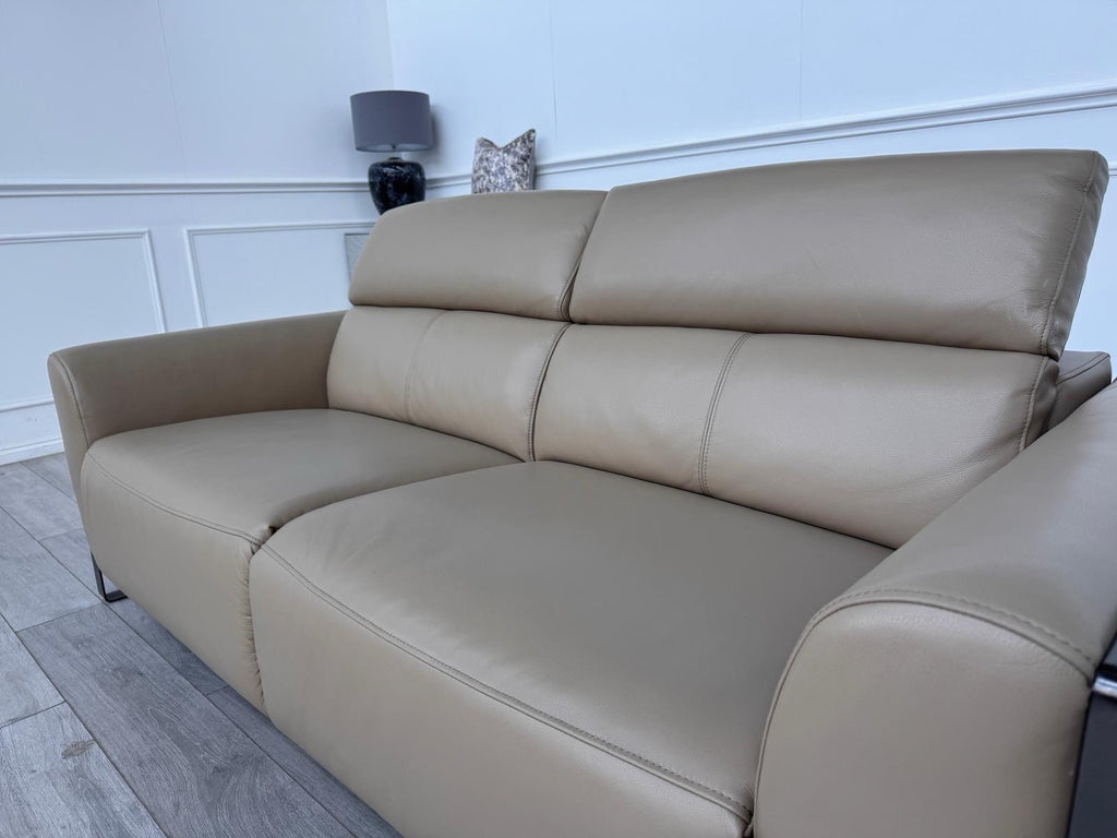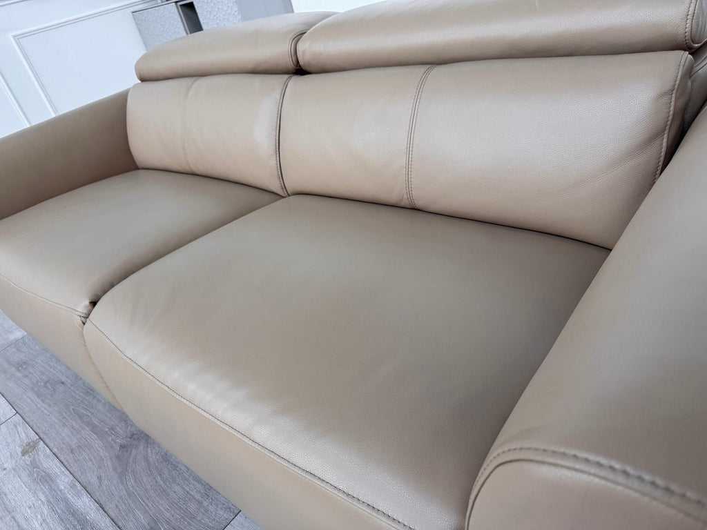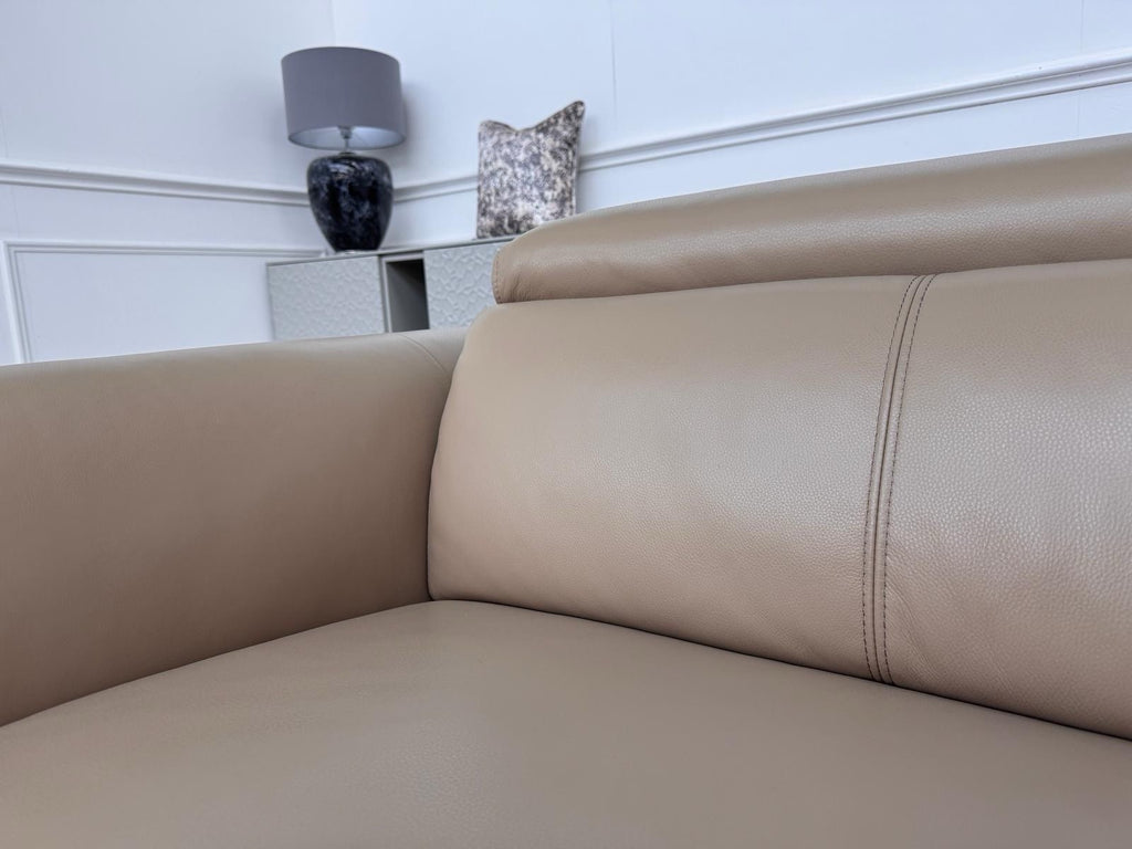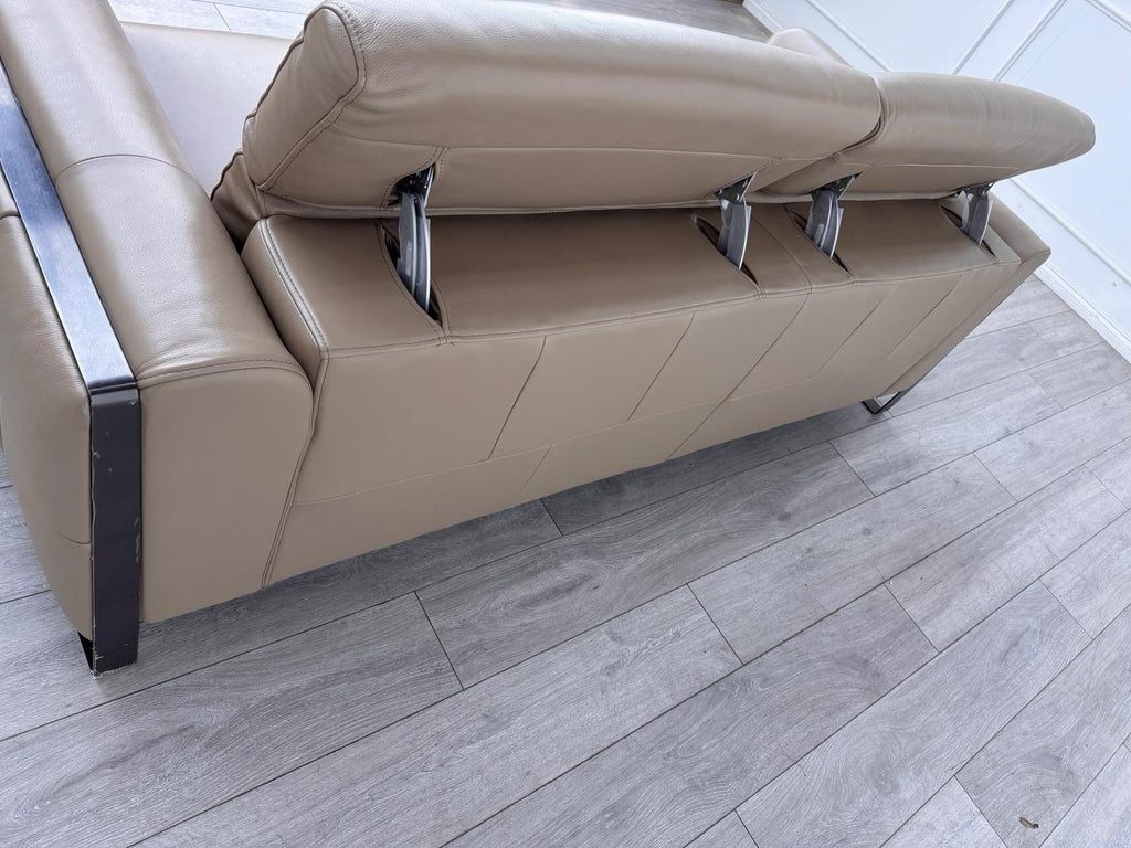 Furniture Village Gisella Taupe Leather 3 Seater Sofa Adjustable Headrests