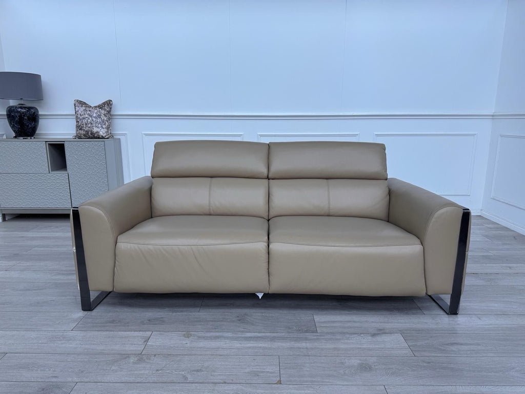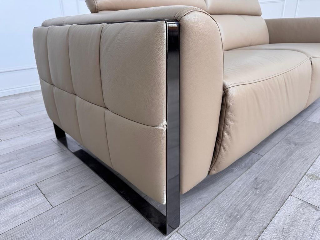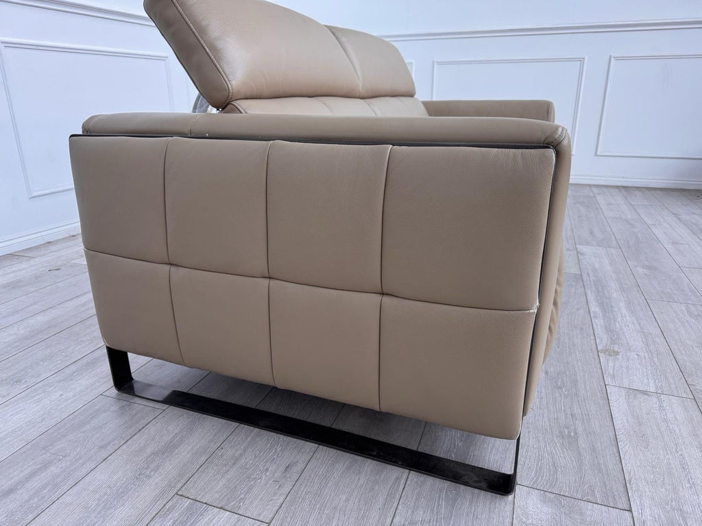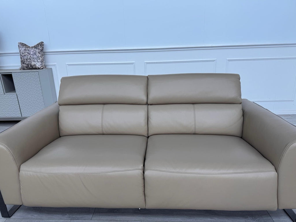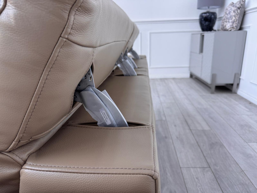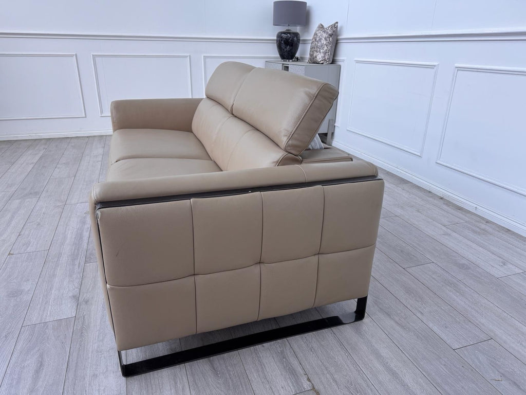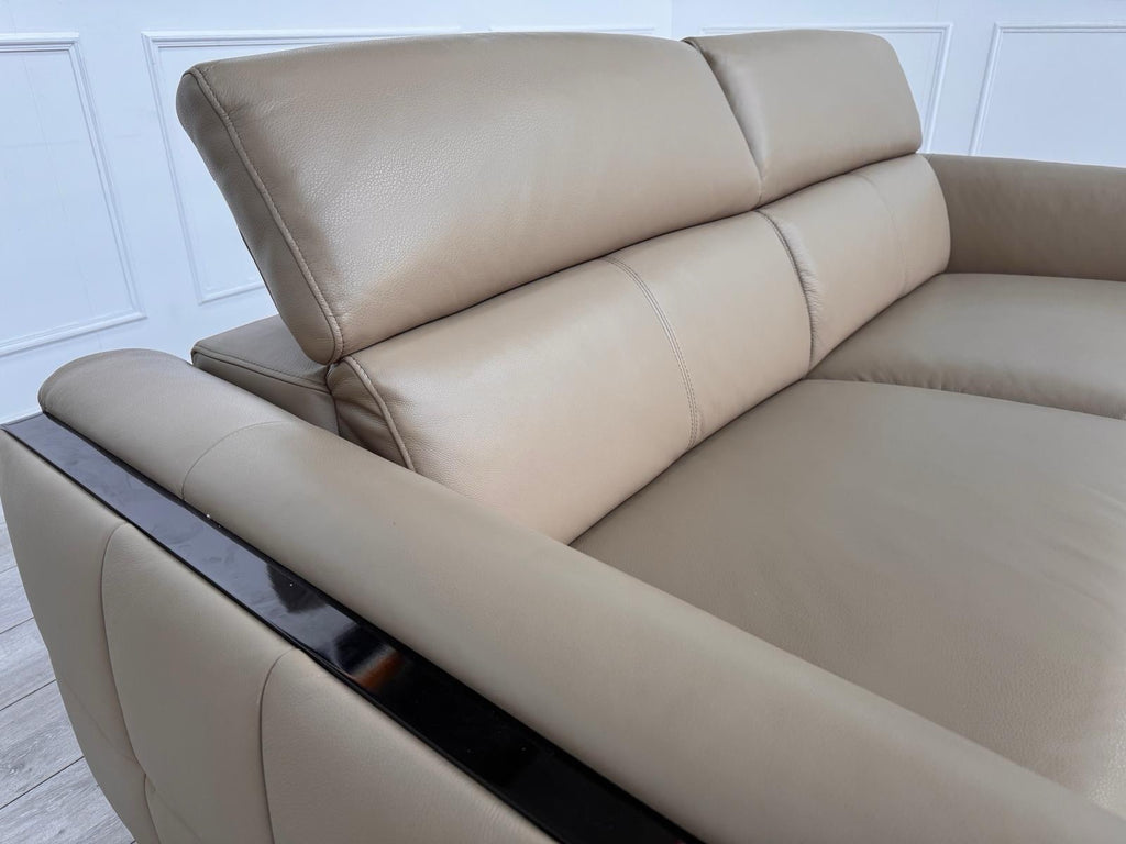 Furniture Village Gisella Taupe Leather 3 Seater Sofa Adjustable Headrests