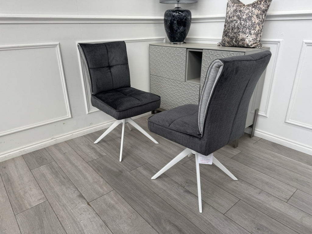 Furniture Village Glacier Pair Of 2 Swivel Dining Chairs Dark Grey Fabric