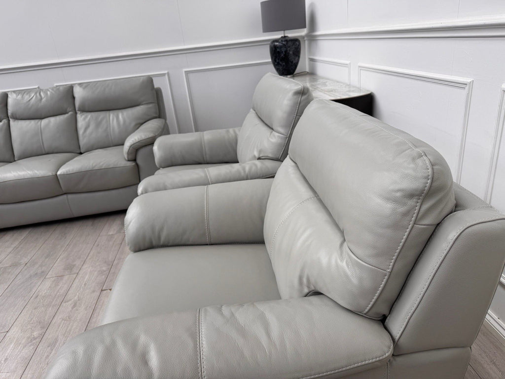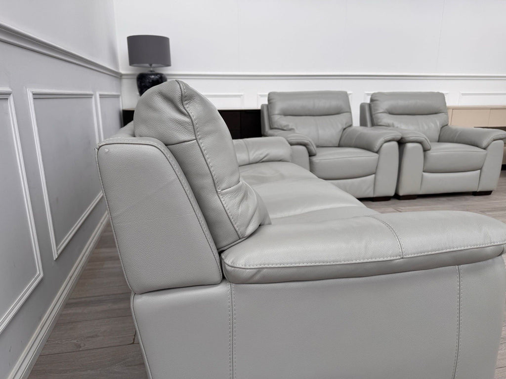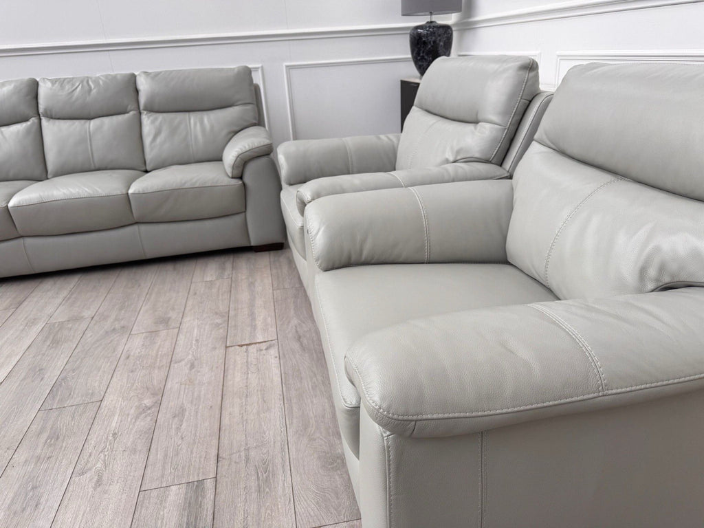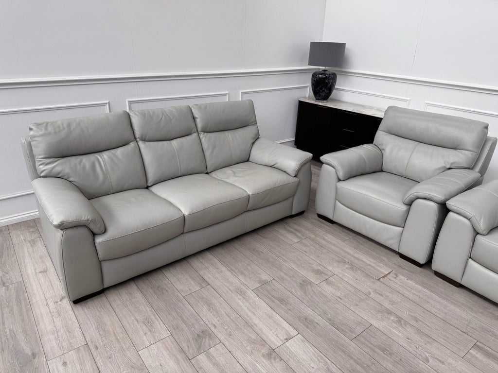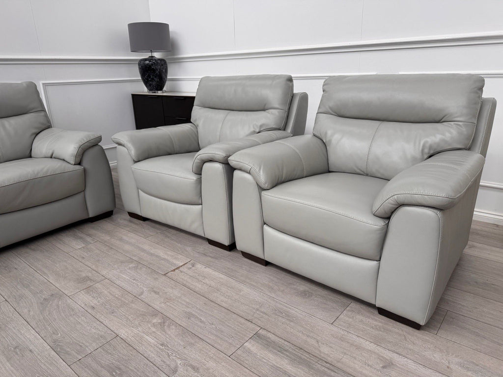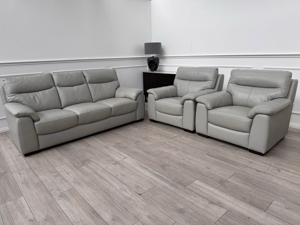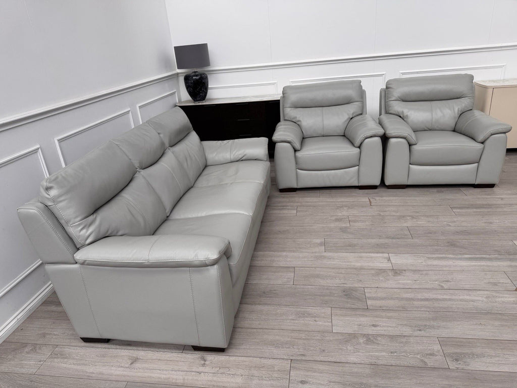 Furniture Village Grey Genuine Leather Sofa 3 Seater Sofa + 2x Armchairs Set