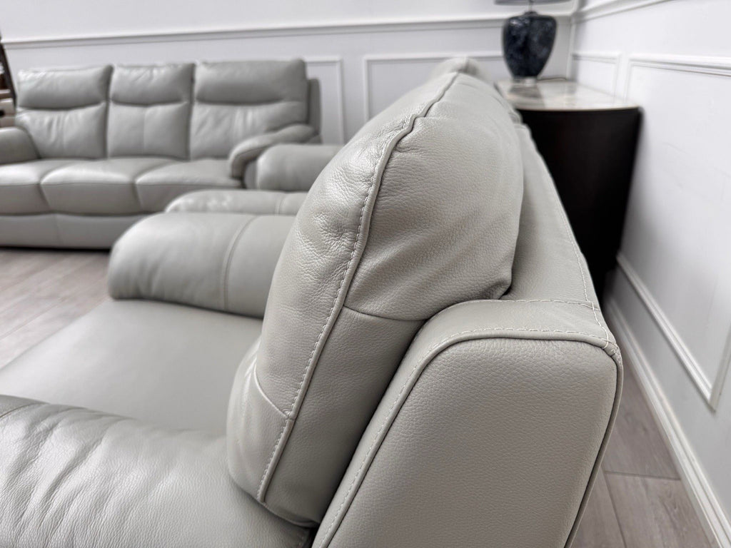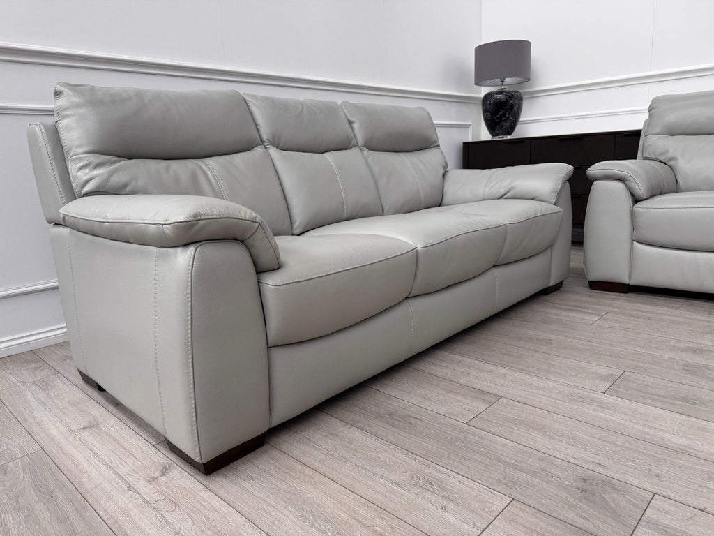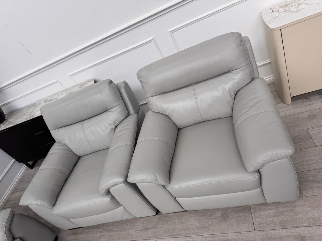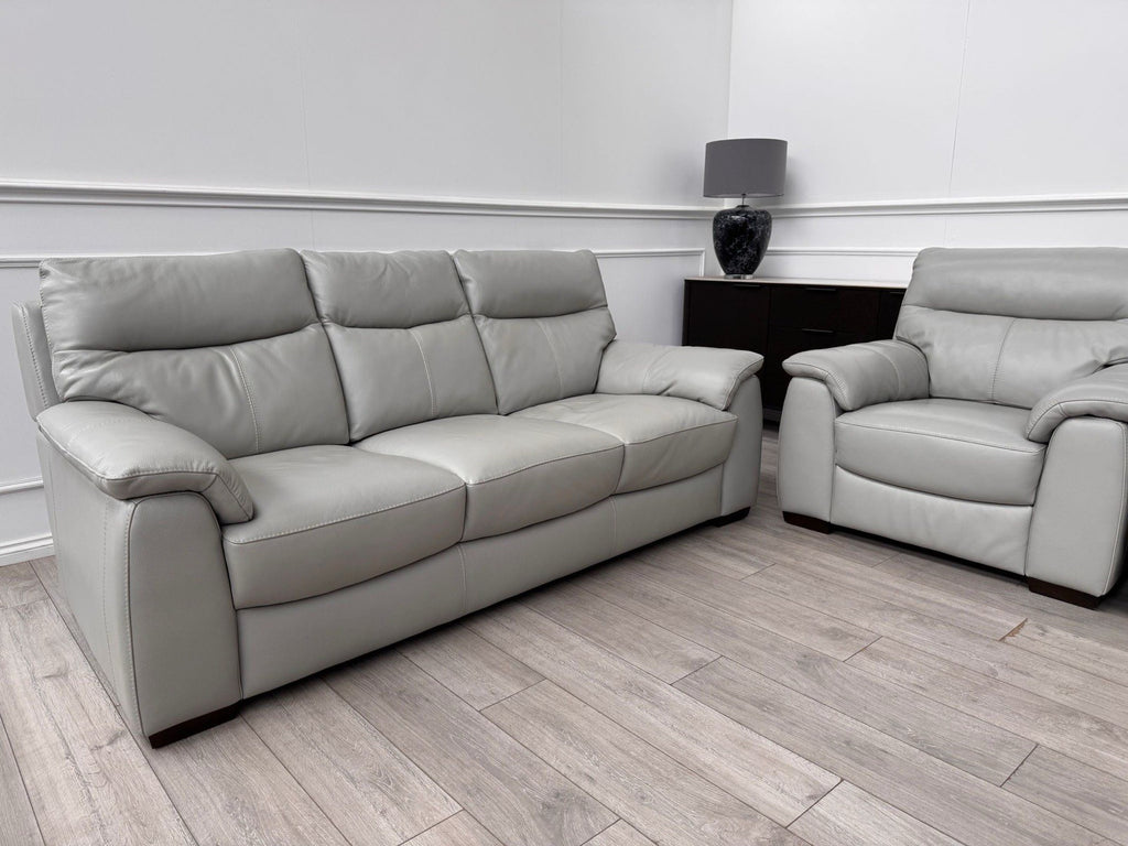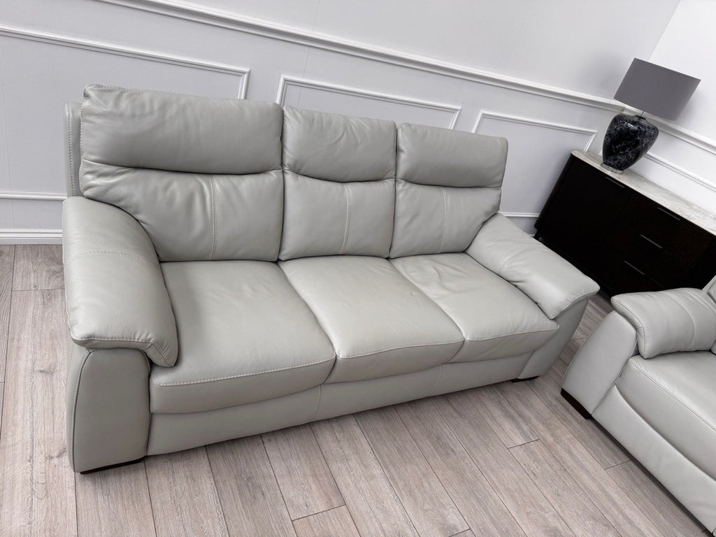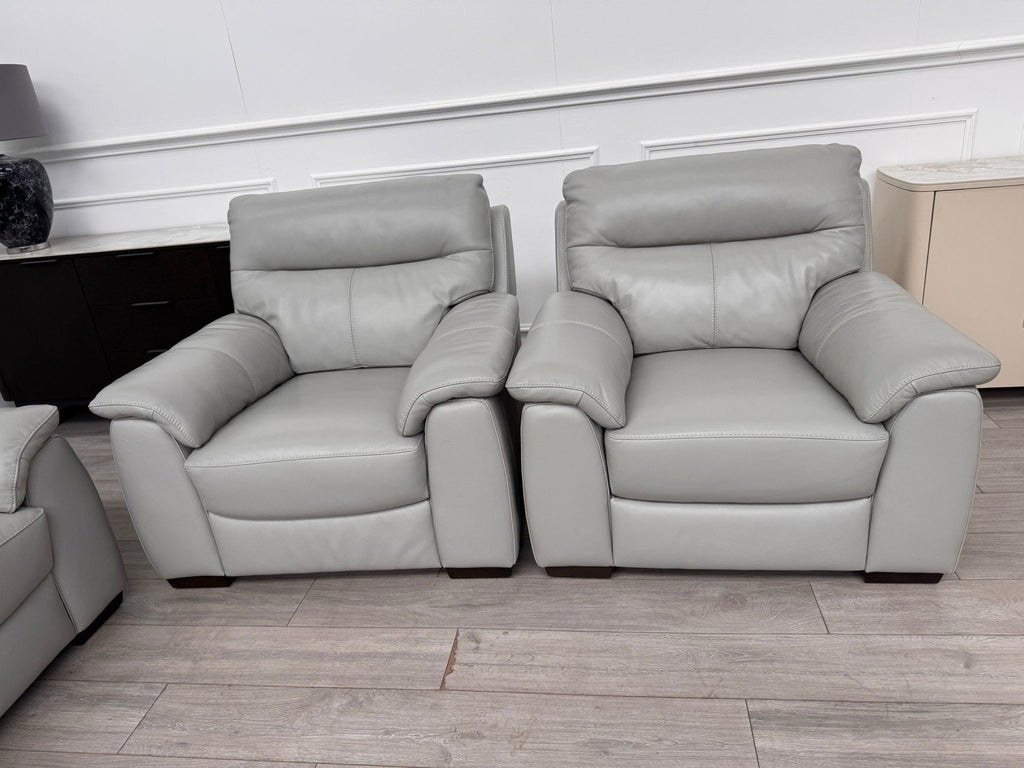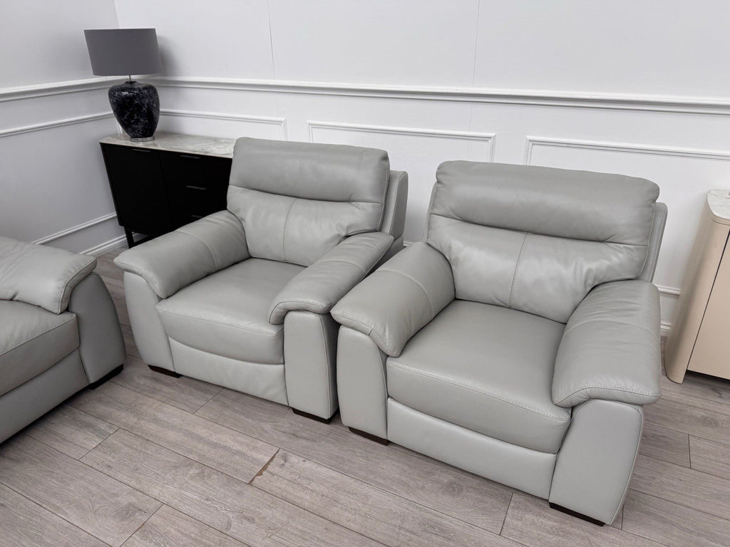 Furniture Village Grey Genuine Leather Sofa 3 Seater Sofa + 2x Armchairs Set