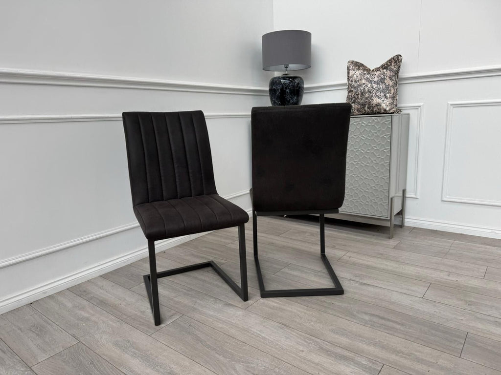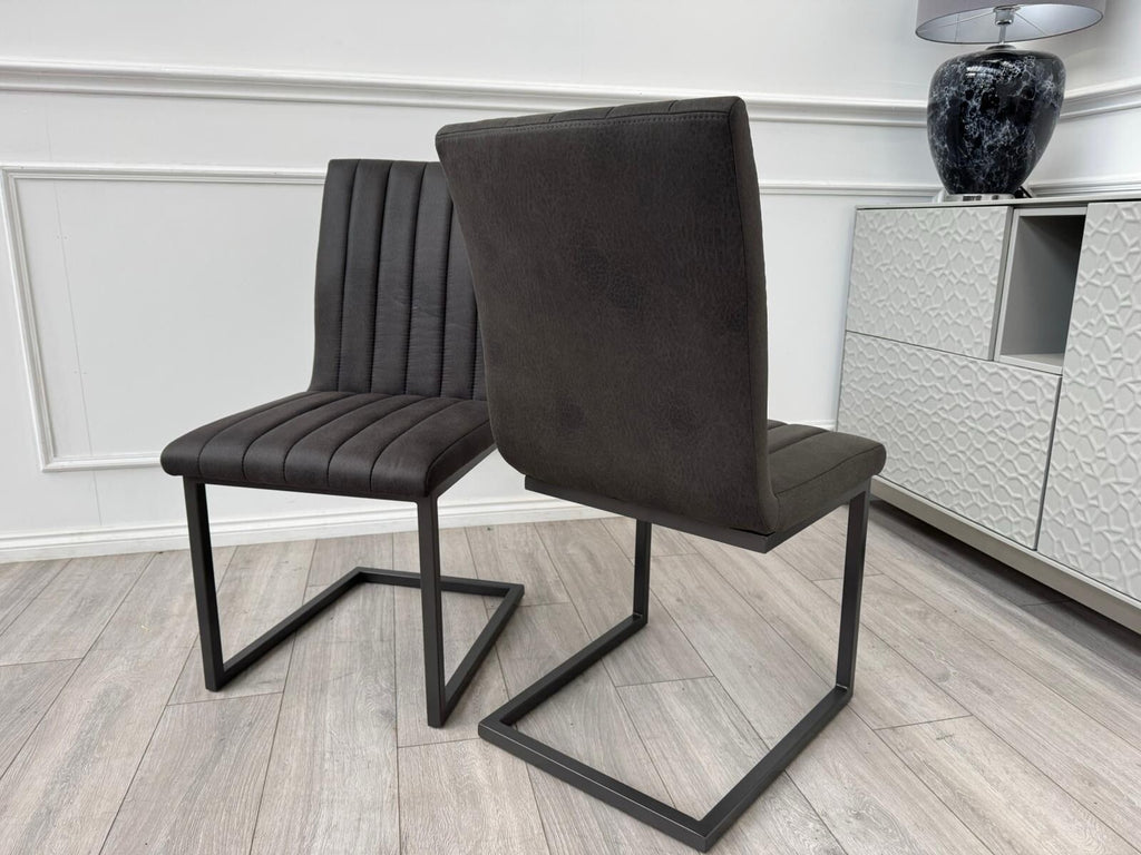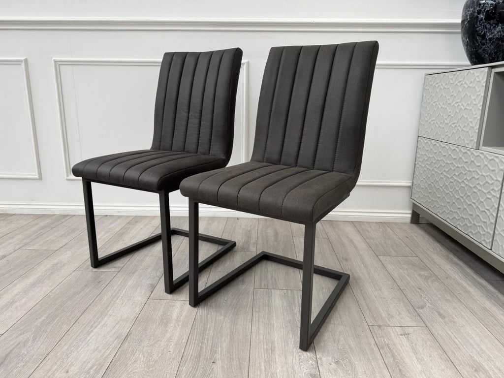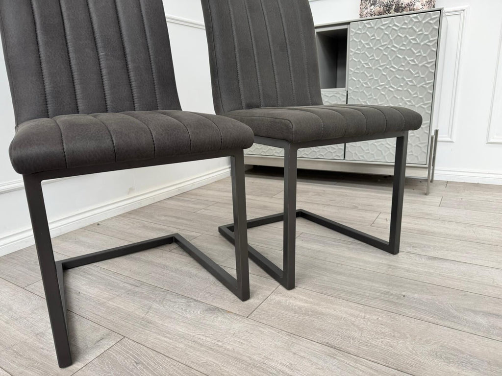 Furniture Village Grigio Pair of Charcoal Grey Suede Dining Chairs