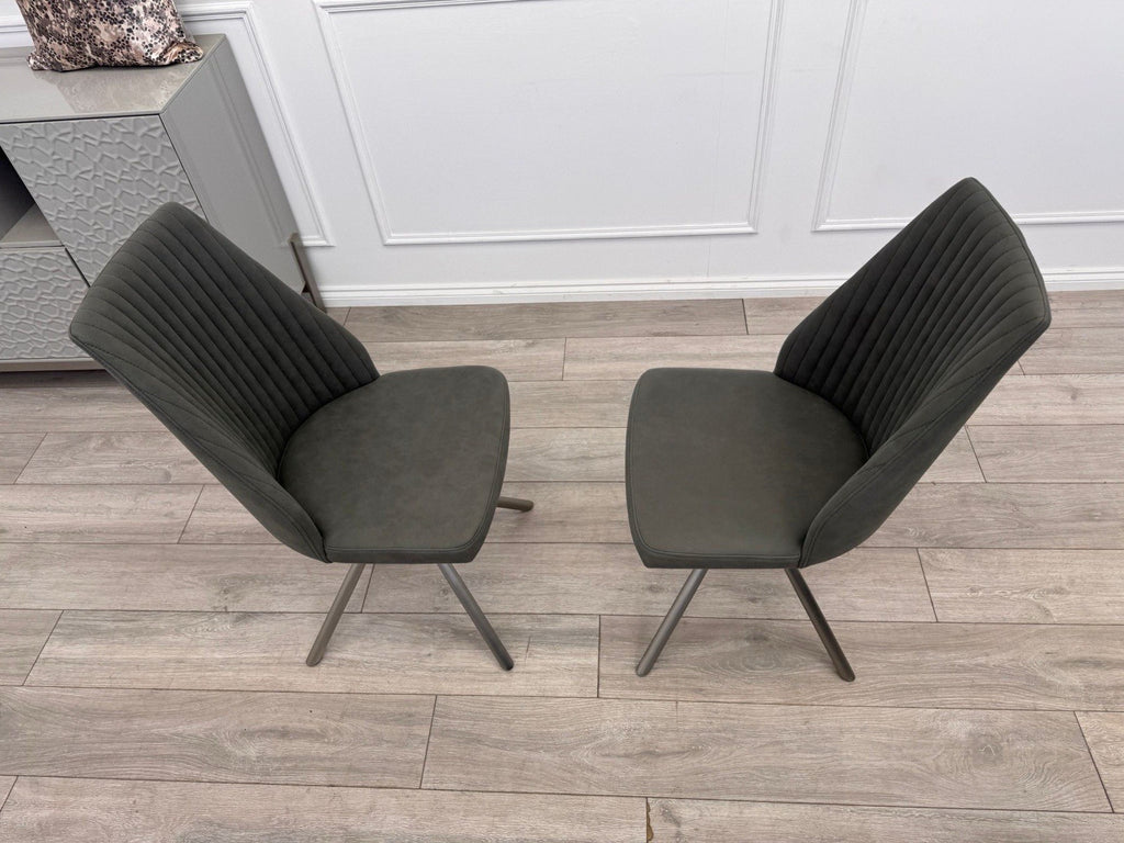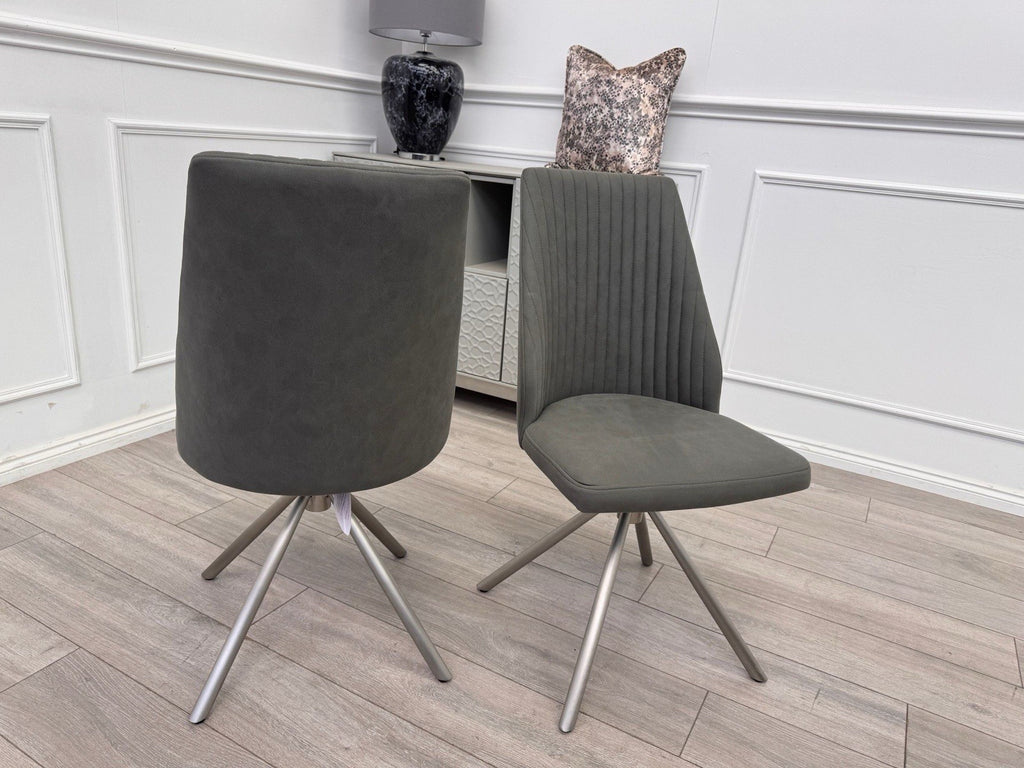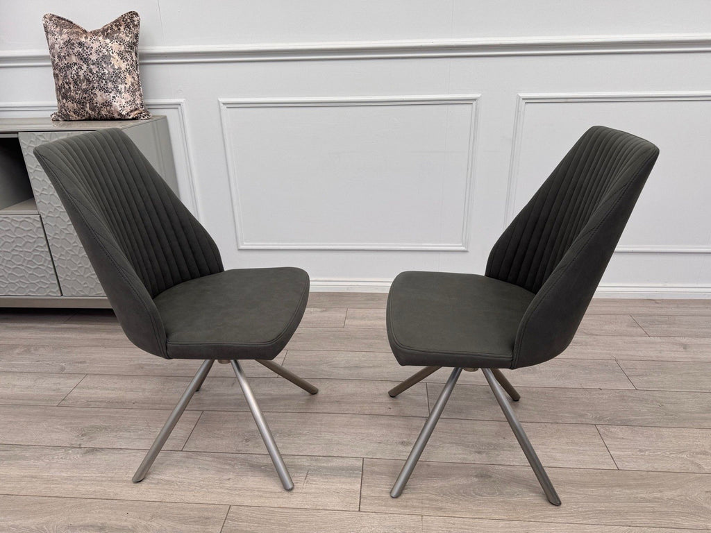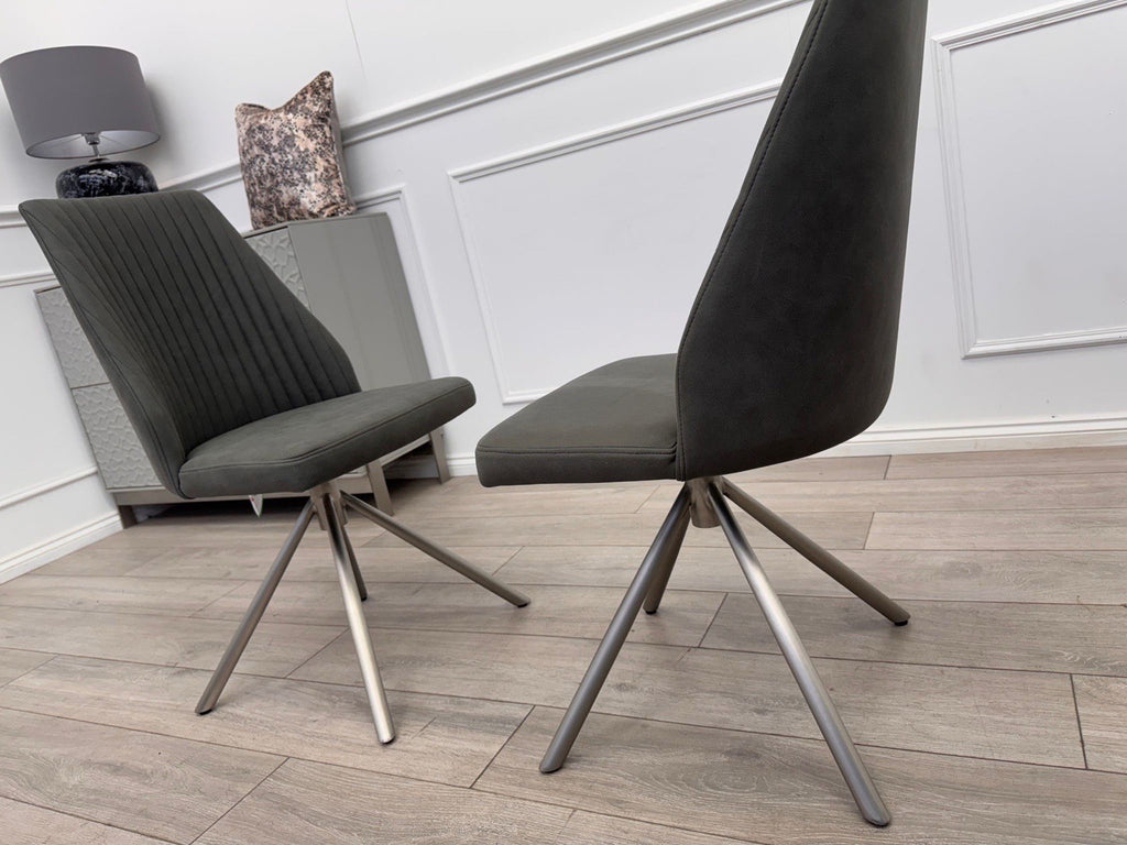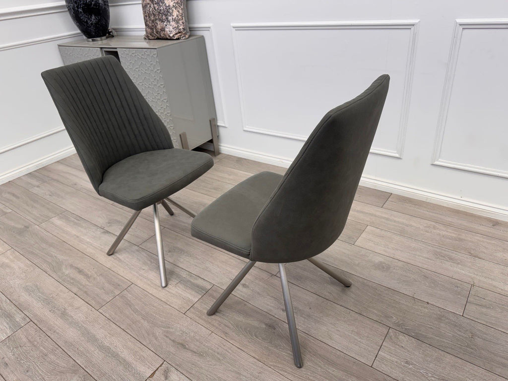Furniture Village Grigio Pair of Grey Suede Swivel Dining Chairs