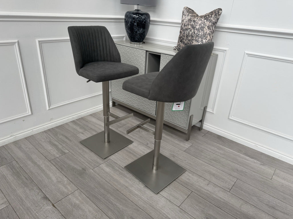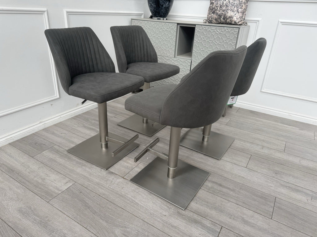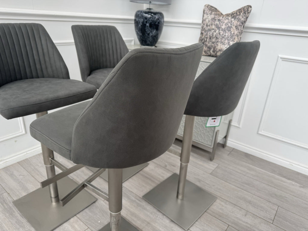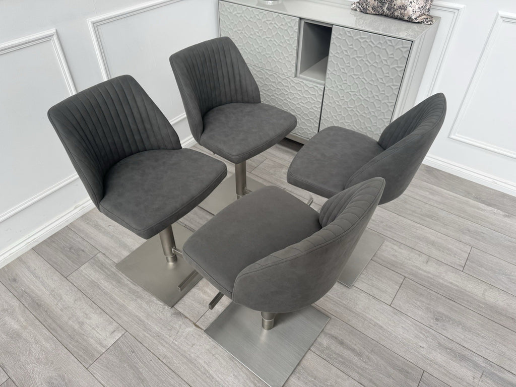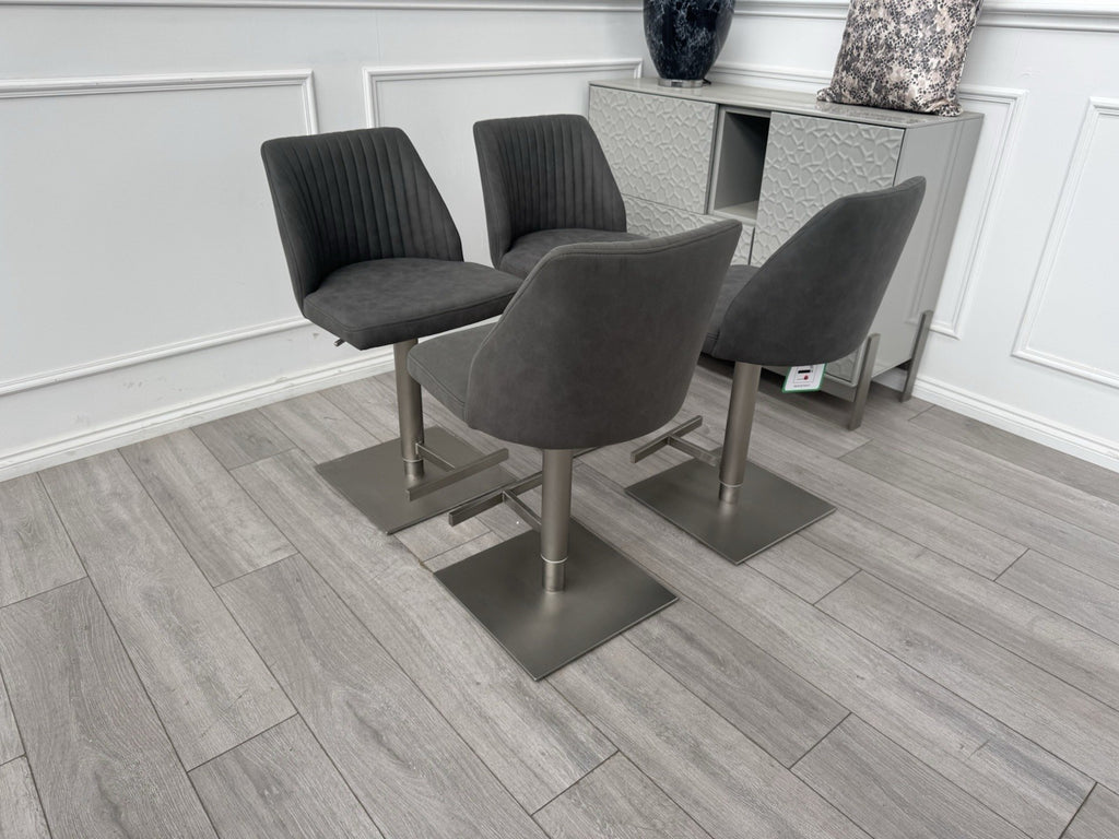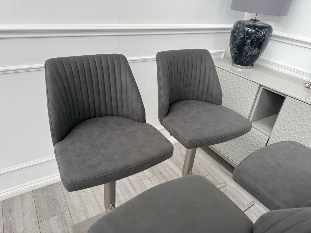 Furniture Village Grigio Set Of 4 Grey Suede Swivel Barstools Chairs