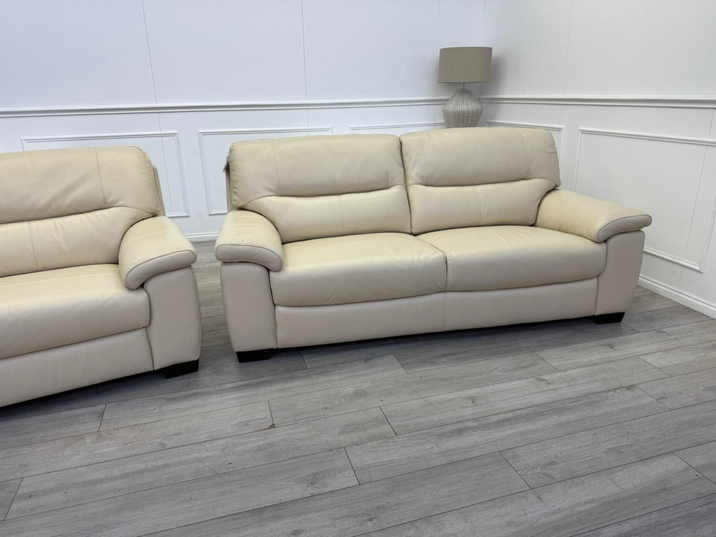 Furniture Village Hetty 3 + 3 Seater Sofa Set in Cream/Off White Leather