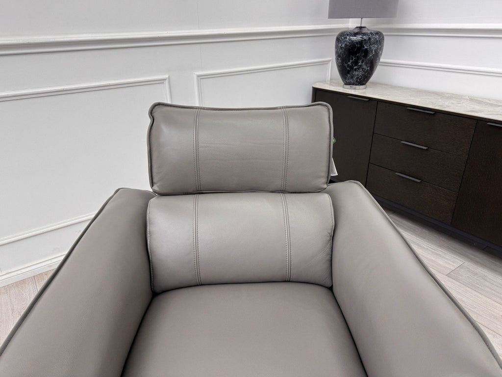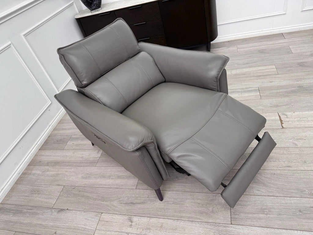 Furniture Village Jude Grey Leather Armchair Power Recliner Telescopic Headrest