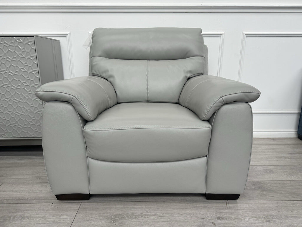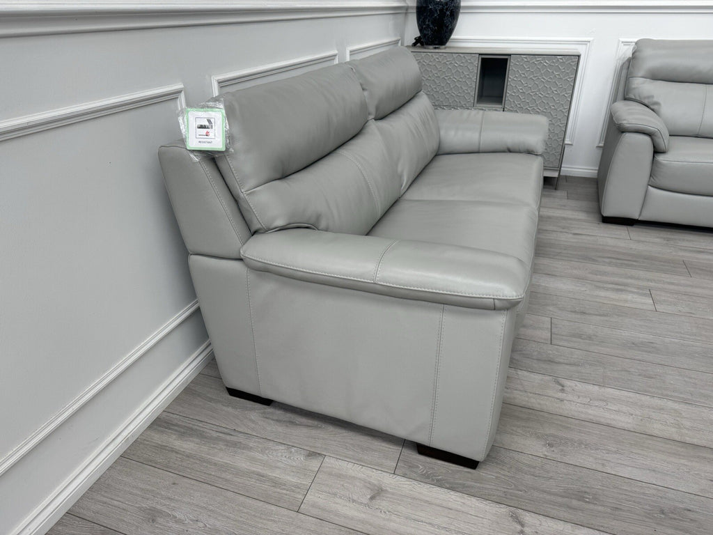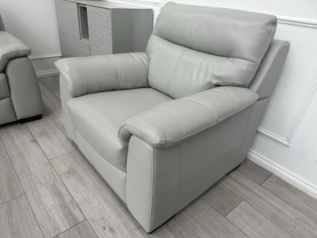 Furniture Village Light Grey Leather Sofa 3 Seater & Armchair Sofa Set