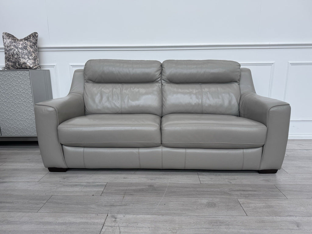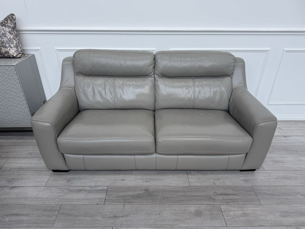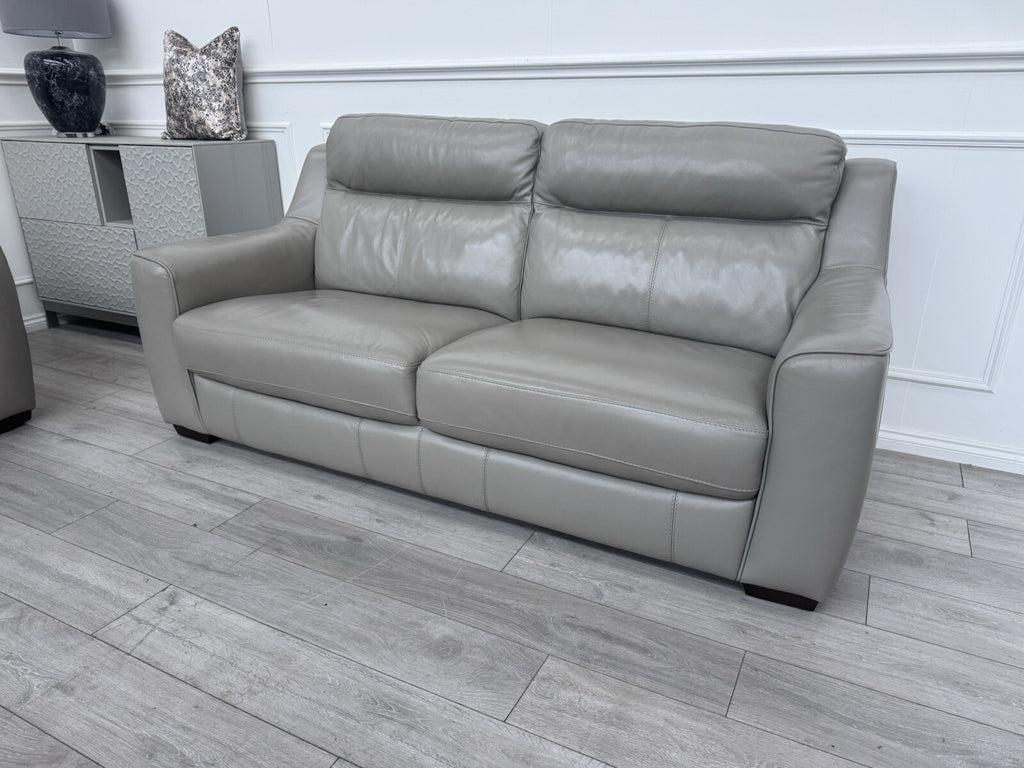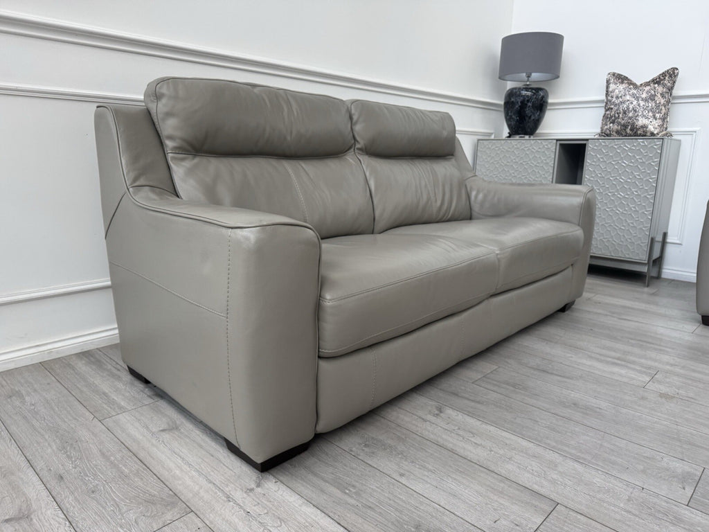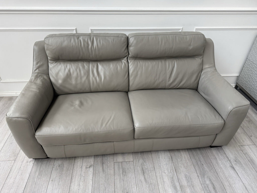 FURNITURE VILLAGE Light Taupe/Grey Genuine Leather Static 3 + 3 Seater Sofa Set