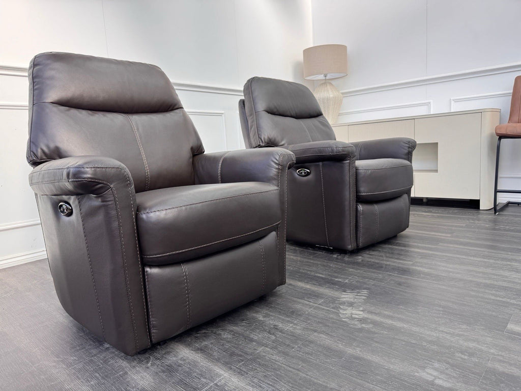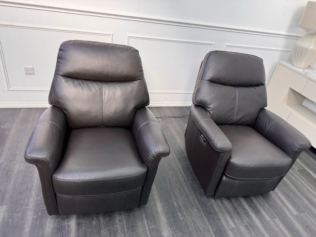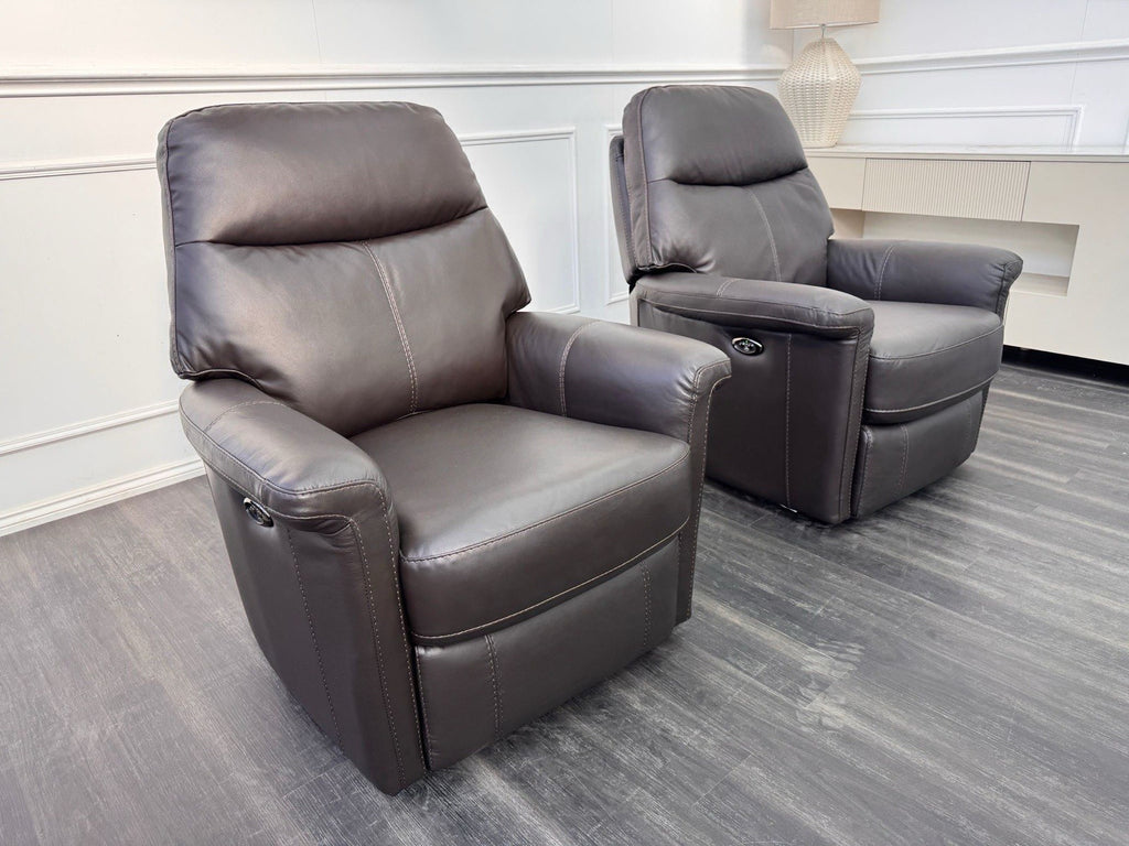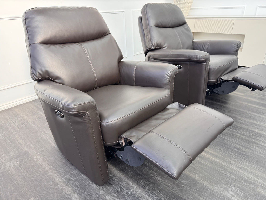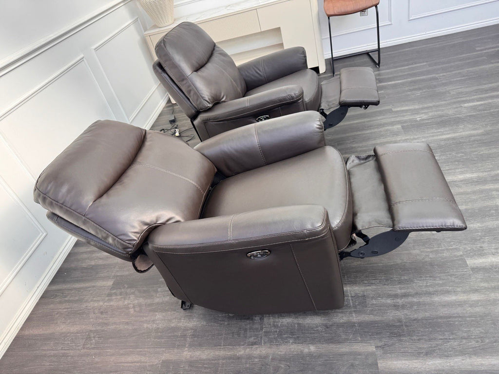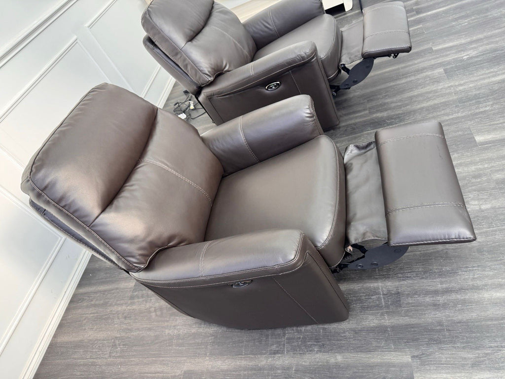 Furniture Village Lille Dark Brown Leather Pair Of Armchairs Power Recliner