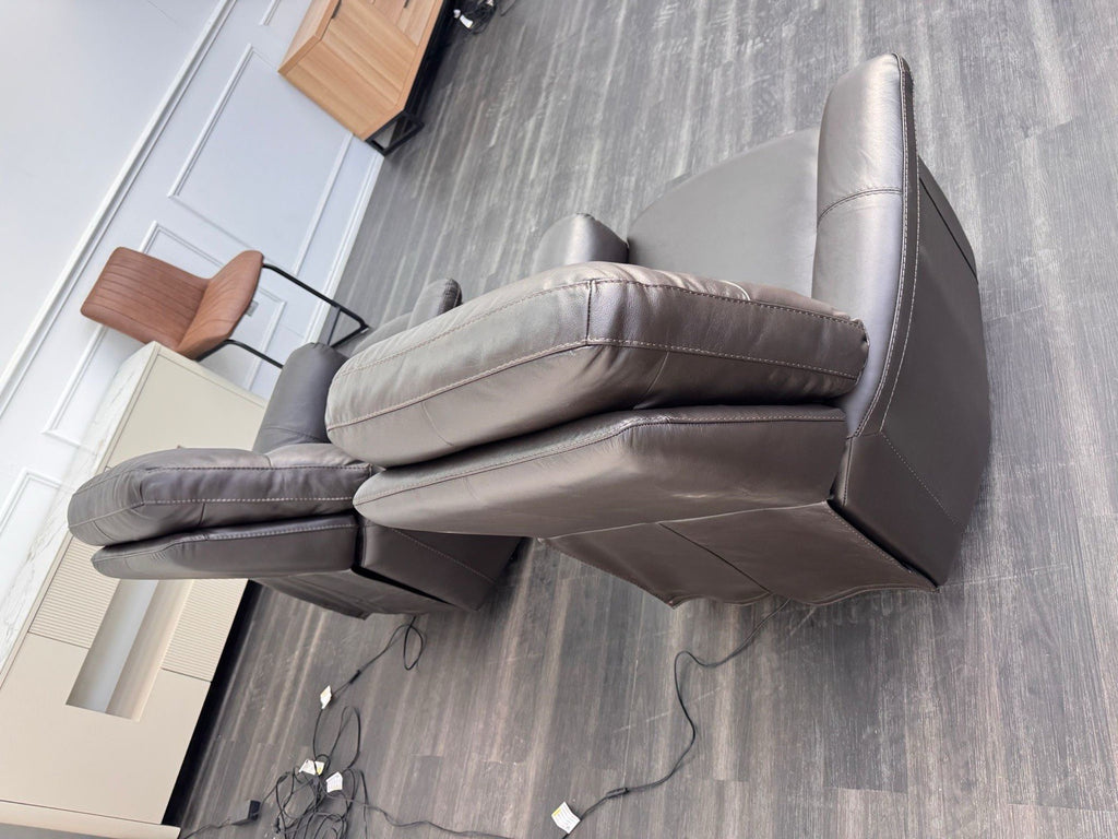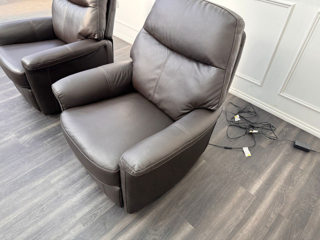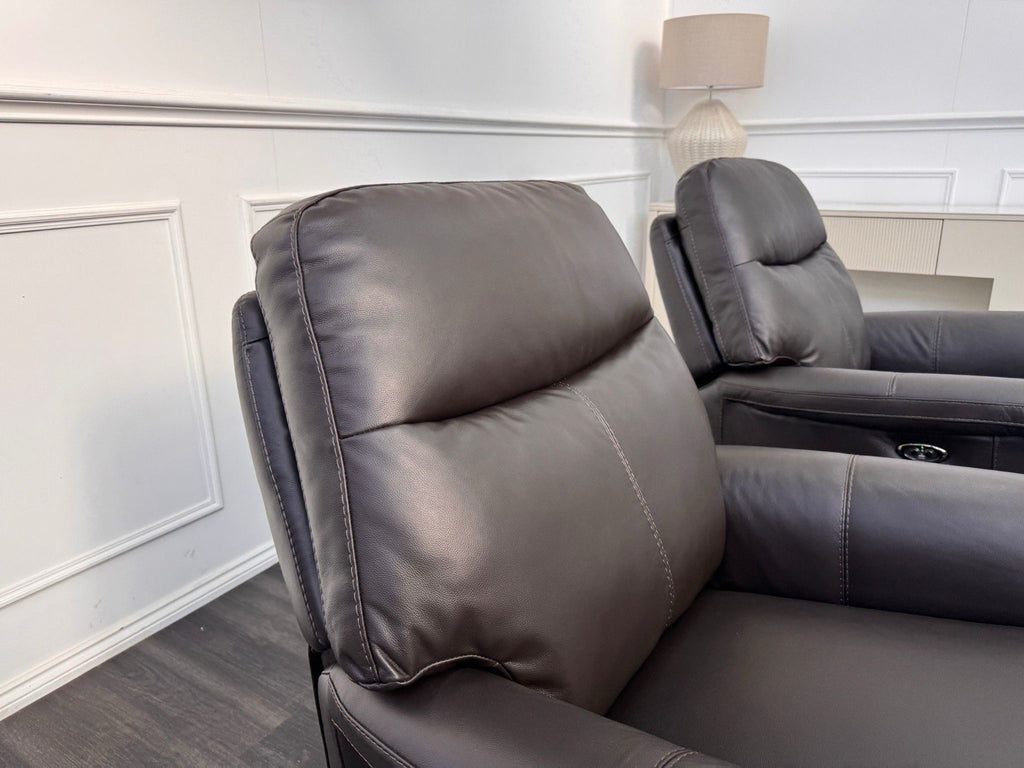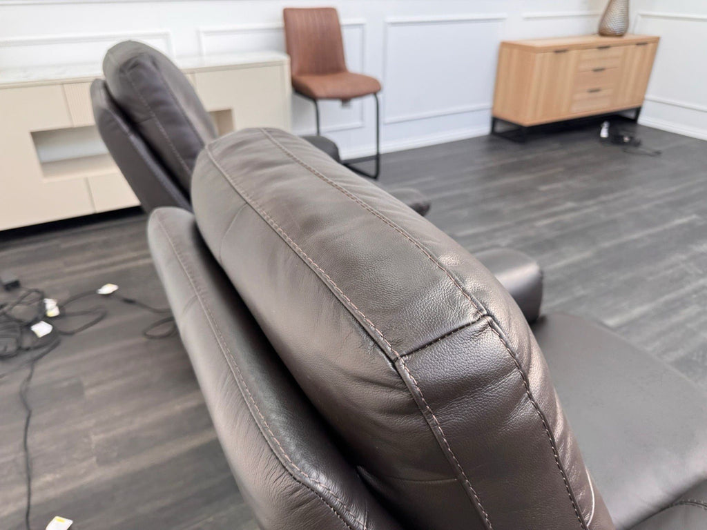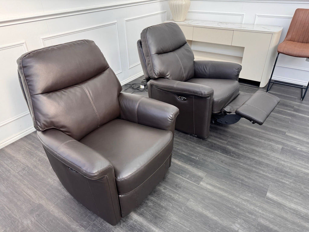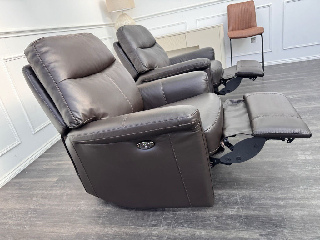 Furniture Village Lille Dark Brown Leather Pair Of Armchairs Power Recliner