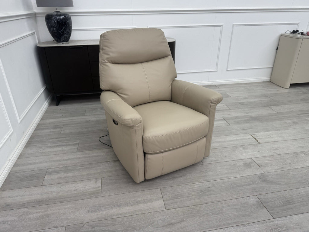 Furniture Village Lille Pebble Leather Armchair Power Recliner+Swivel+Rocking