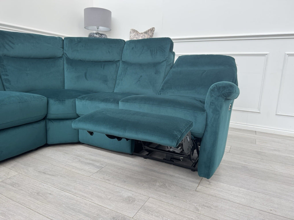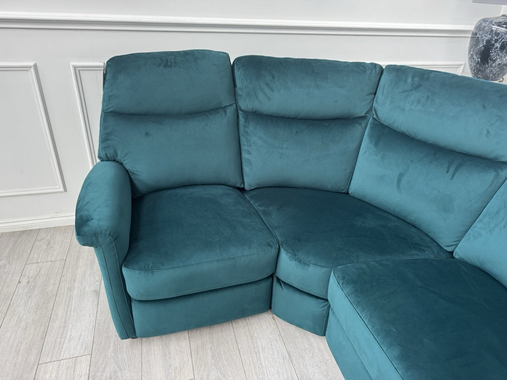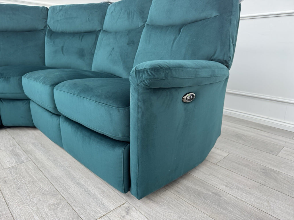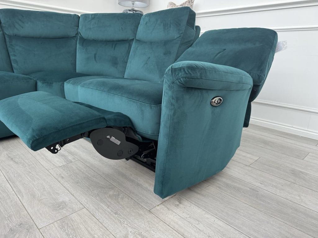 Furniture Village Lillie 1 x Power Reclining Corner Sofa In Lake Green Velvet