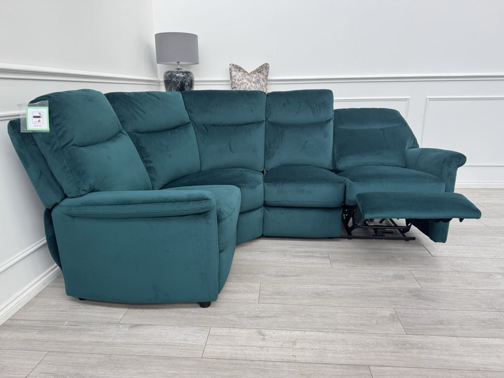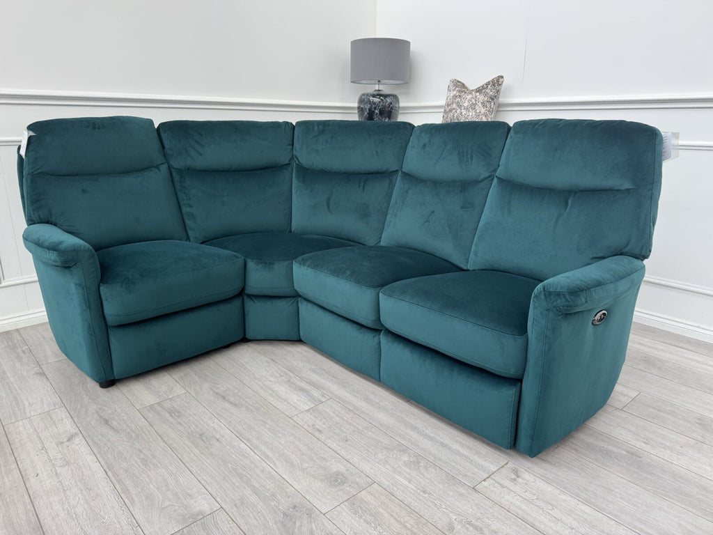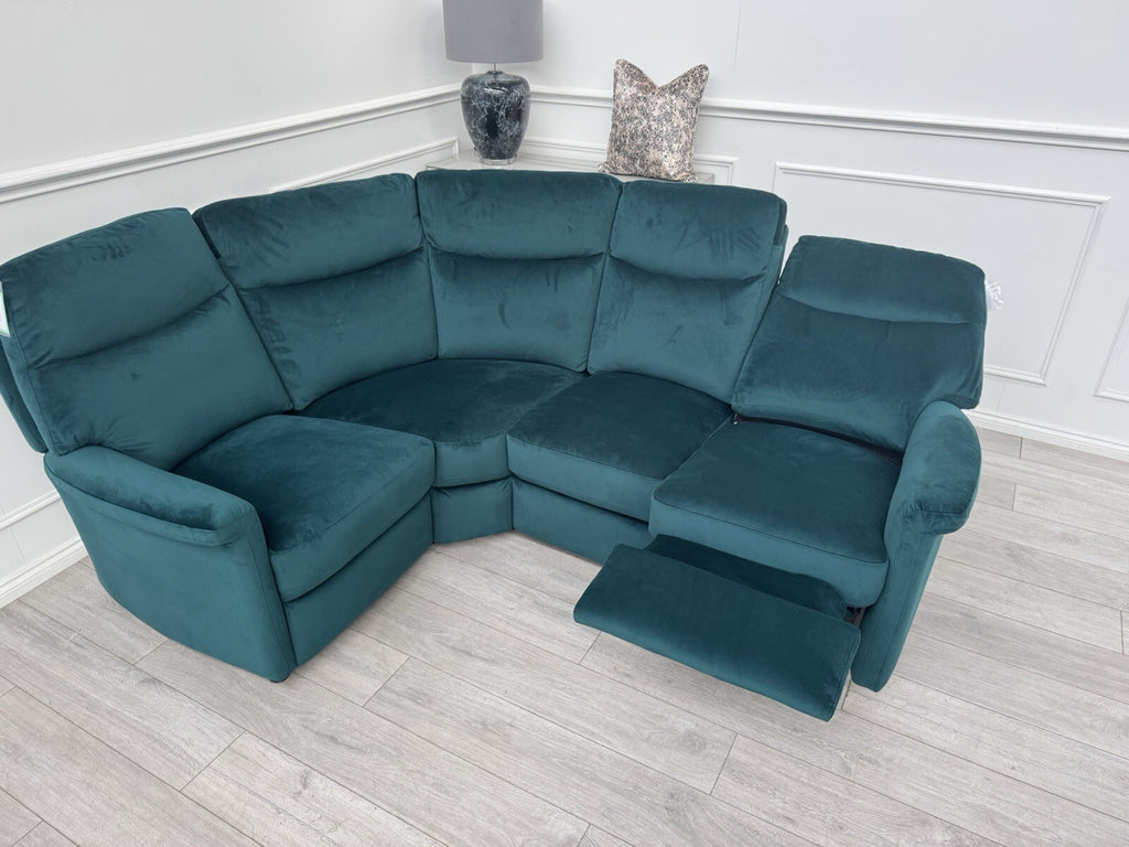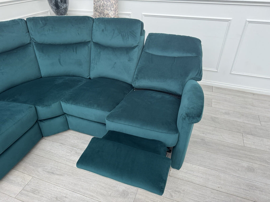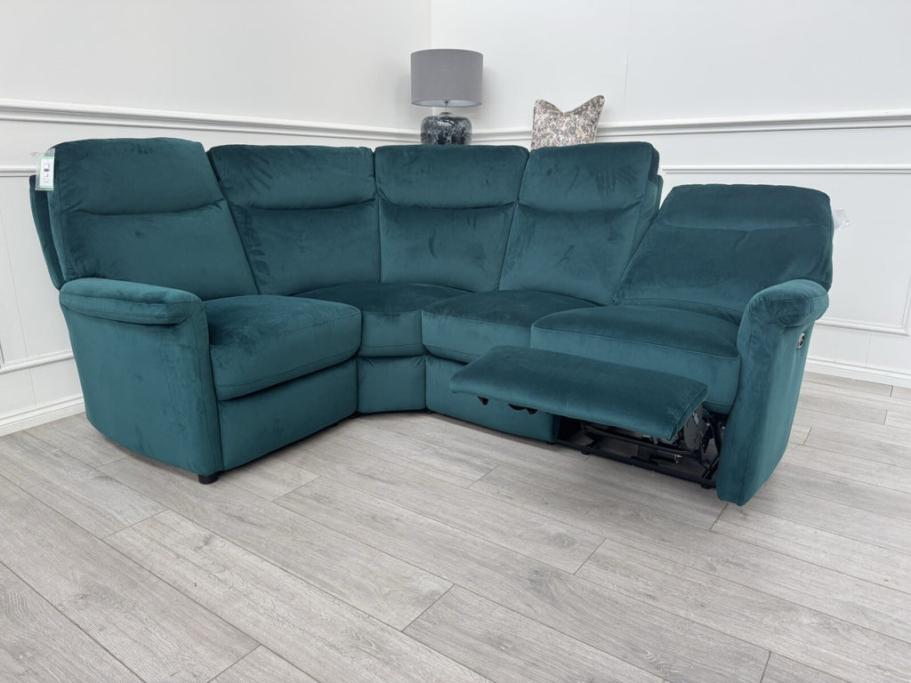 Furniture Village Lillie 1 x Power Reclining Corner Sofa In Lake Green Velvet