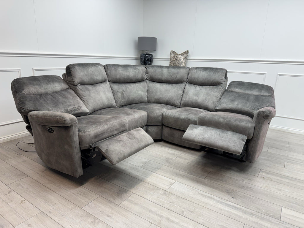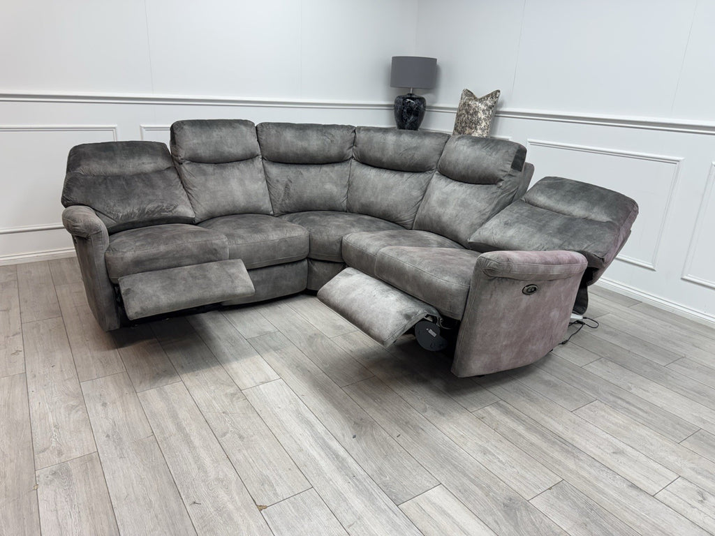 Furniture Village Lilly Corner Sofa In Grey Velvet Power Recliner