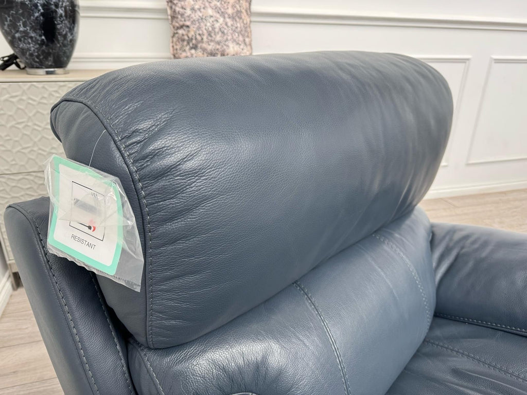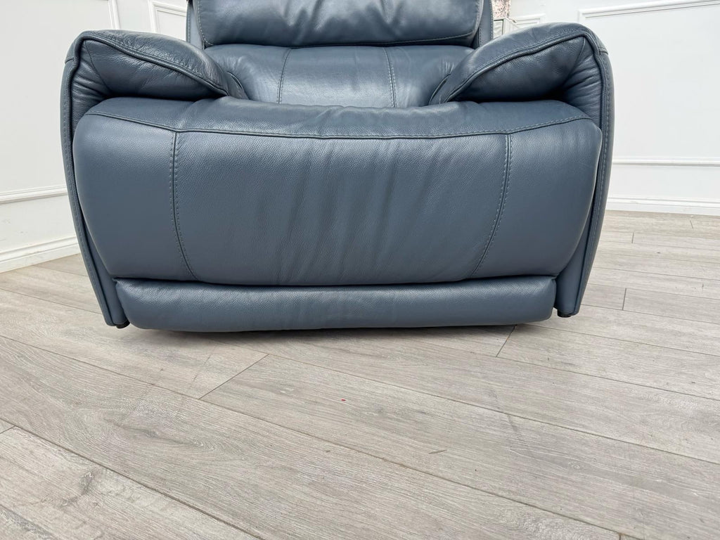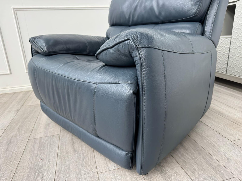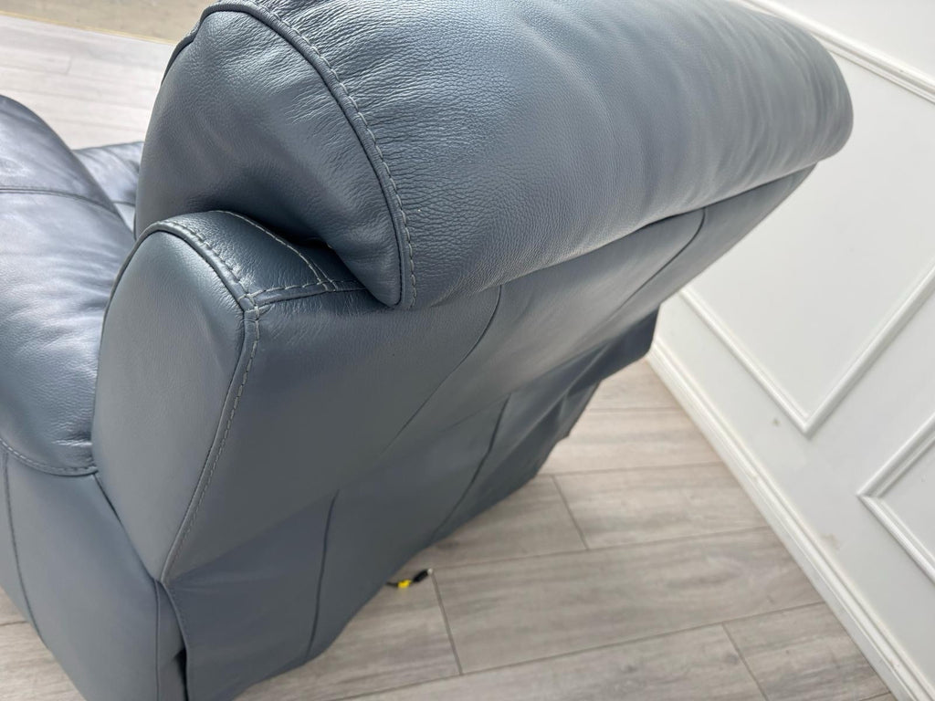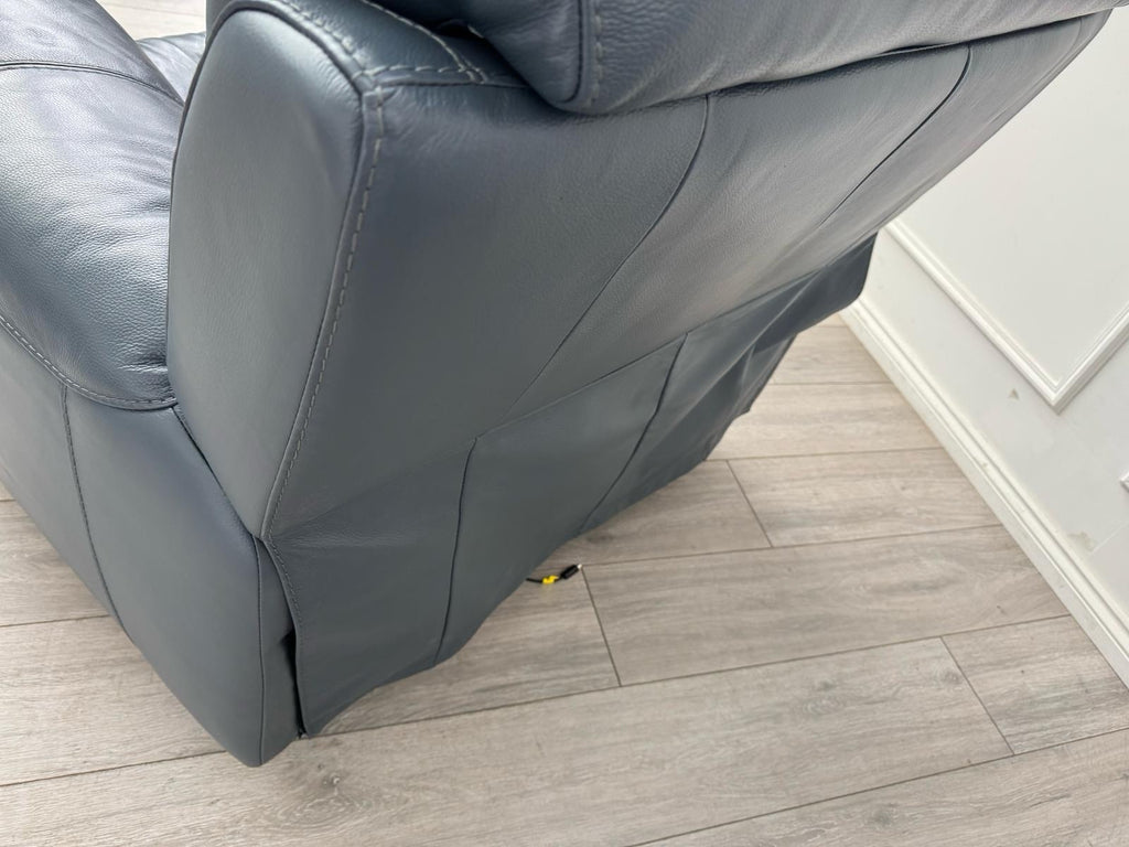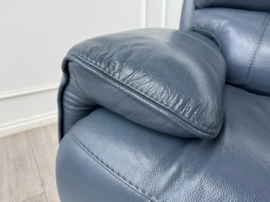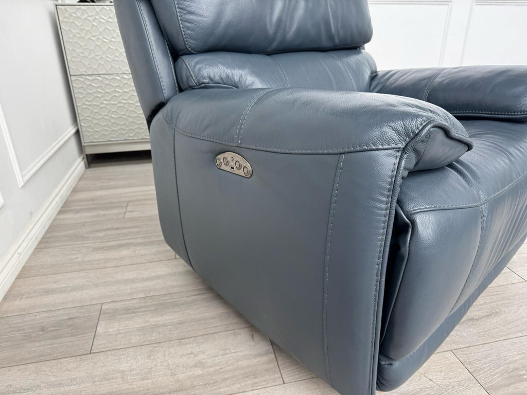 Furniture Village Link Blue Leather Power Recliner Armchair + Headrest + Rocking