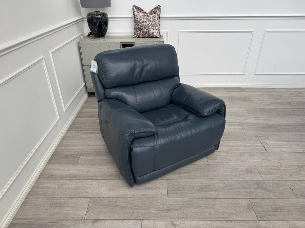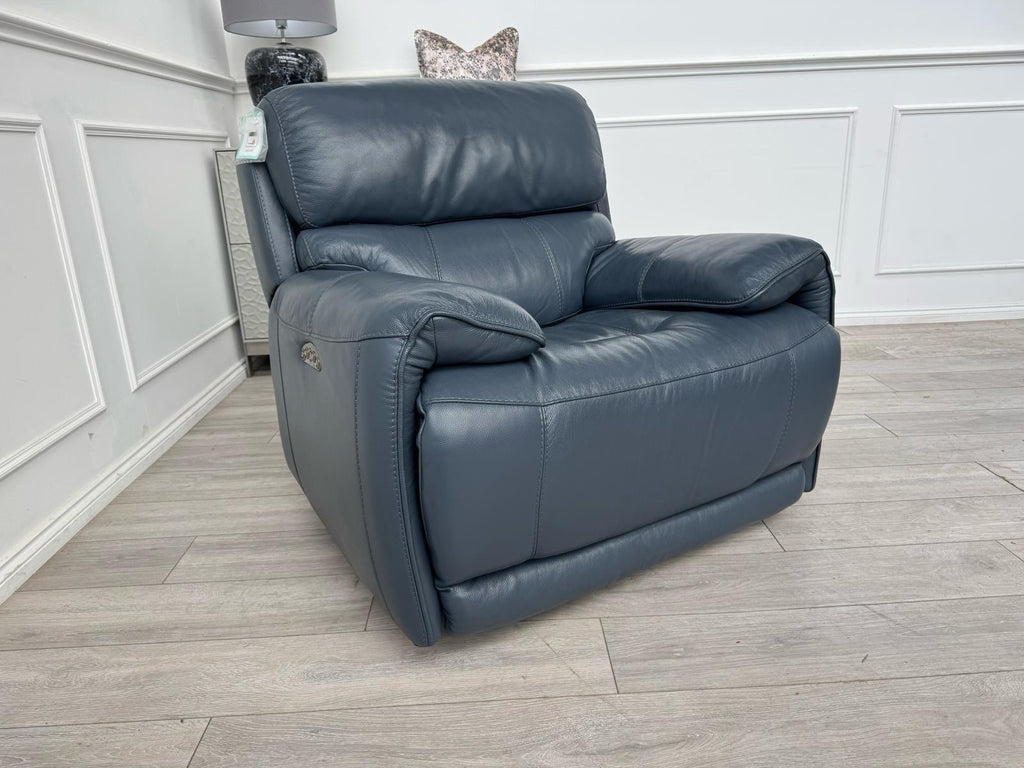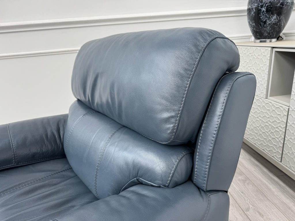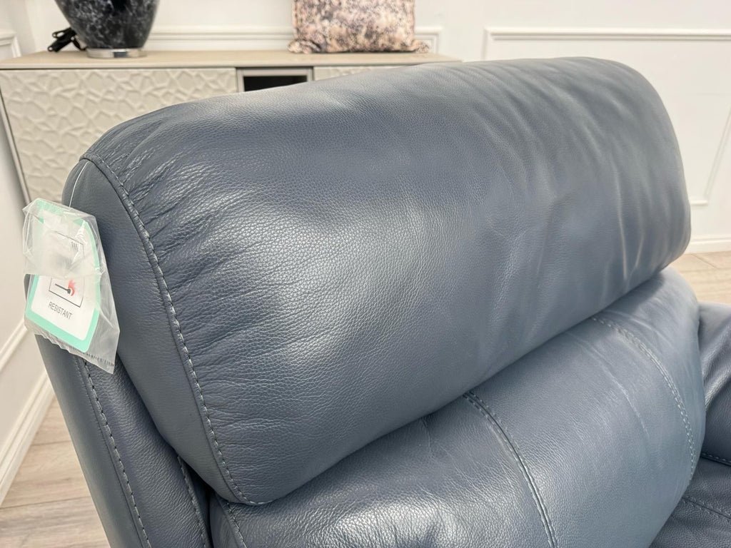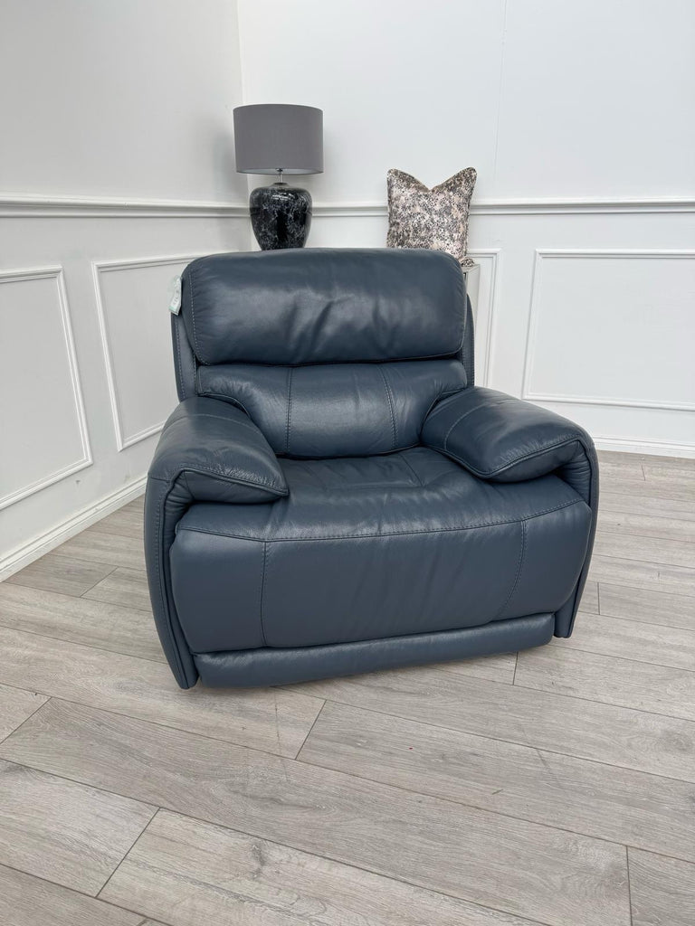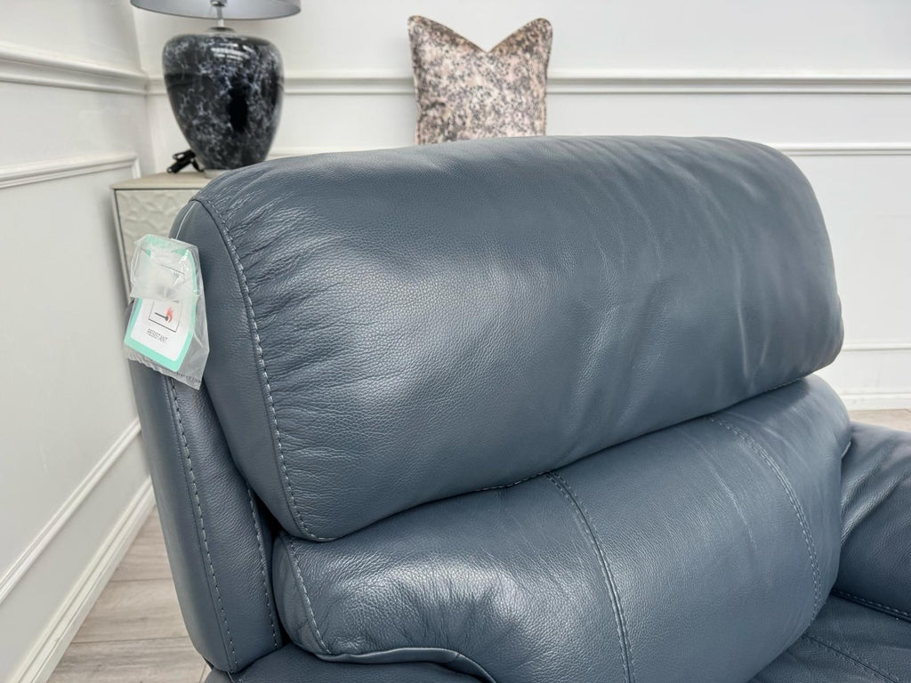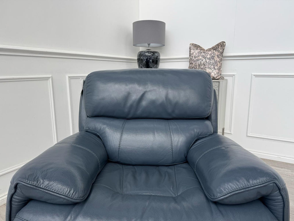 Furniture Village Link Blue Leather Power Recliner Armchair + Headrest + Rocking