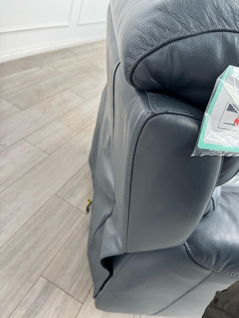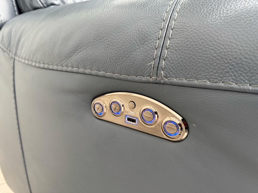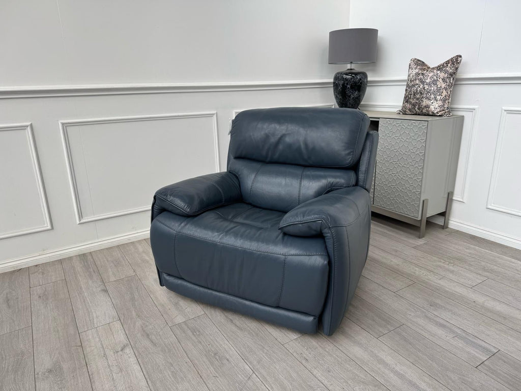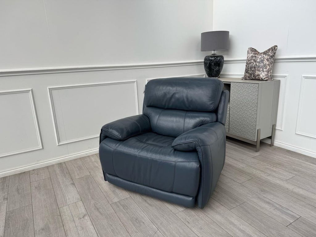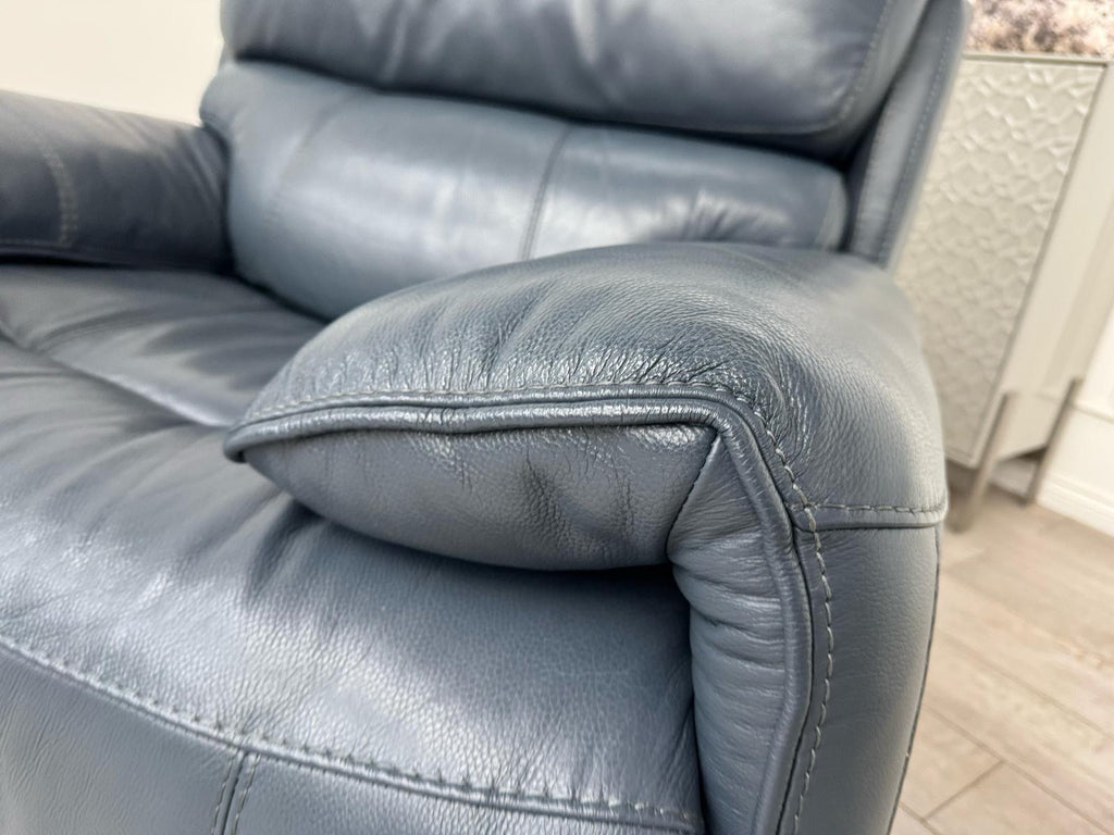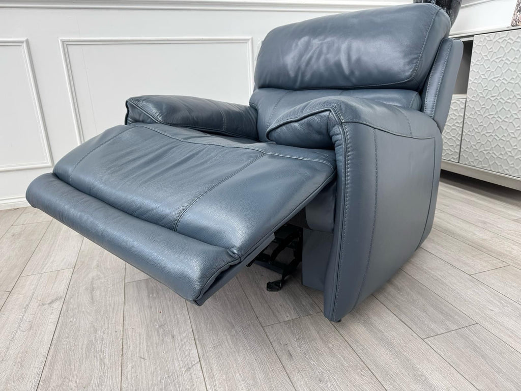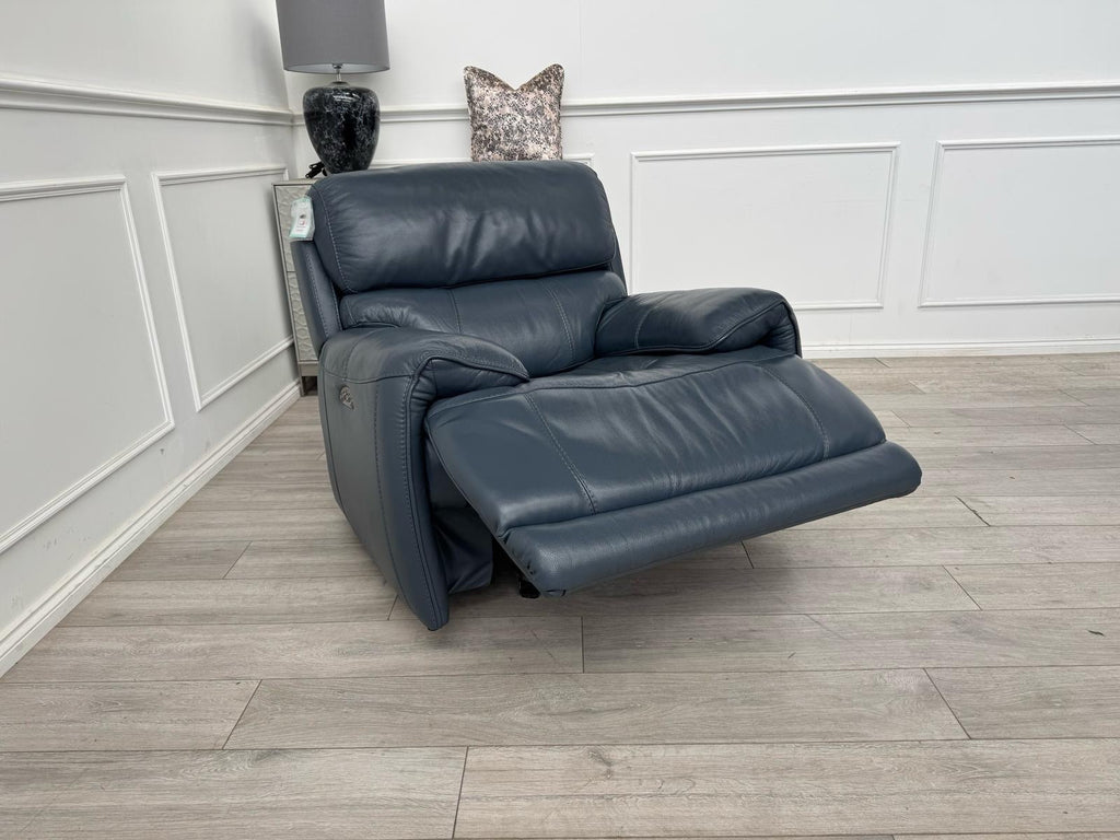 Furniture Village Link Blue Leather Power Recliner Armchair + Headrest + Rocking