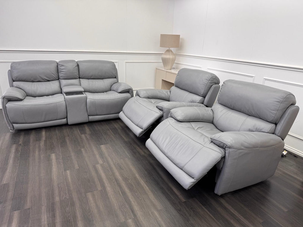 Furniture Village Link Power Recliner 2 Seater + 2x Armchairs Set Grey Leather