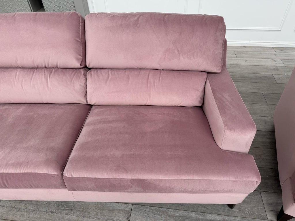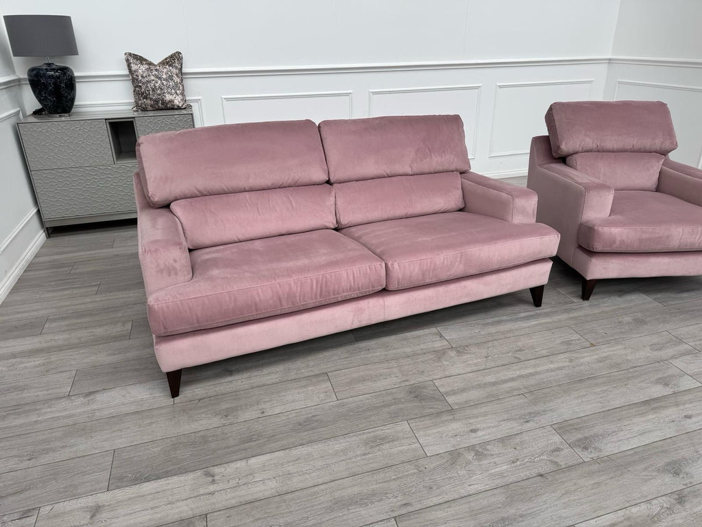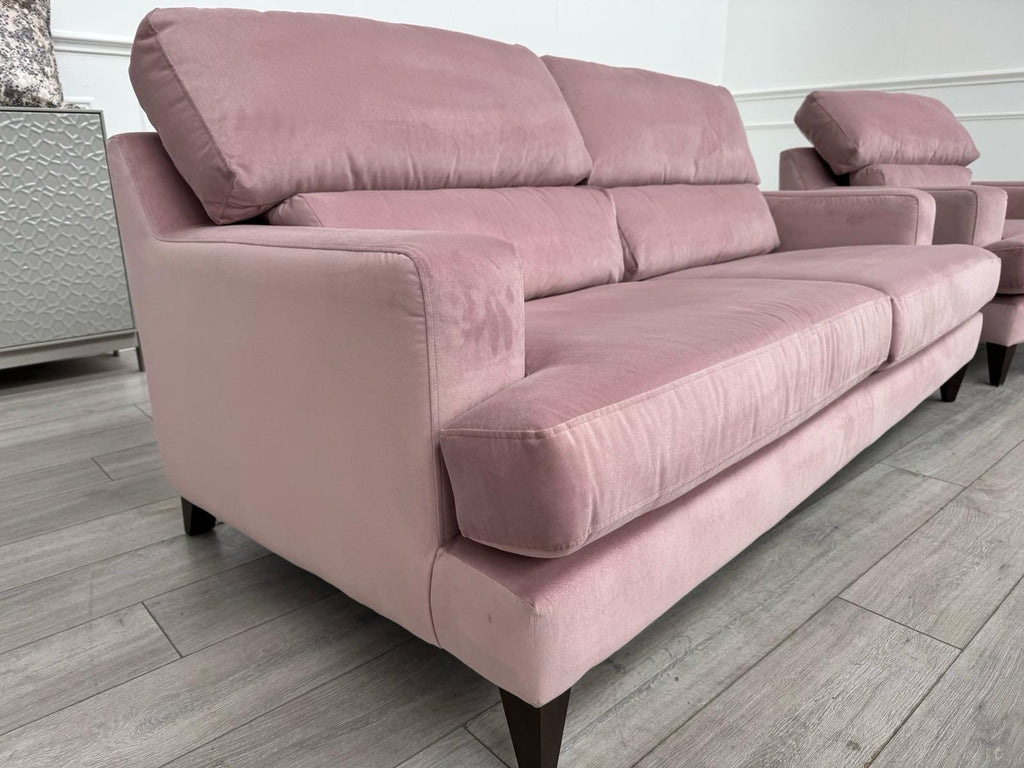 Furniture Village Lounge Co Romilly 3 Seater + Armchair Sofa Set Pink Velvet