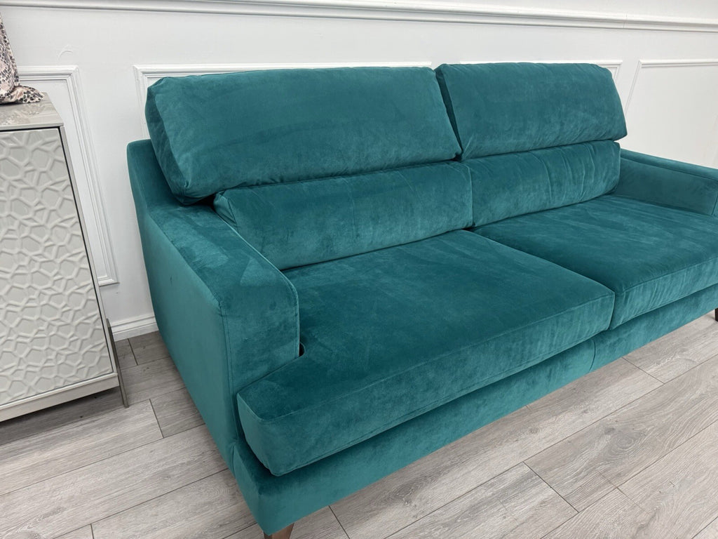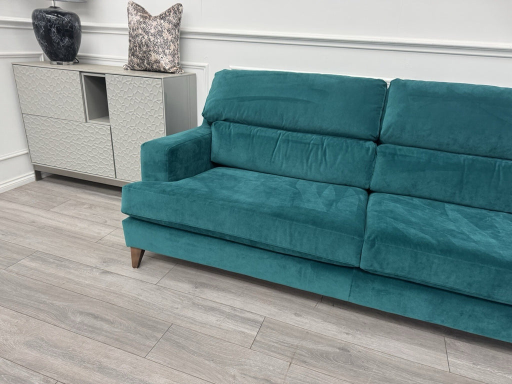 Furniture Village Lounge Co Romilly Teal Velvet Fabric 4 Seater Sofa RRP £2195